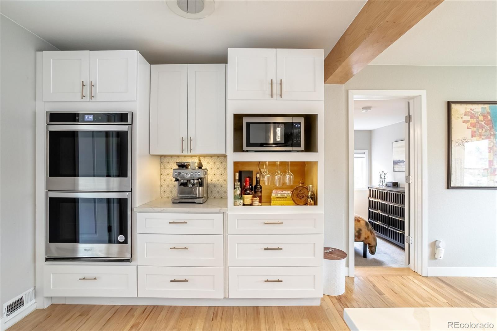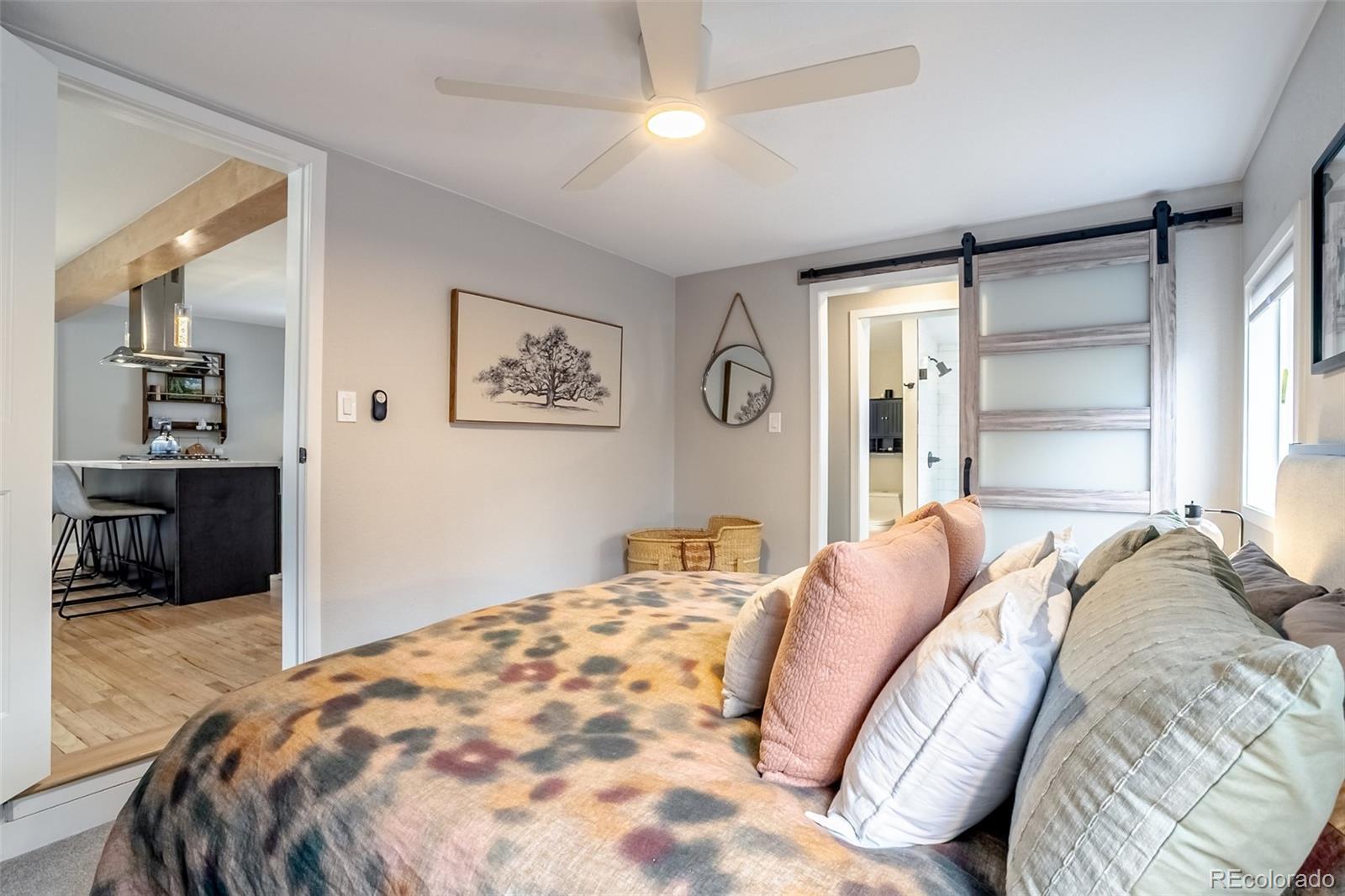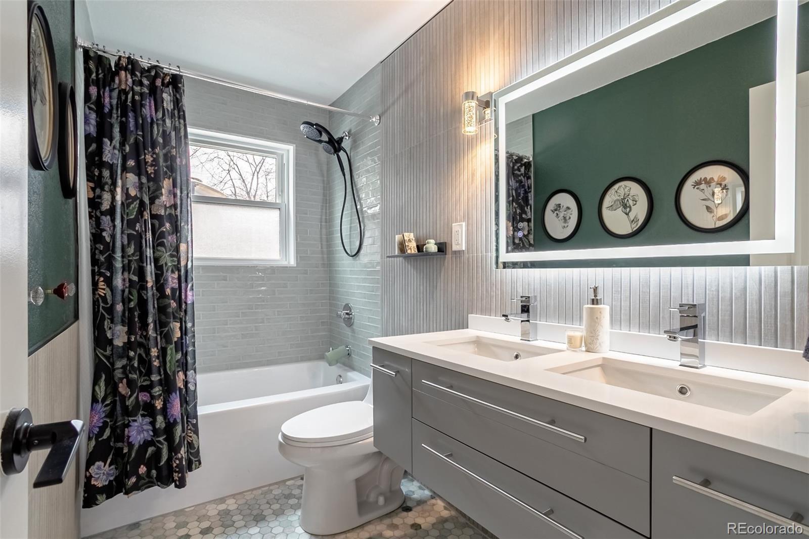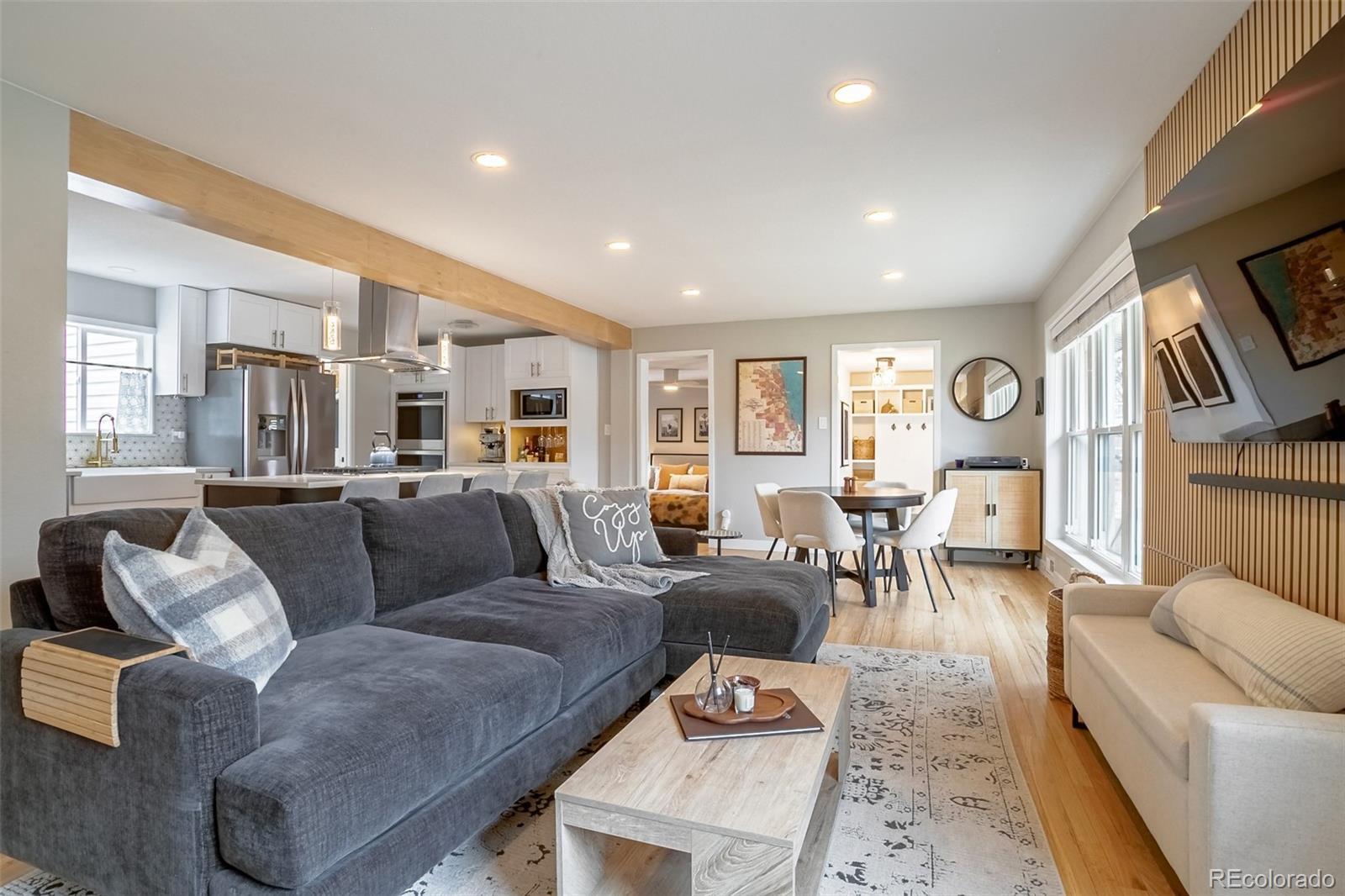 Absolutely adorable and completely reimagined, this charming ranch-style 3-bedroom, 2-bath home in Virginia Village was fully redone and remodeled in 2023 and blends thoughtful design with modern comfort. The inviting great room showcases custom wall panel detailing and an open-concept layout that flows seamlessly into a show-stopping kitchen featuring quartz countertops, stainless steel appliances, a vented hood, and a large island ideal for everyday living and entertaining. The entire house has beautiful hardwood floors, new doors, hardware and custom millwork. The kitchen leads to a spacious laundry room, pantry and additional storage with easy backyard access. A welcoming entry with excellent storage doubles as a functional mudroom and welcoming space to take off your shoes and coat. The main level offers two secondary bedrooms—one with a built-in hanging wall desk and the other generously sized with a closet and wood trim paneling—sharing a sleek hall bath with a wall hung sink and tub/shower combo, while the primary suite includes a private bath with large shower, double vanities and dual closets. Recent, major upgrades include a roof, gutters, AC, tankless hot water heater, attic insulation, fencing, newer furnace, and all appliances approximately three years old, with Quantum Fiber available. Step outside to a recently and beautifully updated backyard complete with a large patio, built-in kitchen counter, cozy fire pit, new storage shed, and a spacious fully sprinklered yard enclosed by new private fencing—perfect for relaxing or entertaining. Ideally located just a few houses from Potenza Park and blocks from Ash Grove and Cook Parks, this home offers easy access to a neighborhood library, local restaurants, miles of trails, and light rail at I-25. This jewel box of a home delivers quiet city living at its very best.