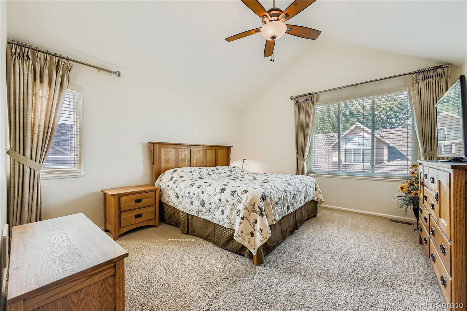 BRING ALL OFFERS! MOTIVATED SELLER! Rare chance to own a southeast facing duplex that backs to a peaceful courtyard in the Willow Ridge community. All windows and patio door have been upgraded to Andersen Windows offering quiet comfort and lower energy bills while bringing in lots of natural light. This floor plan provides 2 large primary suites: one upstairs and one on the main level. The spacious office upstairs is the perfect flex space for your changing needs. The large kitchen offers plenty of counter space and tons of storage with two pantries!. All appliances stay including the washer / dryer and the whole house water softener system. High end window treatments also stay with the home. Enjoy the changing colors of all the seasons Colorado has to offer from your large patio next to the beautiful green courtyard. The attached 2 car garage is insulated with lots of storage shelves. Easy access to major highways and to everyday amenities including great restaurants nearby. Easy commute to downtown, DIA, DTC or escape to the Rocky Mountains and enjoy all their natural wonder. Community amenities include a pool, tennis courts, a beautiful club house and access to parks and walking trails. Flooring and bathroom updates done in 2005.