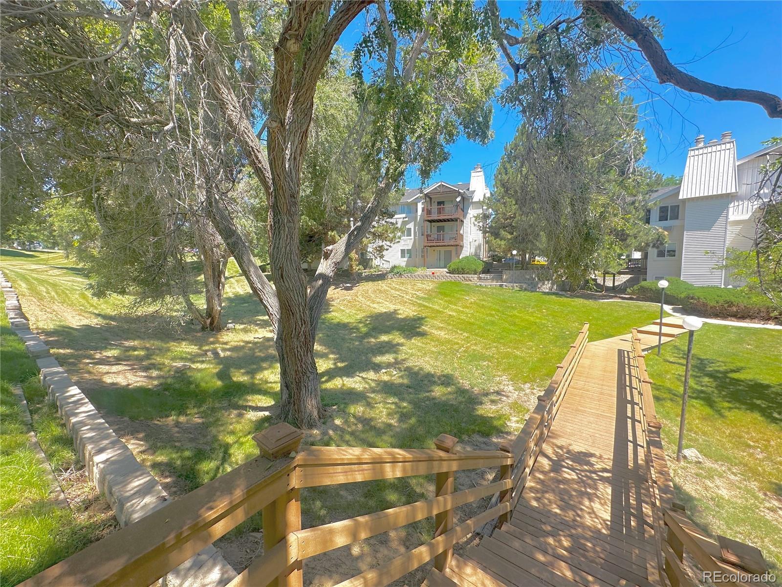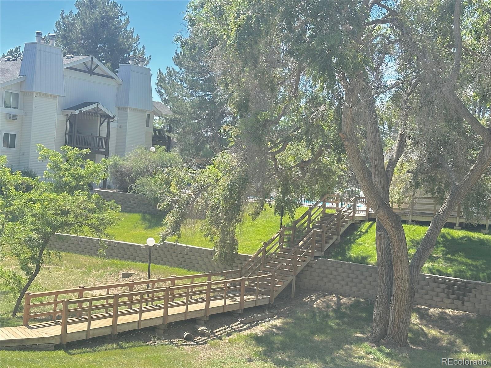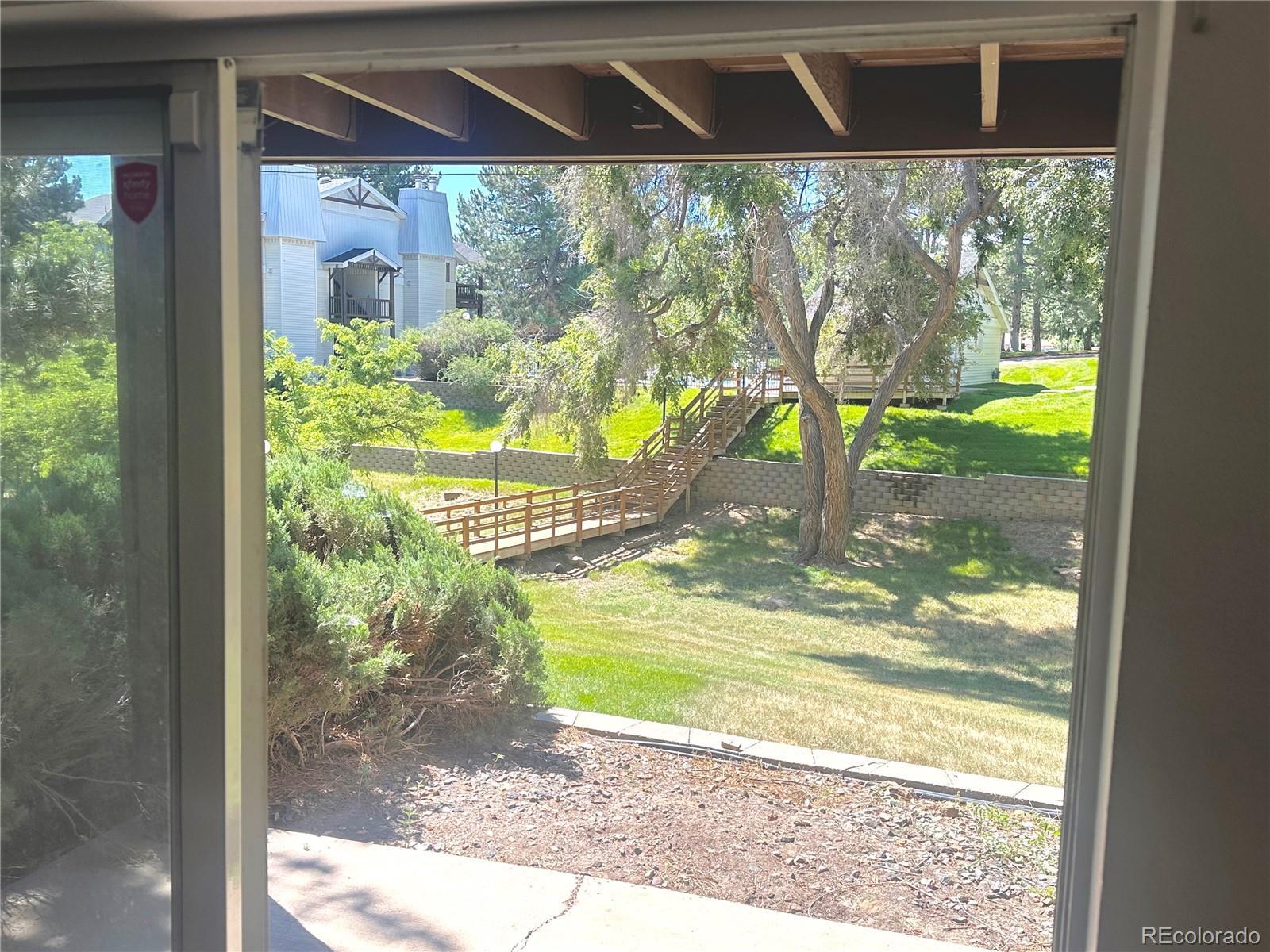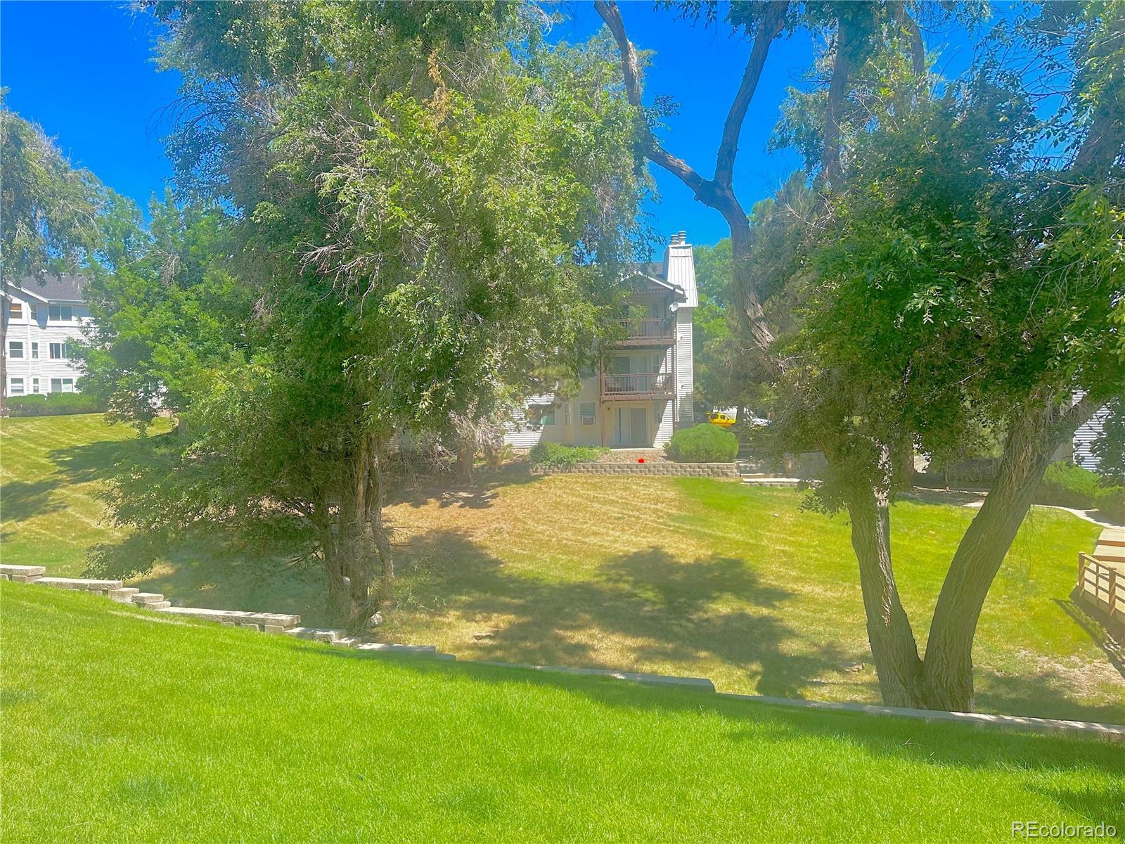 Waw beautiful Views.... 1b/1b with a nice open Private Covered Patio/backyard, you can access bathroom from Corridor as a guests or from the master bath, Look at the pictures and imagine how could you live in this beautiful view as your daily paradise.... the back patio door could be the main entrance if you use two sides in/out lock... I think it could be easily wheelchair Accessible from the patio door through the garden and avoiding the concrete walkway and stairs..... the back patio and the nice views you could set it in a way were you can barbecue and invite the whole family or friends.... in-unit laundry (included) is a big Plus and reserved parking, the outdoor pool is just 1 minute walk from patio door.... Cherry Creek schools.