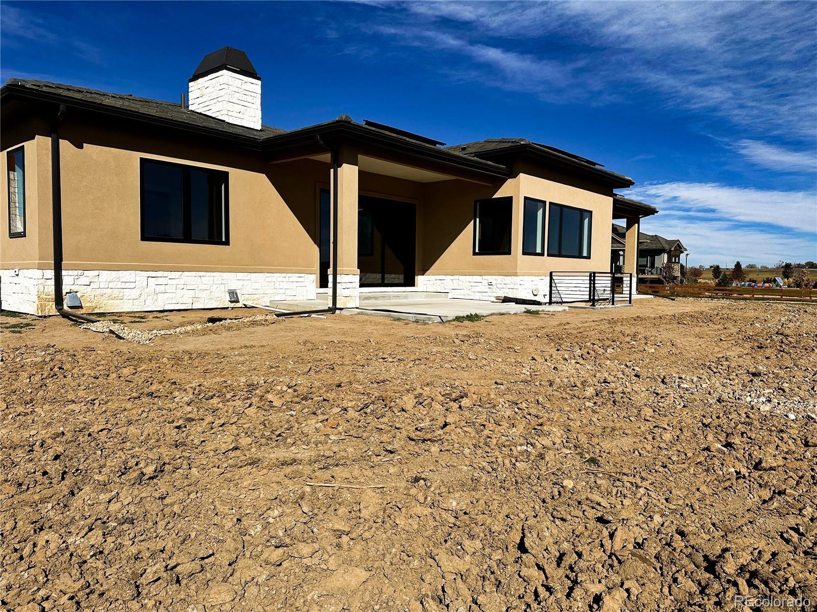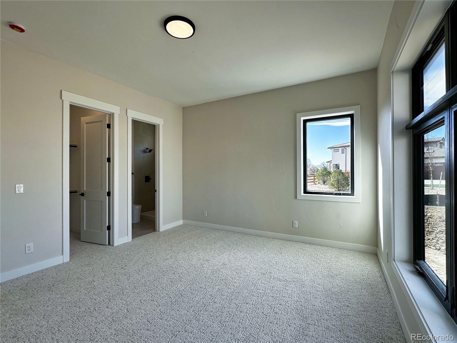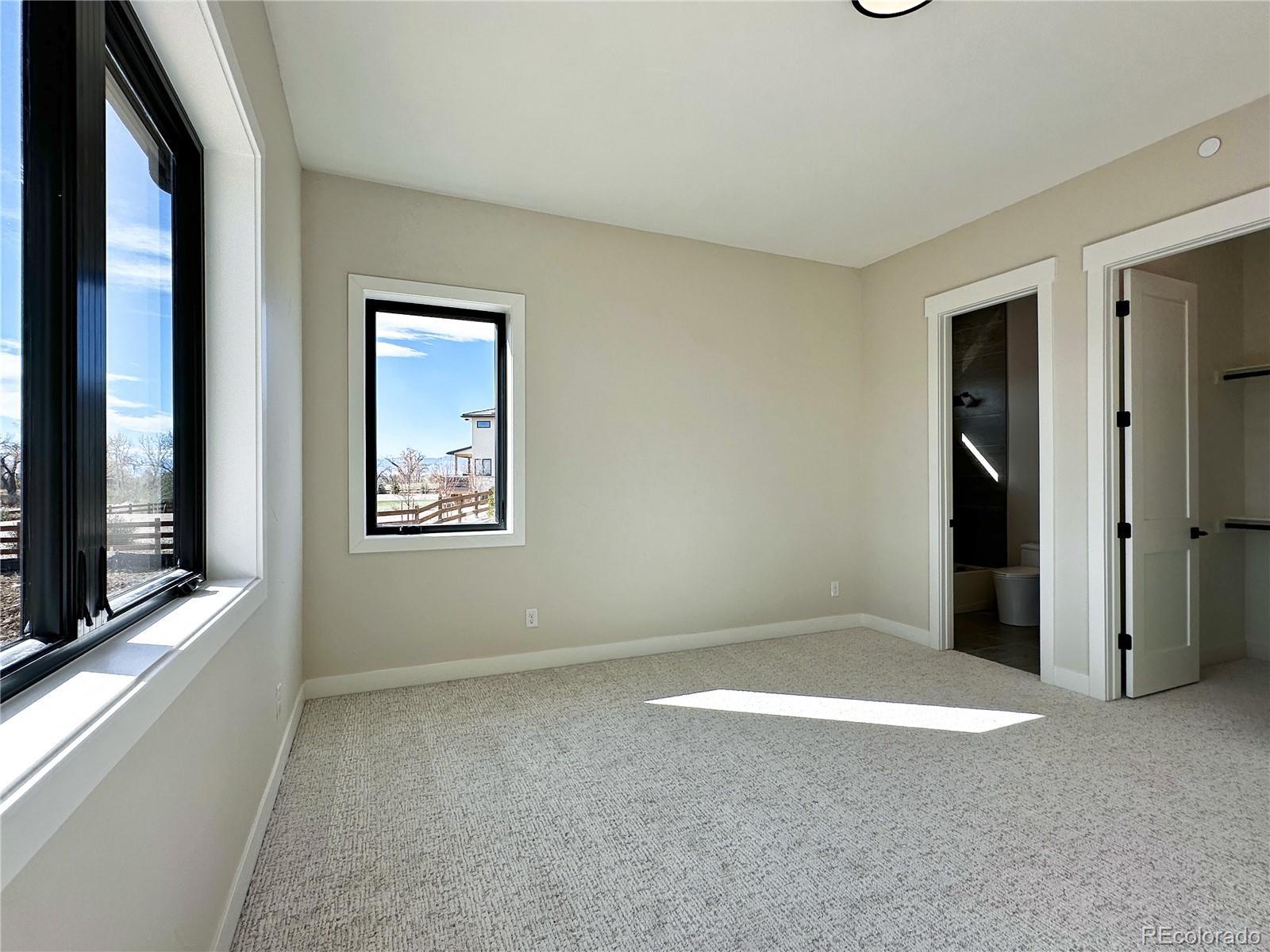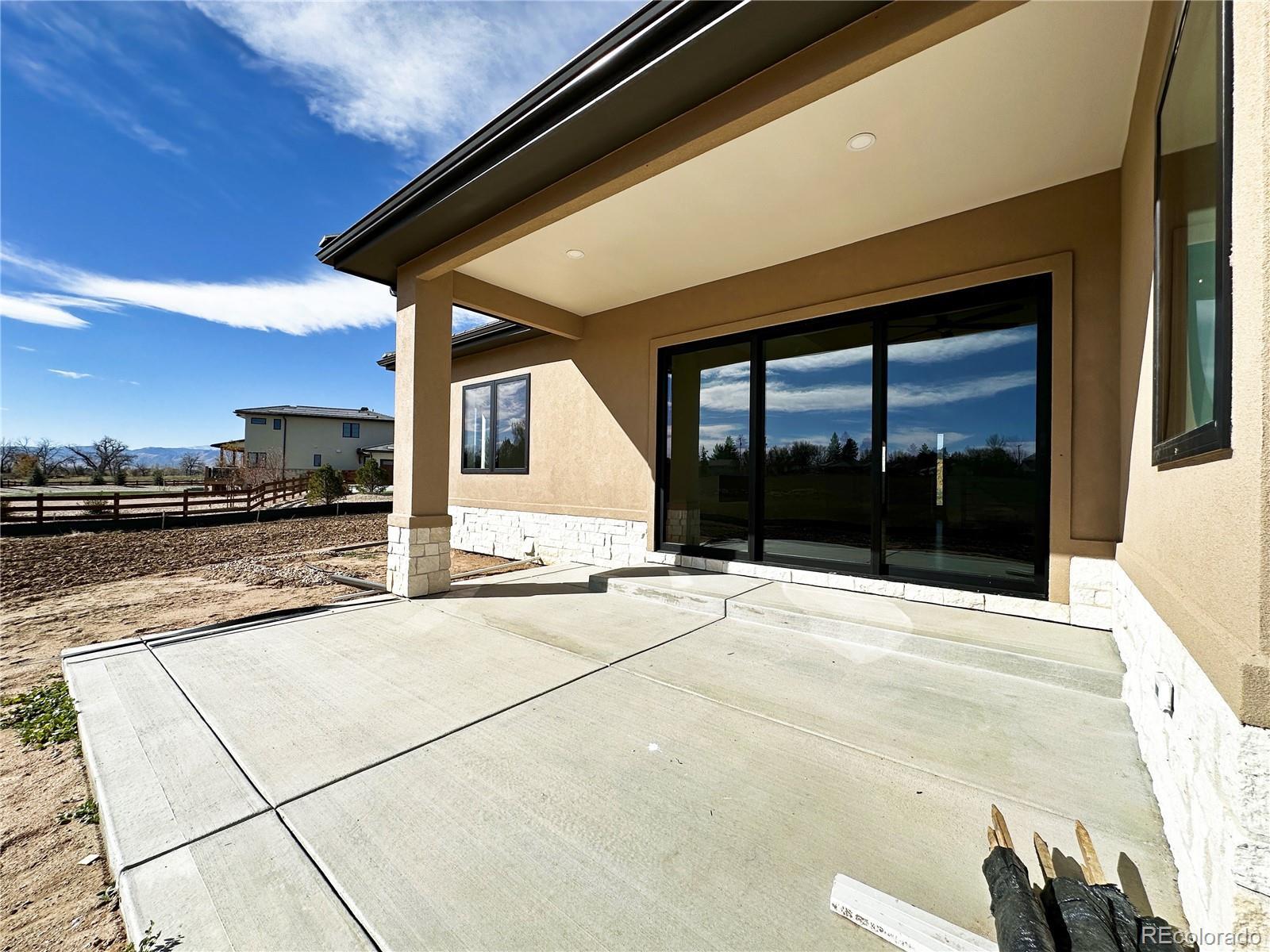 Stunning custom ranch on 1.02 acres in sought-after Wood Meadows, showcasing sweeping mountain views and true single-level living. This Engineered Energy Star rated home offers 3 bedrooms, 4 baths, and an oversized 4-car garage with tandem bays, two EV outlets, and hot/cold water access. Designed for efficiency and durability, the home includes a fully owned 11kW solar system, high-efficiency HVAC, hot water recirculation, interior fire sprinklers, Andersen A-100 windows, hail-resistant concrete tile roof, and Class A fire-rated exterior materials. The building meets Boulder Counties strict new "BuildSmart" energy and fire code/ratings. The main level features 10’–11’ ceilings, solid ¾” white oak flooring, custom hand-textured drywall, and a 12’ x 8’ sliding glass door capturing the view. The gourmet kitchen offers solid natural walnut cabinetry, quartz countertops, a large island, walk-in pantry, and Kucht professional appliances with warranty. The great room has a gas fireplace, and the main-floor study provides an ideal workspace. The primary suite includes a heated tile floor, 5-piece bath with custom waterfall/body jet shower, and a spacious walk-in closet. 8’ solid shaker interior doors, a 42” 4-point locking entry door, and granite counters/stair treads further elevate quality throughout. The full unfinished basement features 9’ ceilings, three egress windows, rough-in plumbing, and storage, offering excellent expansion potential. Exterior finishes include stucco and natural stone, enhancing both longevity and style. Located in unincorporated Boulder County, the property benefits from lower taxes and a peaceful, private setting—move-in ready and built to last.