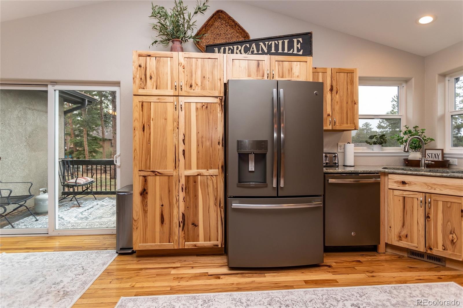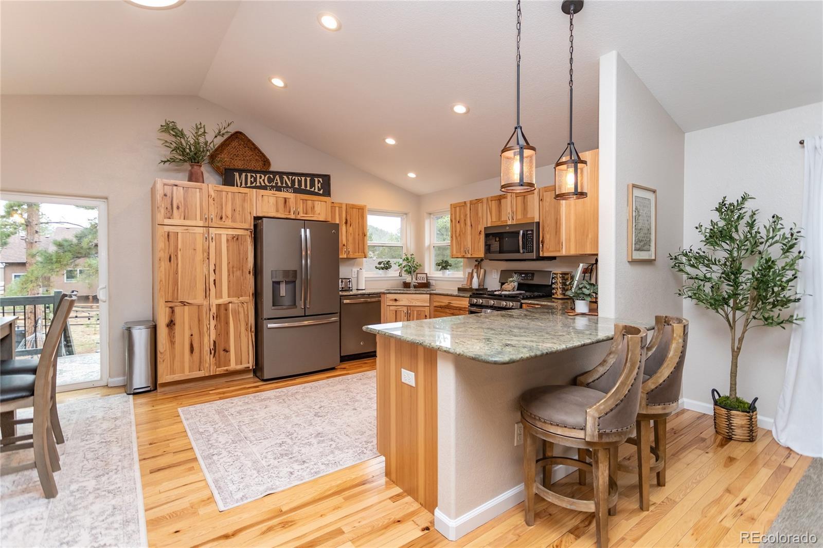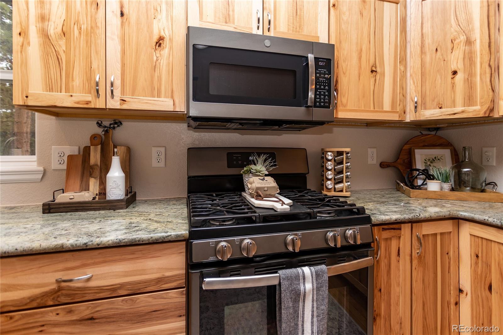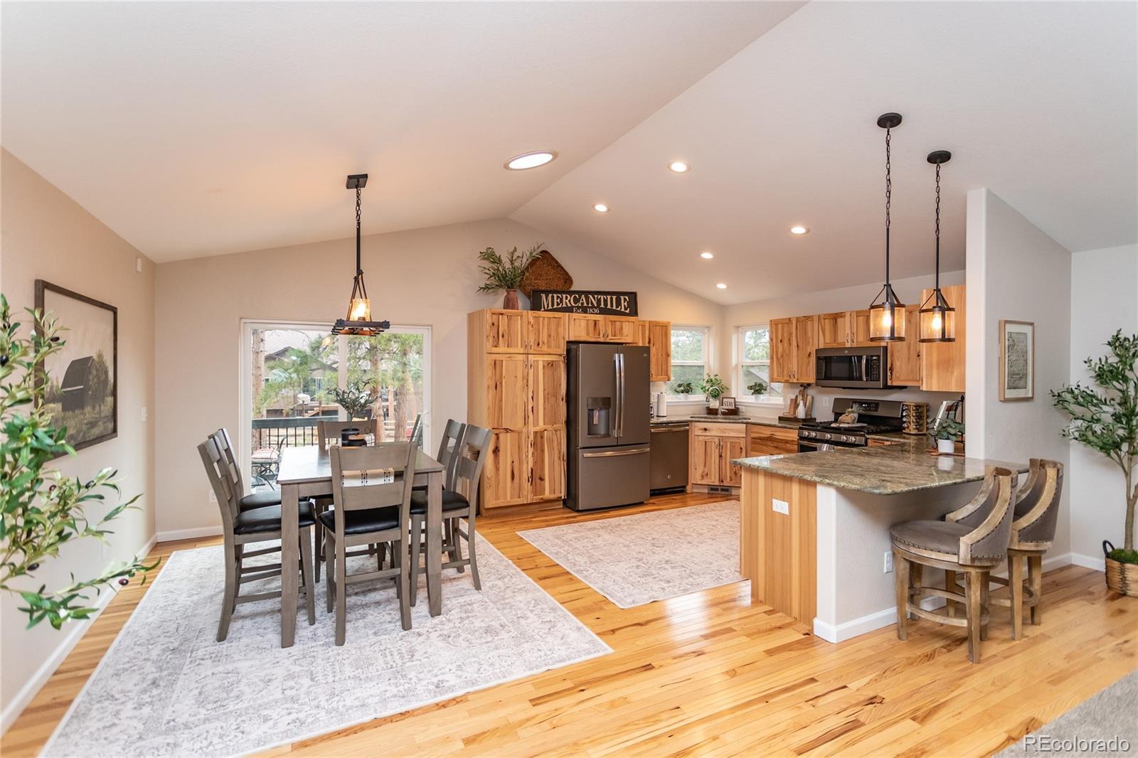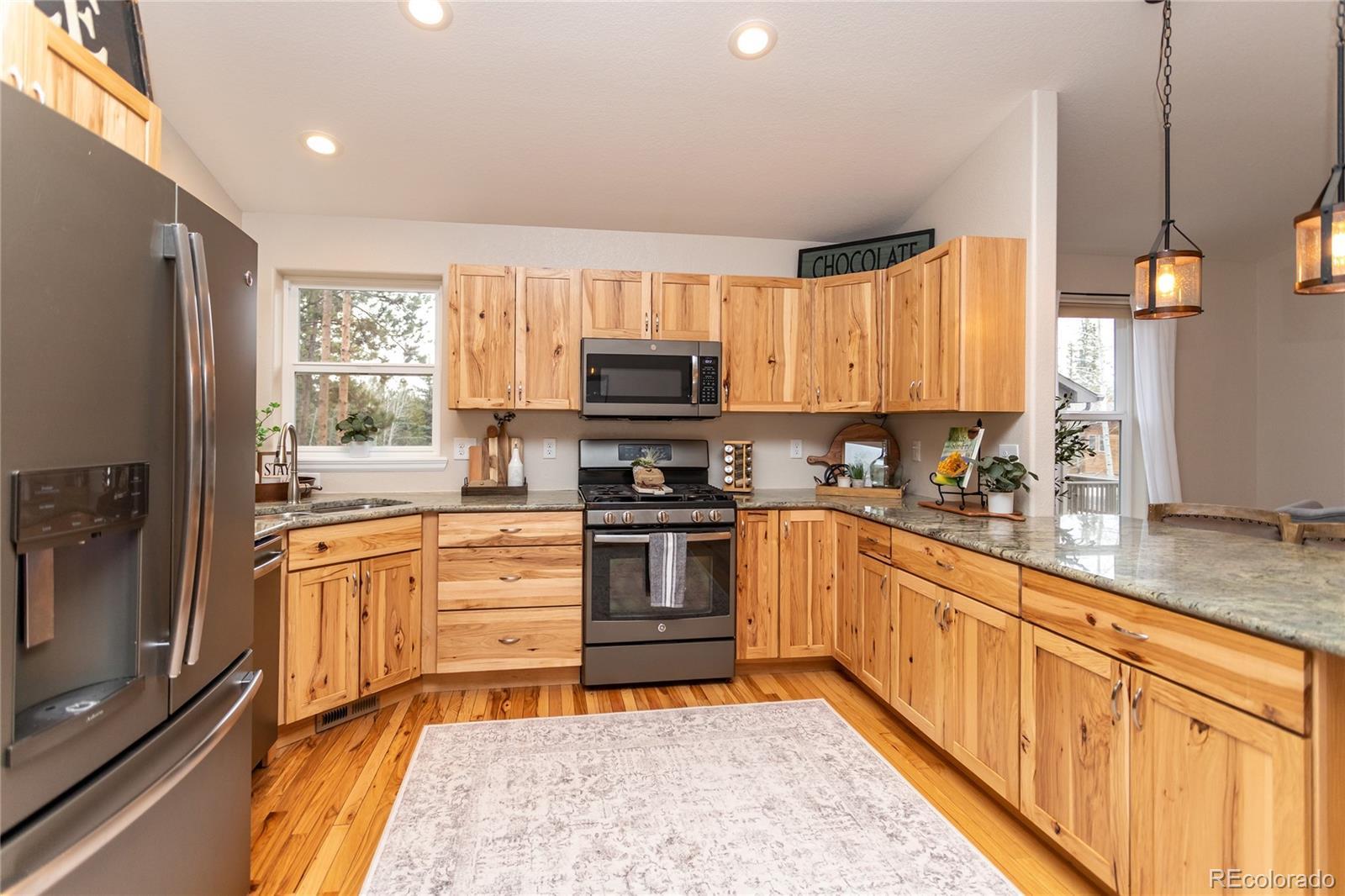 New Carpet throughout! Remodeled master shower. Beautiful Kitchen with knotty pine cabinets, modern appliances, ample cabinet space, and a great layout. Adjacent to the kitchen, the dining area provides a wonderful space for family meals or intimate gatherings. Step into a warm and inviting living space adorned with natural light pouring in through large windows, accentuating the beauty of the surrounding mountain landscape. The cozy living room welcomes you with its inviting atmosphere, perfect for relaxation or entertaining guests. The primary bedroom offers a tranquil retreat with its comfortable space and attached bathroom. Two additional bedrooms provide flexibility for guests, a home office, or whatever suits your needs. All the bedrooms have walk in closets! Outside, discover the beauty of the Rocky Mountains right from your doorstep. Whether it's enjoying your morning coffee on the front porch or hosting barbecues in the backyard, you'll love the outdoor living opportunities this property provides. Decks in both front and rear, to enjoy. With its ideal location in Woodland Park, you'll have easy access to outdoor adventures, including camping hiking, biking, fishing, and skiing, while still being close to local amenities and conveniences. Close to National Forest Land. Don't miss out on this opportunity to own in the Woodland Park community. Come see for yourself!
