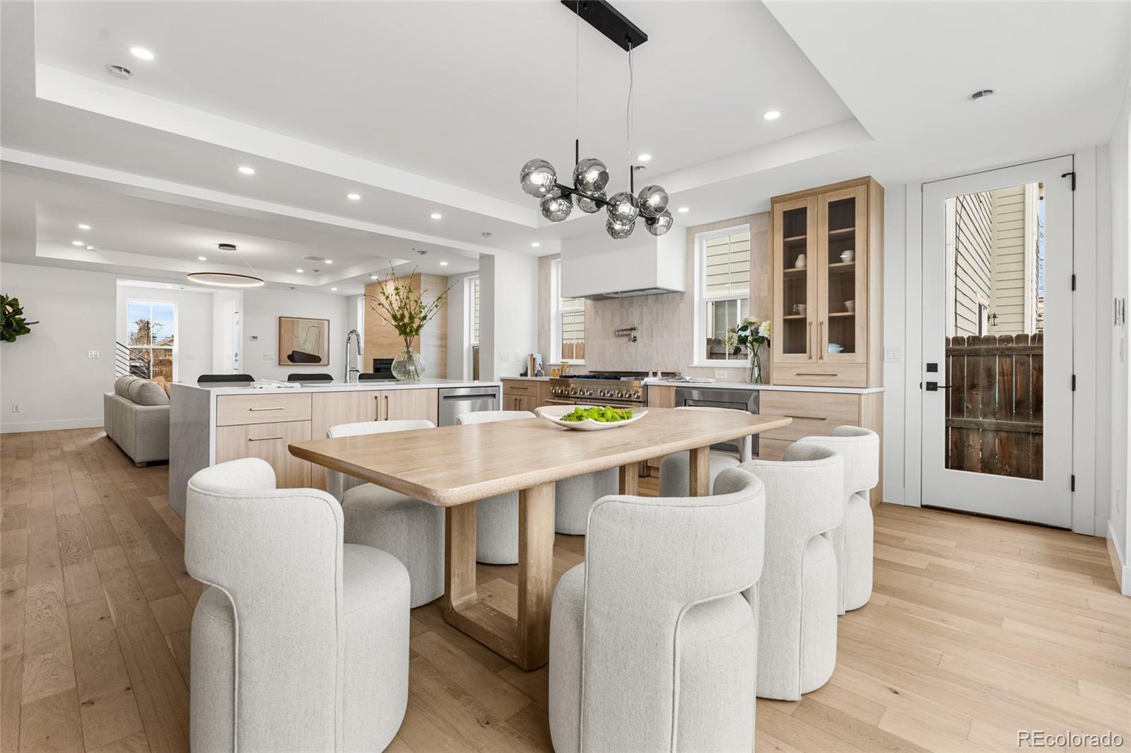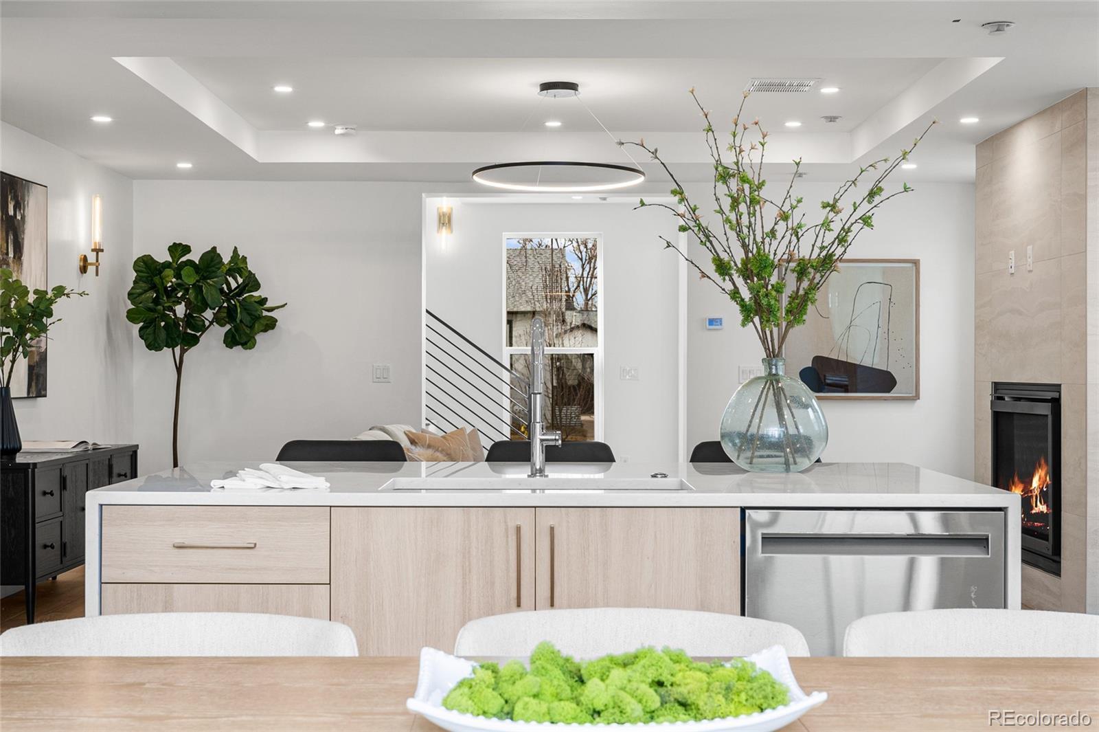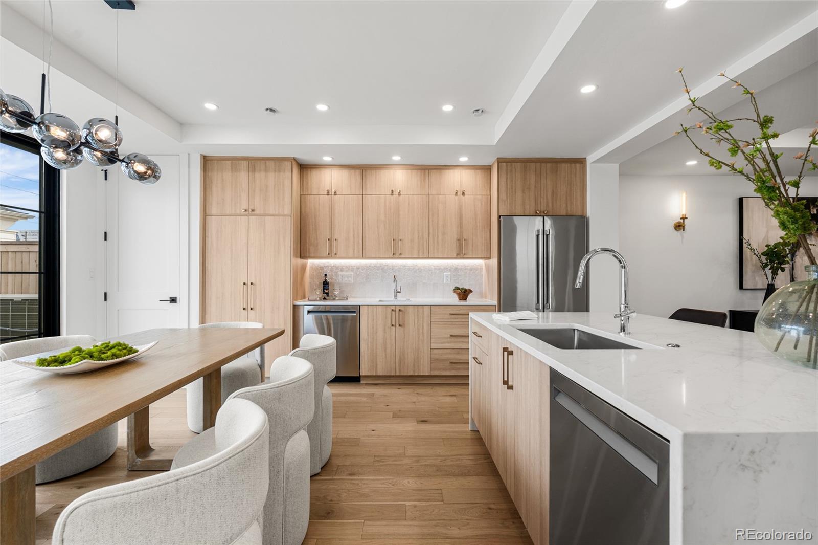 Introducing 2360 Acoma St, an exceptional brand-new 3-bedroom, 4-bath, three-story residence in the heart of SoBo. Inspired by East Coast Colonial and Greek Revival architecture, this home blends timeless design with elevated modern finishes. The open-concept main level offers wide-plank hardwood floors, coffered ceilings, a gas fireplace, and expansive 8-foot windows that flood the space with natural light. A front-positioned staircase maximizes the footprint, creating a wider, more open feel rarely found in multi-level homes. The chef’s kitchen is appointed with a full JennAir appliance suite, custom white oak cabinetry, a substantial quartz island, and floor-to-ceiling storage. An oversized sliding door extends living outdoors to a landscaped backyard with hydrangeas and a generous patio designed for seamless entertaining. Upstairs, the primary suite offers mountain views, a private balcony, dual closets, and a spa-caliber 5-piece bath with an oversized walk-in shower, complemented by an additional bedroom and full bath. The top level provides exceptional flexibility with a den, third bedroom, wet bar, and rooftop deck capturing sweeping Downtown Denver views. Complete with a 2-car garage, abundant storage, builder warranty, and no HOA. Ideally located one block from Broadway and moments to Overland Golf Course, DU, Safeway, and SoBo’s vibrant restaurants, music venues, and parks—with convenient access to the mountains and Red Rocks Amphitheatre. A distinctive residence where architecture and design take center stage!