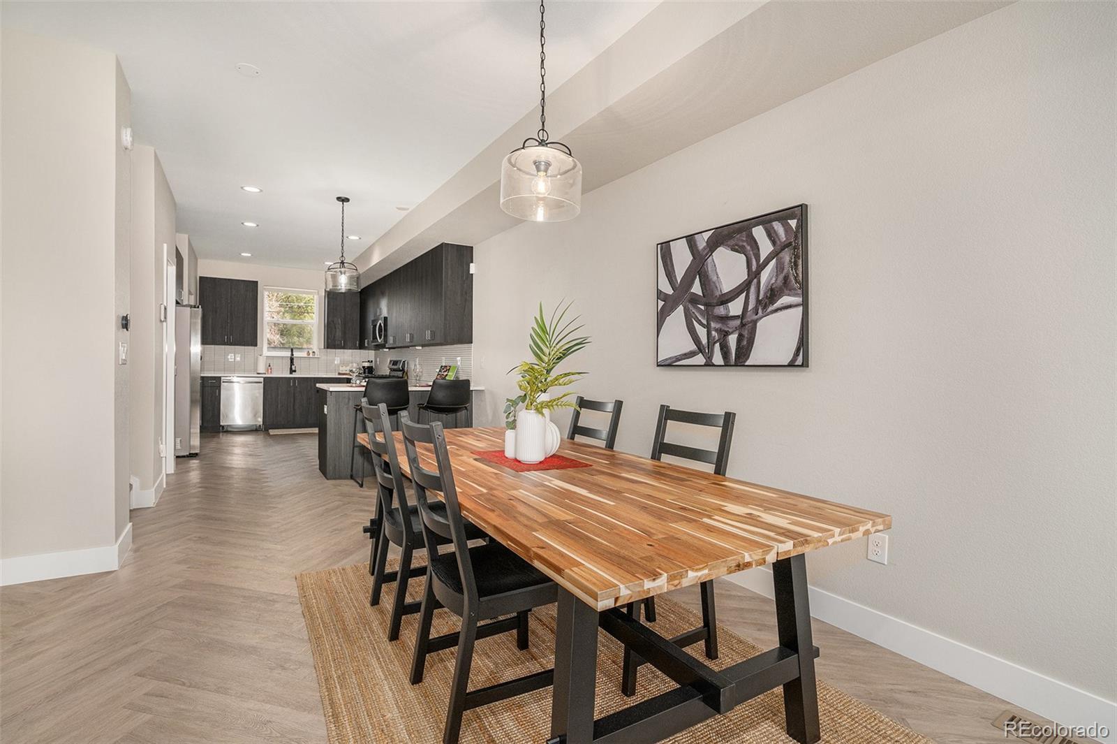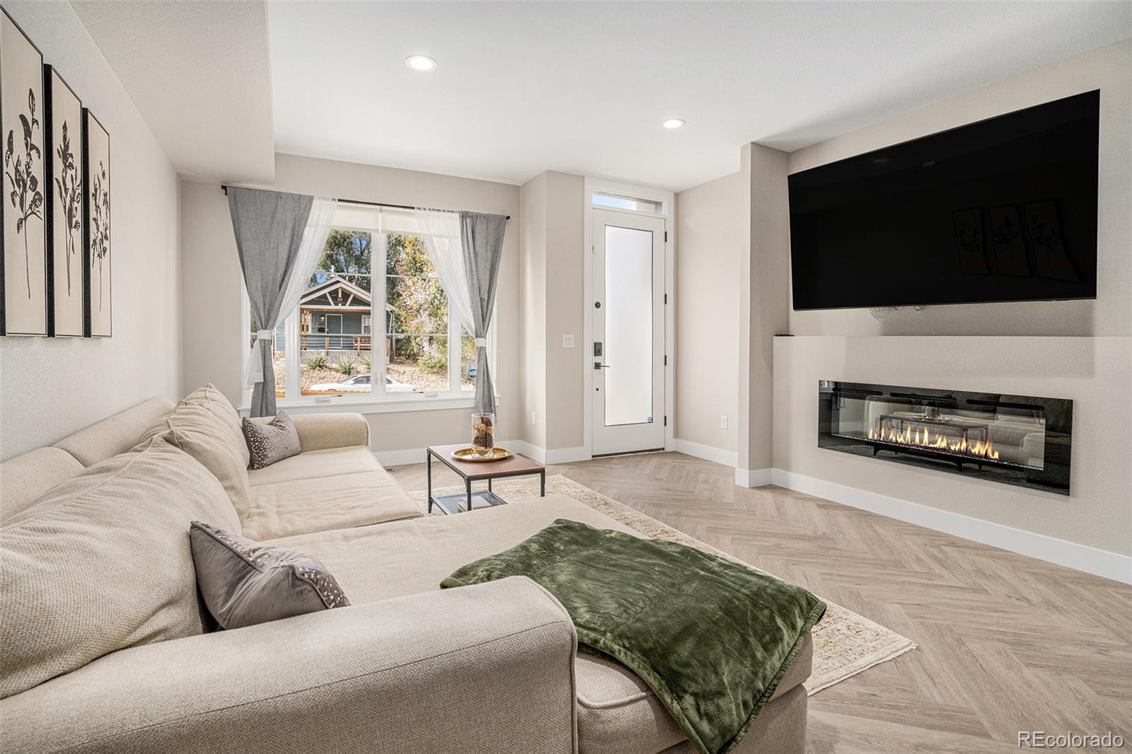 Modern, fully furnished townhome, built in 2022, in Villa Park, just two blocks from the RTD Light Rail station for the W-Line. Experience the best of Denver living in this contemporary 2-bedroom, 2.5-bath townhome offering 1,616 sq. ft. of open, light-filled space designed for comfort and convenience. The light rail ride from Knox Court to Union Station is 12 minutes. This stylish residence boasts a modern kitchen with quartz countertops, a kitchen island, stainless steel appliances that seamlessly flow into the open living and dining areas. Upstairs, the primary suite offers a peaceful retreat with a walk-in closet and en suite bathroom, while the guest suite provides flexibility for guests or a home office. Additional features include a main-level half-bath, upper-level laundry, central A/C, and a gas fireplace. The home is fully furnished and equipped with housewares, making it ideal for corporate rental or anyone seeking a turnkey experience. An oversized one-car garage offers additional storage for your toys and gear. Located just minutes from downtown Denver and Sloan’s Lake, this property offers urban accessibility with a charming neighborhood feel. Lease terms are month-to-month or a 6-month term, rent is $3,950 per month, gas/electric and water expenses will be billed back to the tenant at 2/3 the total bill due to the lock-off apartment below the subject property. Private and fenced outdoor patio space. This home is available immediately.