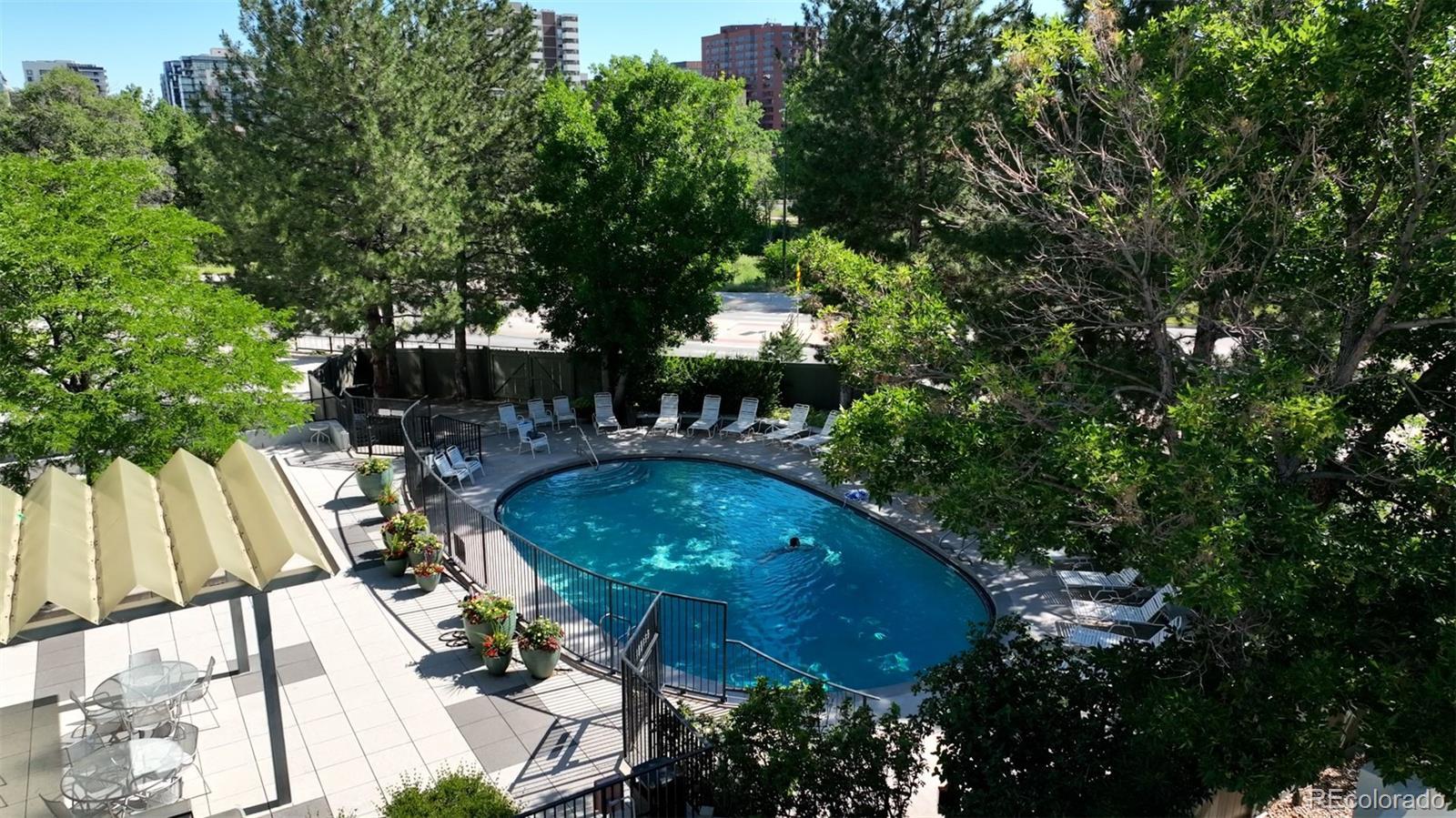 Rare opportunity to own a creek-side condo in Cherry Creek for under $300,000. !Discover #307 at Cherry Creek Tower. Located along the south bank of Cherry Creek, this is the perfect location for your active lifestyle. Adjacent to jogging and bike paths, you are within minutes of all your favorite Cherry Creek shopping, dining, and galleries. Venues. Unit 307 offers one of the few one-bedroom units with an outdoor, covered lanai. The residence has a welcoming ambiance with distinctive finishes, complementing the abundant natural light filling the home. Featuring a galley kitchen with new countertops and redefined cabinetry, the unit is perfect for entertaining friends and family. The updated bath includes a European glass shower with designer upgrades. The spacious bedroom with its floor-to-ceiling windows creates an inviting retreat from your day. Your HOA fees include your heating, cooling, and on-site maintenance. The building is secured with a state-of-the-art security system, allowing you to access it using your smartphone. The residence includes one deeded off-street parking space and access to the impressive outdoor gardens with its pergola, grilles, and pool. Additionally, there is a full laundry suite and a well-appointed exercise room. Your unit includes a separate storage area located in the basement level. Cherry Creek Tower recently installed EV stations. With bike paths, trails, and shopping outside your front door, this location is perfect for all you love about Cherry Creek and your Colorado lifestyle.