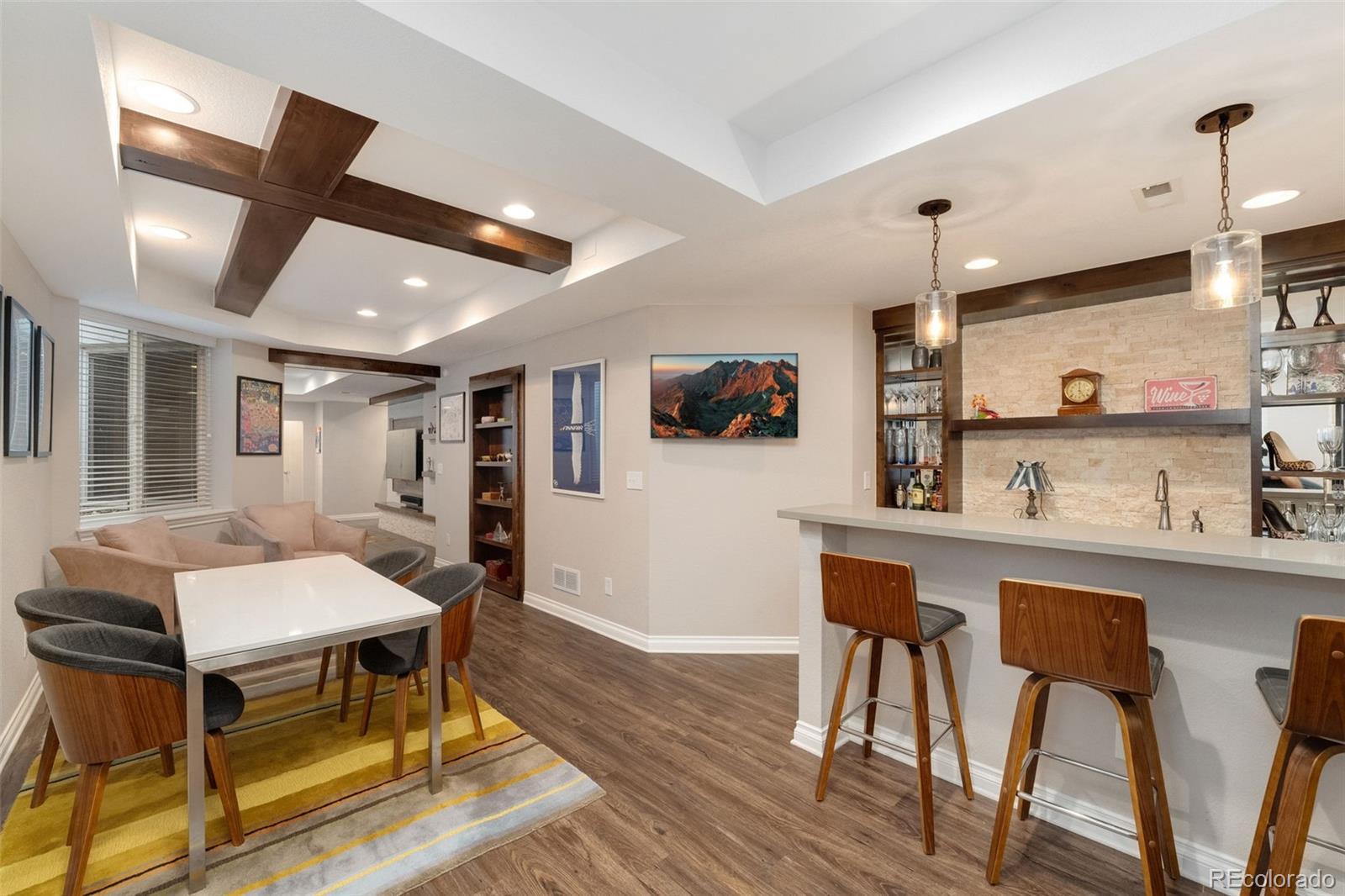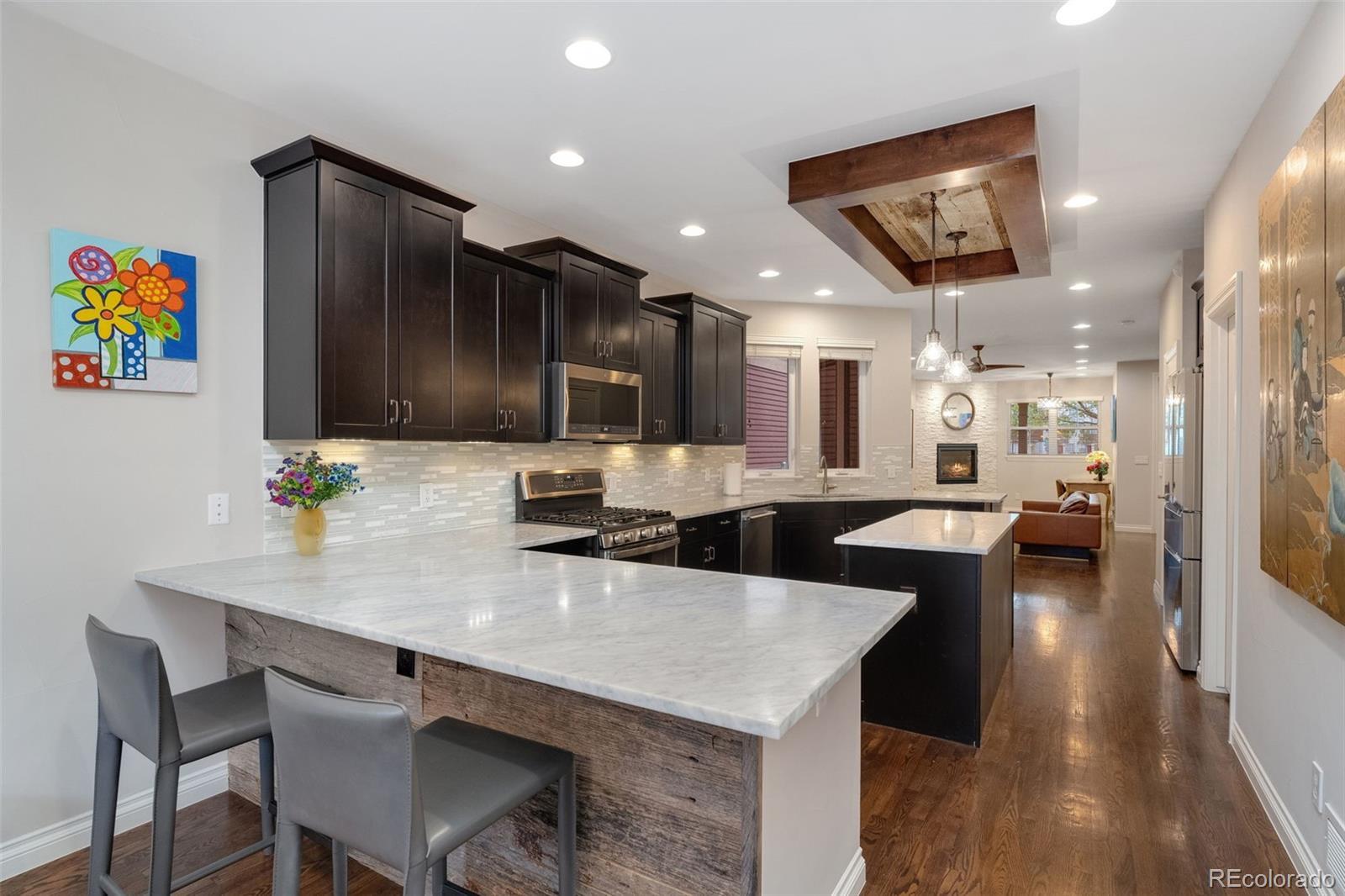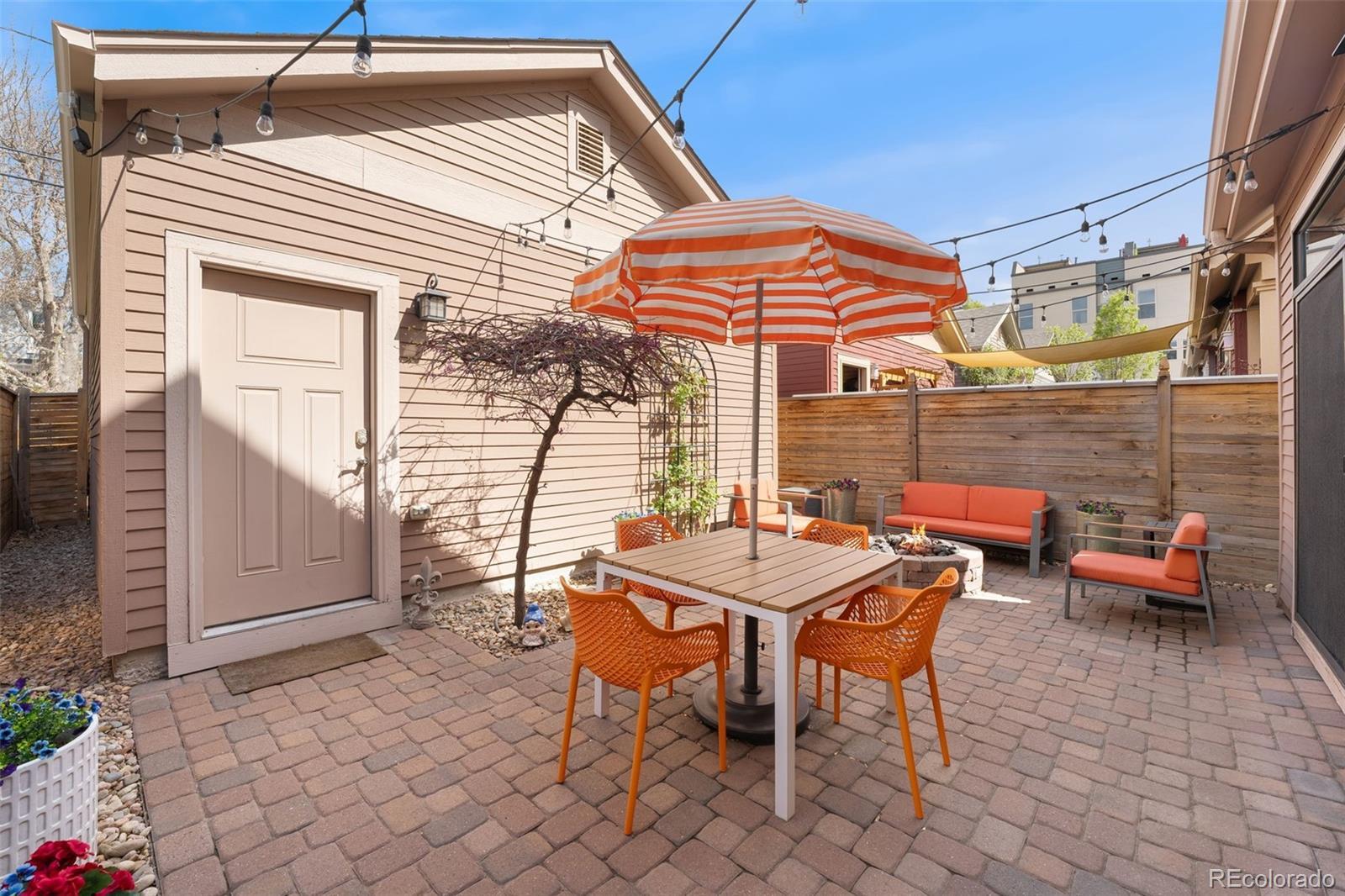 You've got to see this Wine Cellar. Preferred Lender Credit of up to $9,000. Sellers are offering an additional $10,000 for closing costs/rate buydown with a full-price offer. // Luxurious and tasteful residence in Denver's beloved San Rafael neighborhood. Upon stepping inside, you will immediately notice the care the Sellers have taken to maintain this beautiful home, along with the thoughtful architectural configurations. A brand-new interior paint job, recently re-finished red oak hardwood floors (including newly added matched flooring down basement stairs), and newer kitchen appliances compliment the already contemporary home. Plus, the natural light is robust enough that no lights are necessary on sunny days. Upstairs, find three spacious bedrooms, including the significant primary suite complete with plenty of windows, a large bathroom, and walk-in closet. The basement is an entertainer's delight, with a second living space/media center, plus full wet bar area complete with two wine coolers and additional room for seating. The wine cellar is vast and climate-controlled, and don't miss its hand-crafted designer finishes + string lights. There are three separate outdoor spaces, highlighted by the spacious back patio. Under the Amazon Alexa-controlled rope lights, you will find fully irrigated planters, more than enough space for an outdoor table, outdoor furniture set and a gas fire pit that comes with a fitted wooden top that turns the pit into a coffee table. The two car garage is another convenience for city living. You will love this classy and well-appointed home in a premier location that has been a perfect lock-and-leave for the Sellers, tucked in the heart of Five Points between downtown Denver, City Park West, and Uptown. The Welton St Corridor is quickly becoming a booming strip, with new hotspots and old staples lining the famous street. This home has been upgraded extensively and truly stands out.