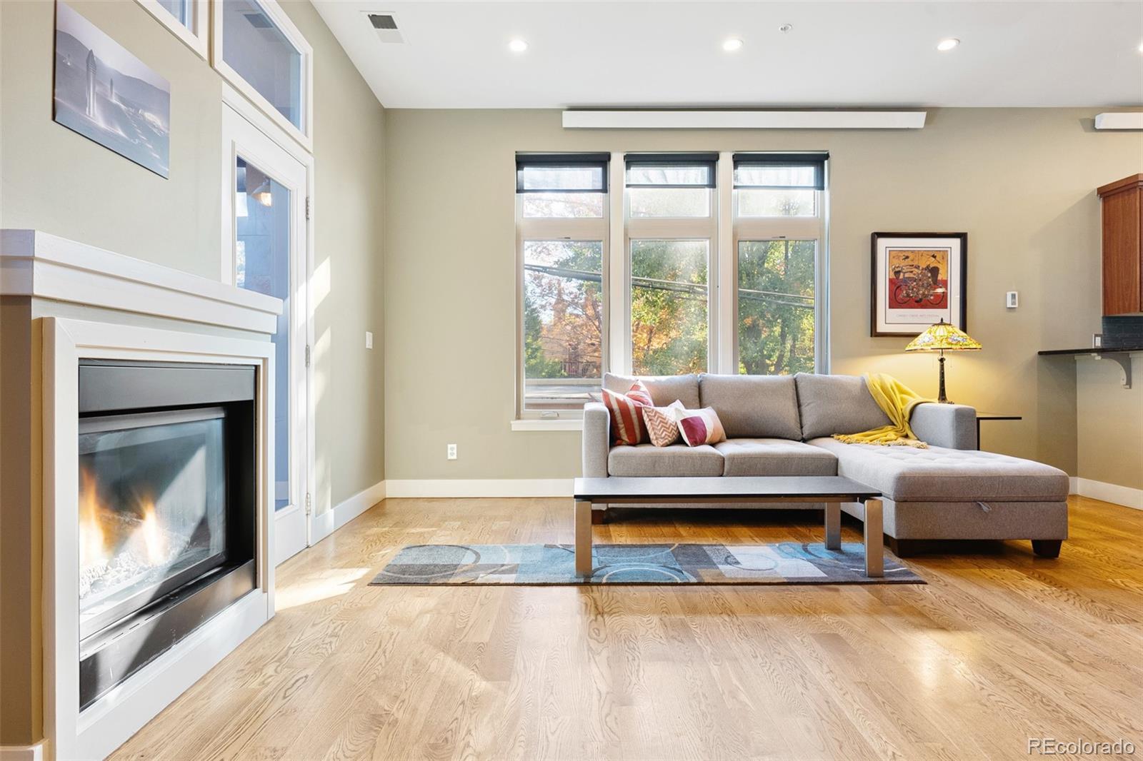 Revel in the best of vibrant LoHi living in this sunlit end-unit townhome. Perfectly positioned just moments from celebrated cafés, bars and restaurants, this residence blends effortless style with exceptional convenience. Three levels of bright, open living space include a main floor adorned with hardwood flooring, high ceilings and a gas fireplace. A gourmet kitchen features granite countertops, stainless steel appliances, a walk-in pantry and a breakfast bar. Upstairs, a serene primary suite boasts a five-piece bath and a large walk-in closet, while a secondary bedroom presents space for guests or a home office. The luminous top-floor loft offers a wet bar, fireplace and access to a private rooftop deck showcasing sweeping city and mountain views. A secluded back patio and attached, heated two-car garage add comfort and ease. With only one shared wall and a quiet location within the development, this low-maintenance retreat offers the perfect balance of urban energy and privacy.