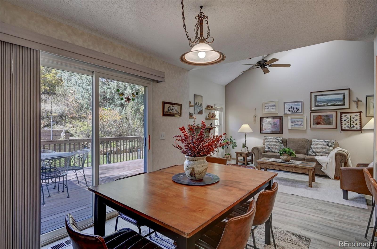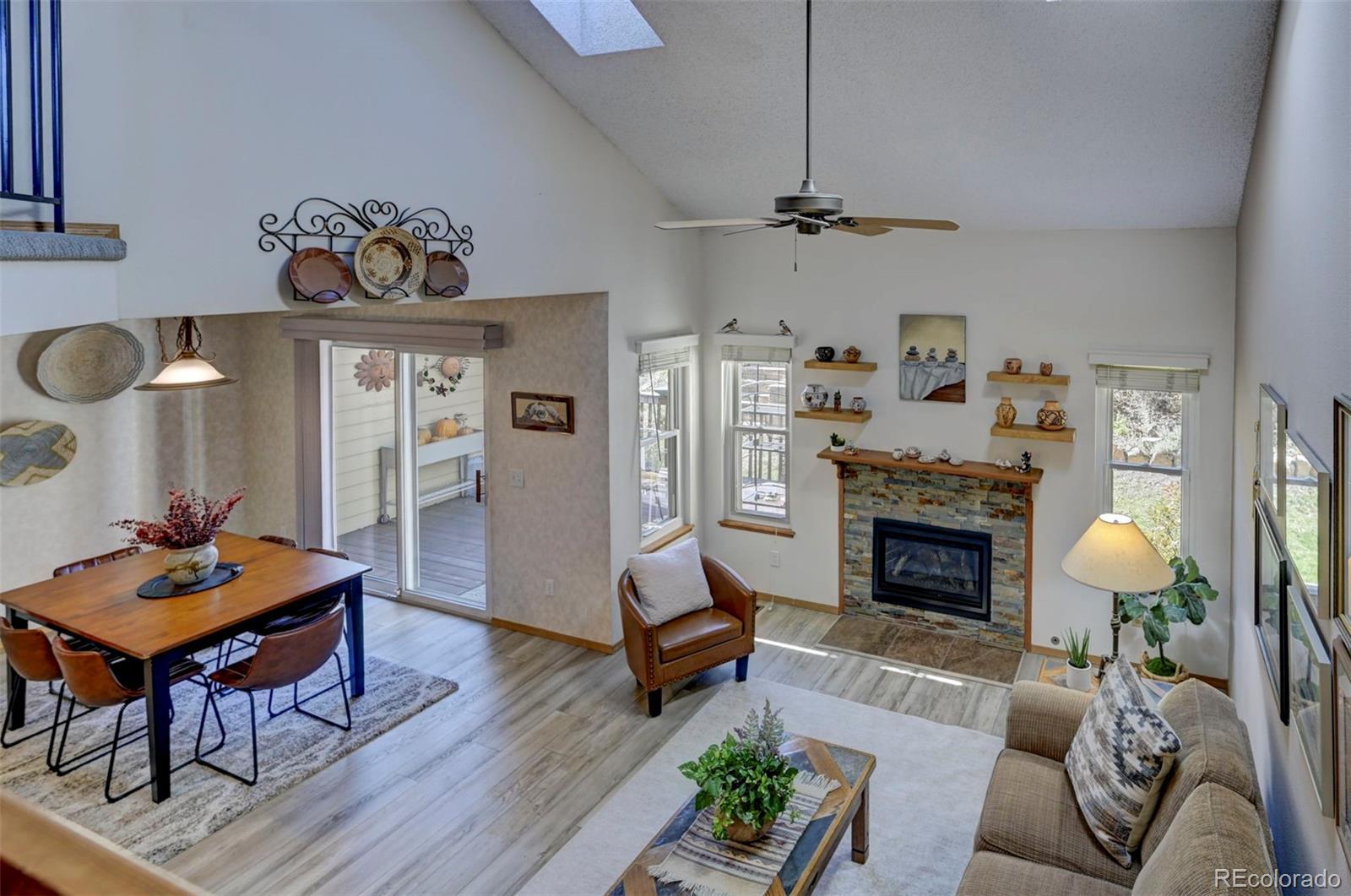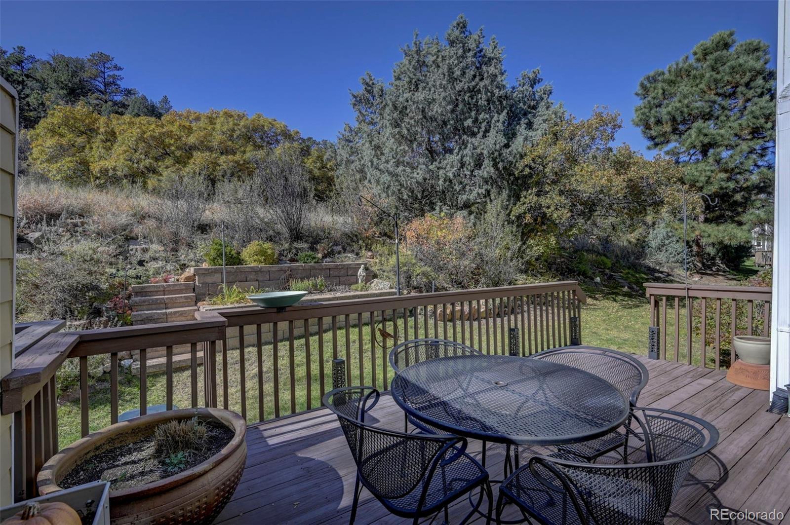 **Immaculate Original-Owner Home with Thoughtful Updates and a Flexible Layout** This beautifully maintained original-owner home has been thoughtfully updated throughout, offering comfort, style, and versatility. With 4 bedrooms, 3.5 bathrooms, and a 2-car garage+storage, this property is move-in ready and filled with special touches. Step inside to discover new luxury vinyl plank flooring and high-end carpet throughout. The open and bright main level features vaulted ceilings, skylights, & a tile-surround gas fireplace! The upgraded kitchen includes newer stainless-steel appliances, Corian countertops, lots of cabinets, and a lovely breakfast bar. The adjoining dining room connects seamlessly to the kitchen and living room—ideal for gatherings and entertaining. From the dining area, step out onto the expanded deck with a garden area and serene open-space views—perfect for relaxing or spotting local wildlife! Three of the four bedrooms have adjacent bathrooms, with one suite conveniently located on each level. The main-level bedroom features a full bathroom and walk-in closet and is currently used as a TV room and pantry. The lower-level suite offers a private retreat with a new bathroom featuring a free-standing shower, plus a flex space ideal for a TV area, home gym, or office. The laundry room and garage entry are just steps away for added convenience. From the upper level, the landing overlooks the main living area and leads to a spacious primary bedroom with a walk-in closet and newly updated bathroom, including a double vanity and free-standing shower. A fourth bedroom on this level offers flexibility and could also be used as a home office or nursery. Nestled in a quiet, scenic neighborhood surrounded by walking trails and open spaces, this home offers the best of both serenity and convenience. Centrally located, it’s just minute from UCCS,CSCS,I-25, Academy Blvd., hospitals, shopping, dining, movie theaters, and the ENT Center for the Arts.