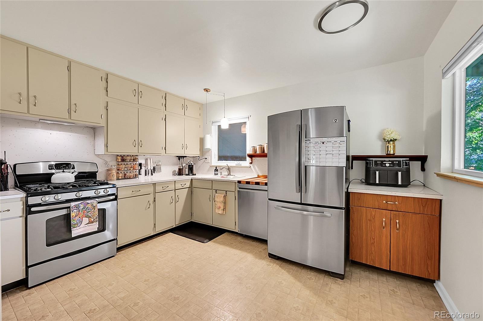 Welcome to your new oasis in the Ruby Hill neighborhood of Denver. This mid-century modern home, built in 1953 features two bedrooms, two bathrooms, a fully finished basement, including a living space, work bench, and utility room. The main floor features gorgeous hardwood floors, a vintage bar, newer windows, and wood burning stove. The kitchen features stainless steel appliances and fantastic retro features. The retro basement is complete with a gas fireplace, wood paneling, many built ins and tons of storage. Lots of space and room to grow in this home, as the fully fenced yard and expensive patio are perfect for entertaining guests during those cool fall months. Additionally, the outside area features a carport with 220v EV Charger. Lots of original features make this home perfect for those mid-century modern enthusiast. Conveniently located close to Ruby Hill Park, the Levitt Pavilion, as well as numerous restaurants and grocery stores along Federal Boulevard, this home is perfect for those wanting an urban lifestyle.