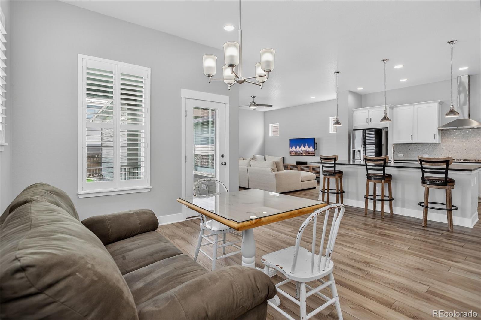 Upgraded Oasis Minutes from DIA. This 2021 home offers 3,426 square feet of living space, four beautiful bedrooms, and four bathrooms. Find ease of living and stress-free maintenance with LVP throughout the main level and plantation shutters for an elevated, timeless finish. Large picture windows and modern metal railings add natural light and a cozy yet open feel to the beautiful living space. In the kitchen, the backsplash and upgraded quartz counters truly shine, creating the ideal space for entertaining or cooking. Stainless steel appliances make food prep and cleanup a breeze. In addition to being meticulously-maintained, this newer home has also seen upgrades to the primary shower and bathroom tile. From storage to recreation, there’s plenty of space for your every need between the finished basement and the backyard, which features low-maintenance artificial turf. For frequent travelers looking for a convenient location just minutes from Denver International Airport, this home is tough to beat! Come see it today.