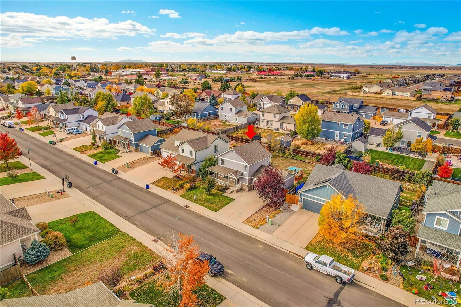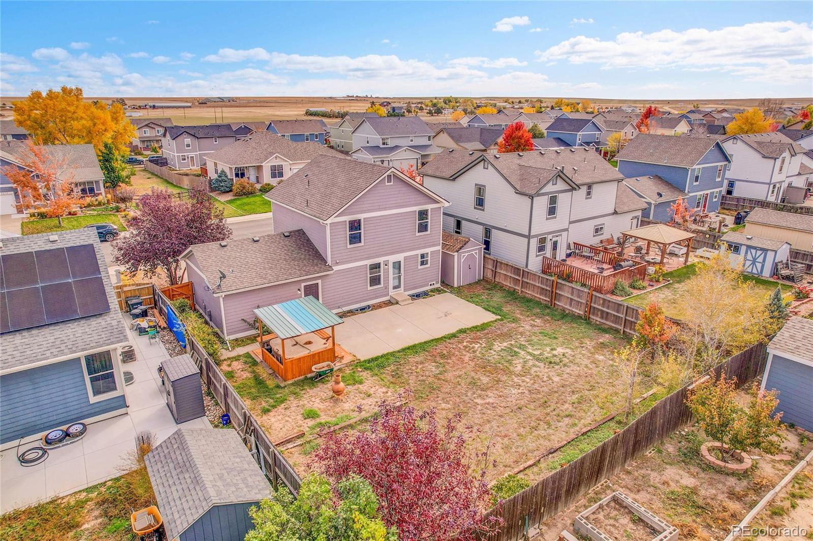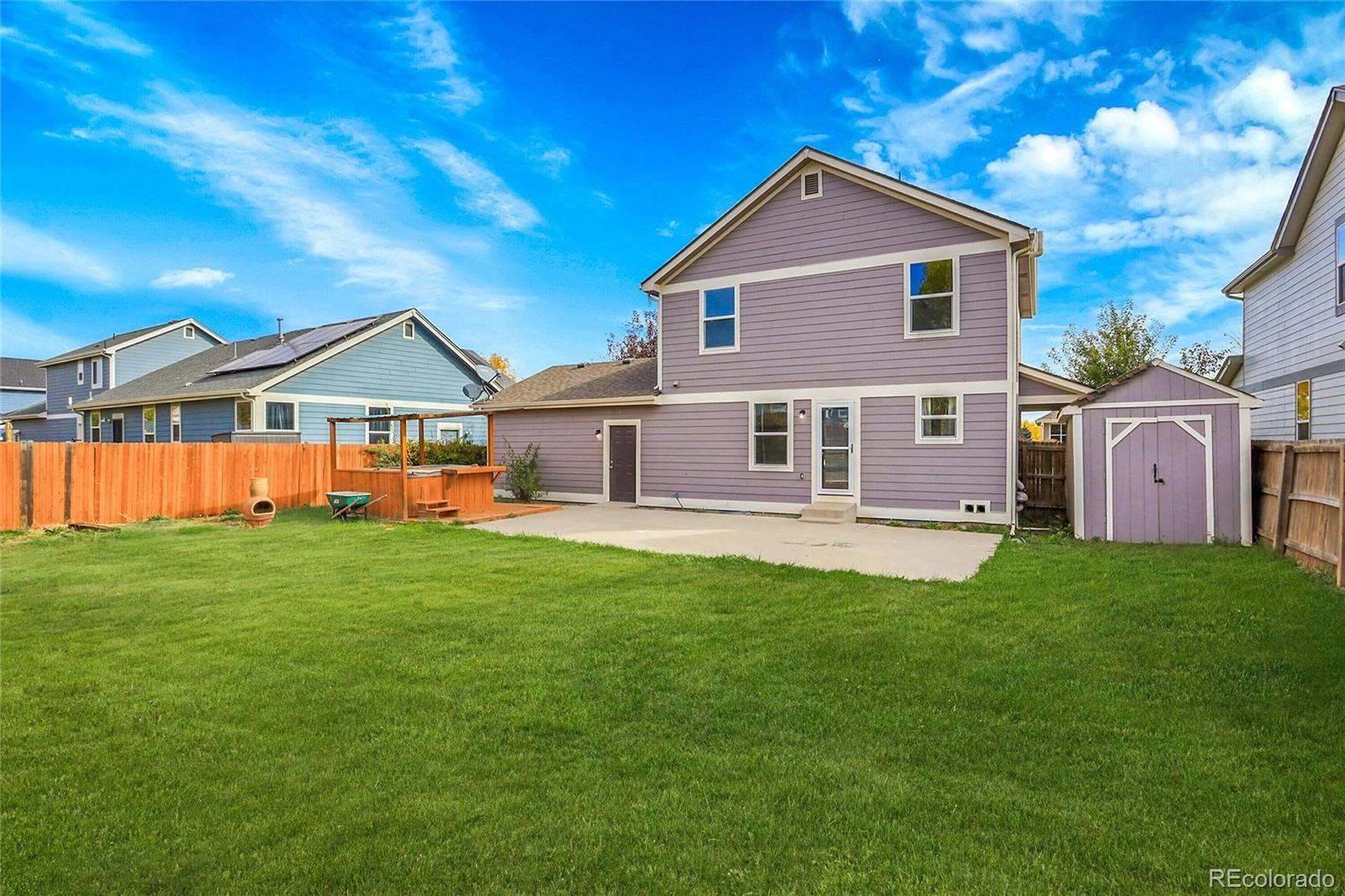 Welcome home to this beautifully maintained 5-bed, 3-bath property in the heart of Strasburg! This single-family home offers over 2,000 sq ft of comfortable living space with an open concept layout, bright natural light, and neutral finishes throughout. The spacious kitchen and dining area flow seamlessly into the living room — perfect for everyday living or entertaining. Enjoy the large fenced backyard, mature landscaping, and covered patio for relaxing evenings outdoors. Conveniently located near local schools, parks, and easy I-70 access for a quick commute to Denver Metro area. Small-town charm make this a must-see!