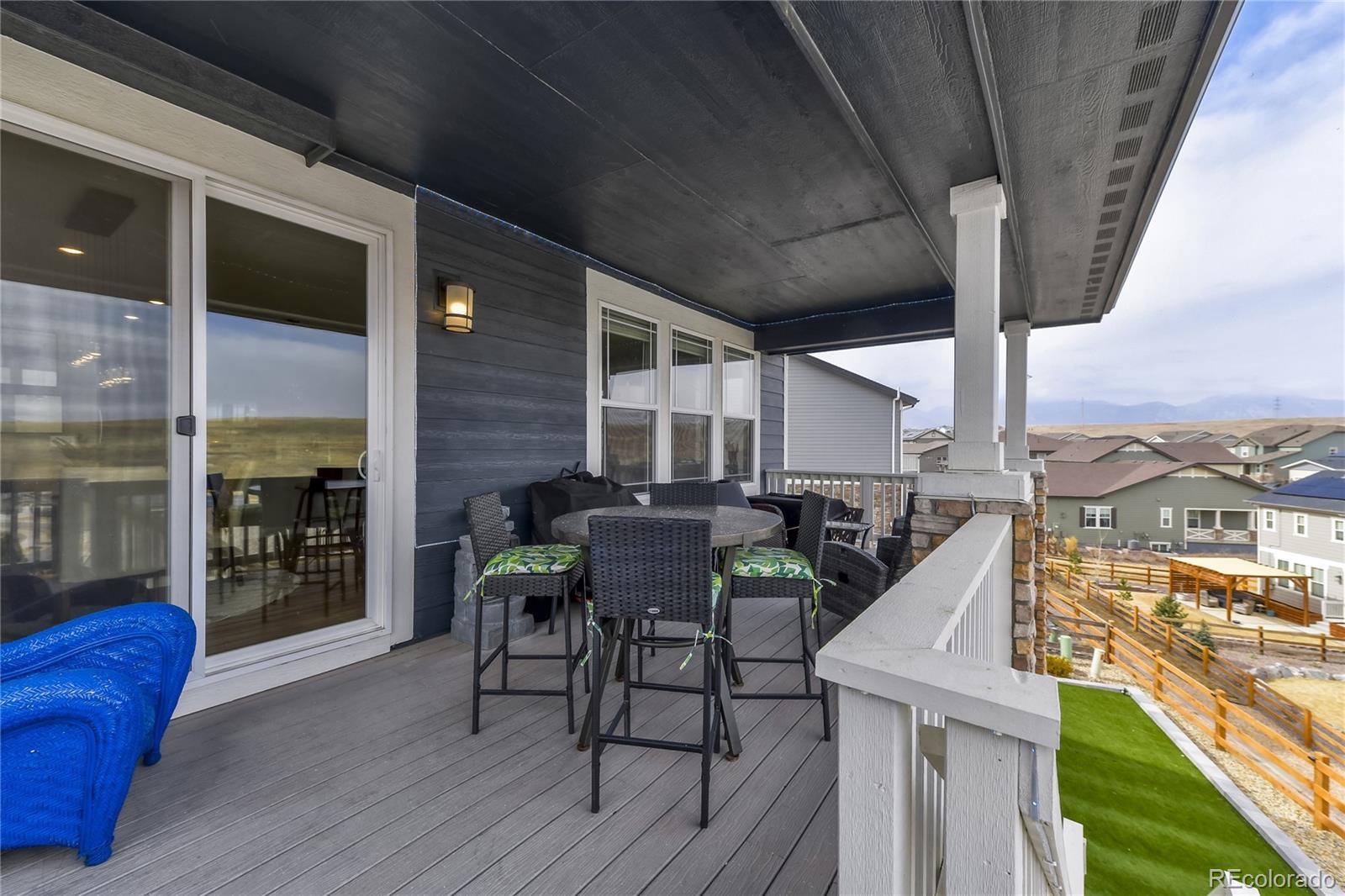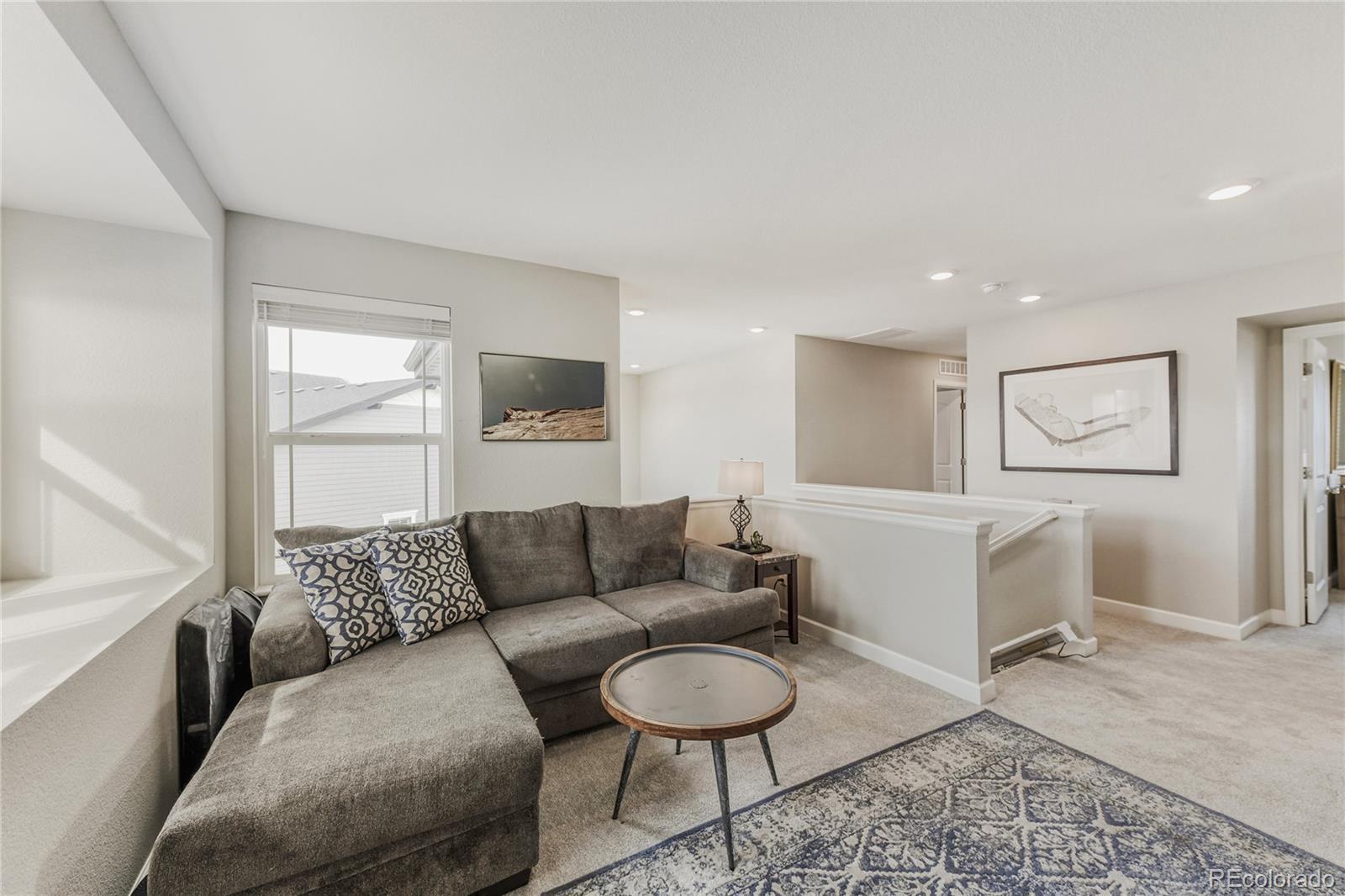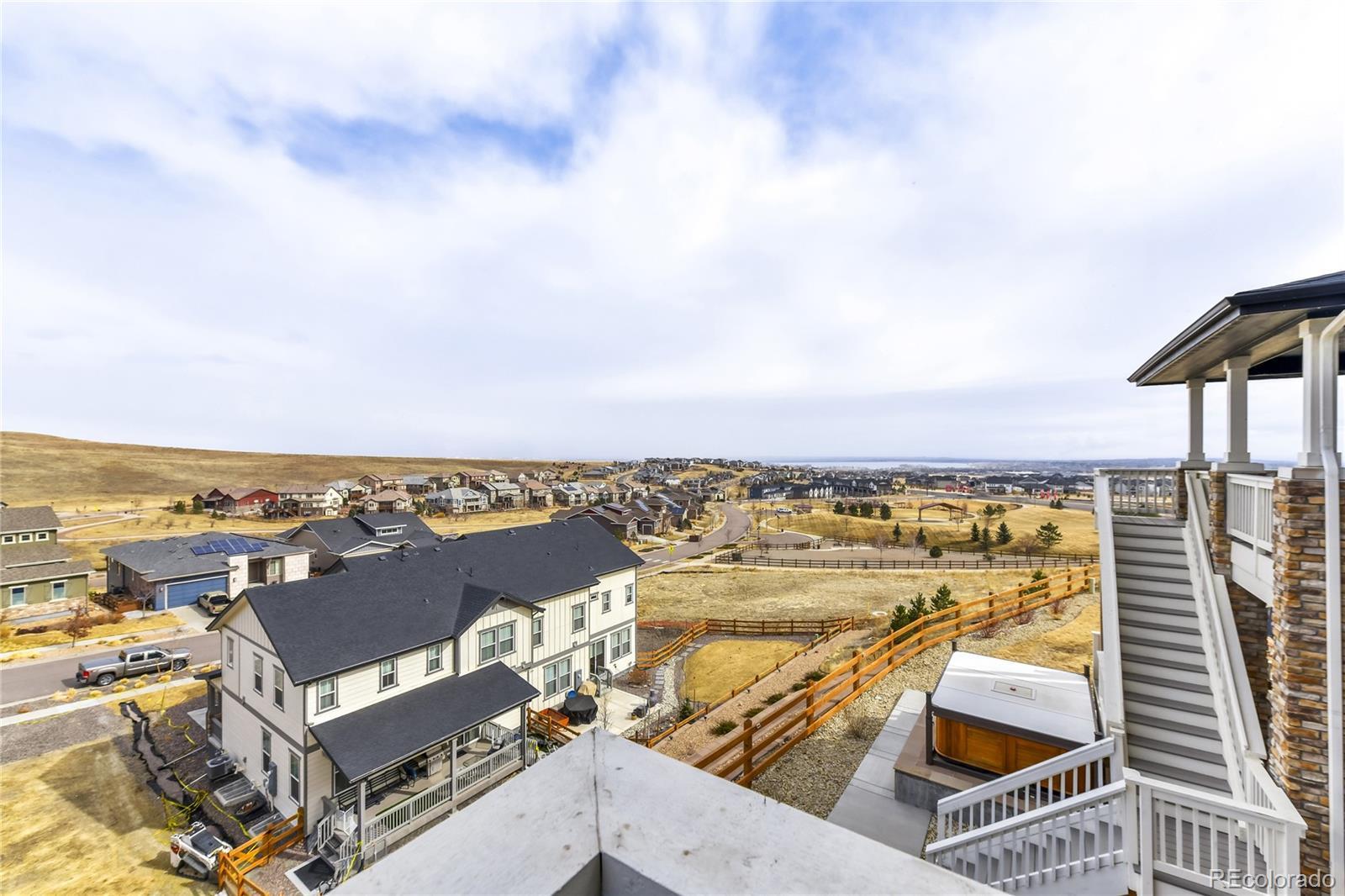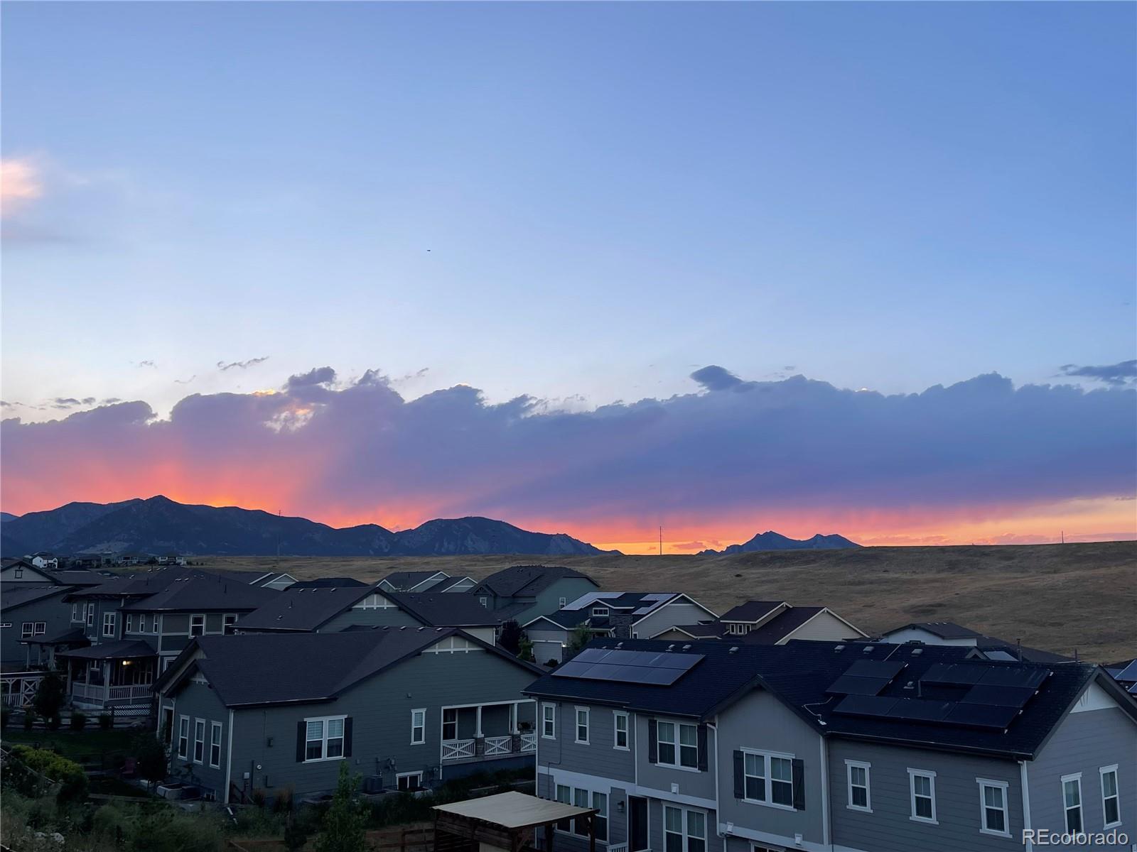 This stunning residence in the highly sought-after Candelas community of Arvada offers the quintessential Colorado lifestyle, featuring breathtaking views of the mountains, city skyline, & lake. The home’s inviting covered front porch leads into an open-concept main floor where the living room, dining area, & kitchen flow seamlessly together. A cozy fireplace anchors the living space, while the gourmet kitchen is appointed with beautiful cabinetry, granite countertops, a central island with breakfast bar seating, stainless steel appliances, & a convenient walk-in pantry. The dining area features sliding glass doors that open to a spacious deck—perfect for enjoying unbeatable sunrises & sunsets. The main level is completed by an office, a powder room, & a laundry room with access to the attached two-car garage, which includes a 220-volt outlet for EV charging. The home is also equipped with seller-paid solar panels, offering energy efficiency & long-term utility savings without the burden of a lease. Upstairs, a spacious family room greets you at the top of the stairs, offering flexible living space. The primary suite provides a private retreat with its own en-suite bath, featuring a walk-in shower & a large walk-in closet. Two additional bedrooms & a full bathroom complete the upper level. For those seeking additional space, the unfinished walk-out basement offers ample storage or expansion potential & opens to a lower-level patio with a negotiable hot tub. Life in Candelas means access to resort-style amenities & the best of the outdoors right at your doorstep. The community offers multiple pools, fitness centers, barbecue areas, & community gardens, along with abundant open space & miles of hiking & biking trails. Residents also enjoy close proximity to the mountains, local parks—including a dedicated dog park—sports fields, tennis courts, & playgrounds. This home beautifully combines modern convenience with a peaceful, scenic setting ready for you to call home.
