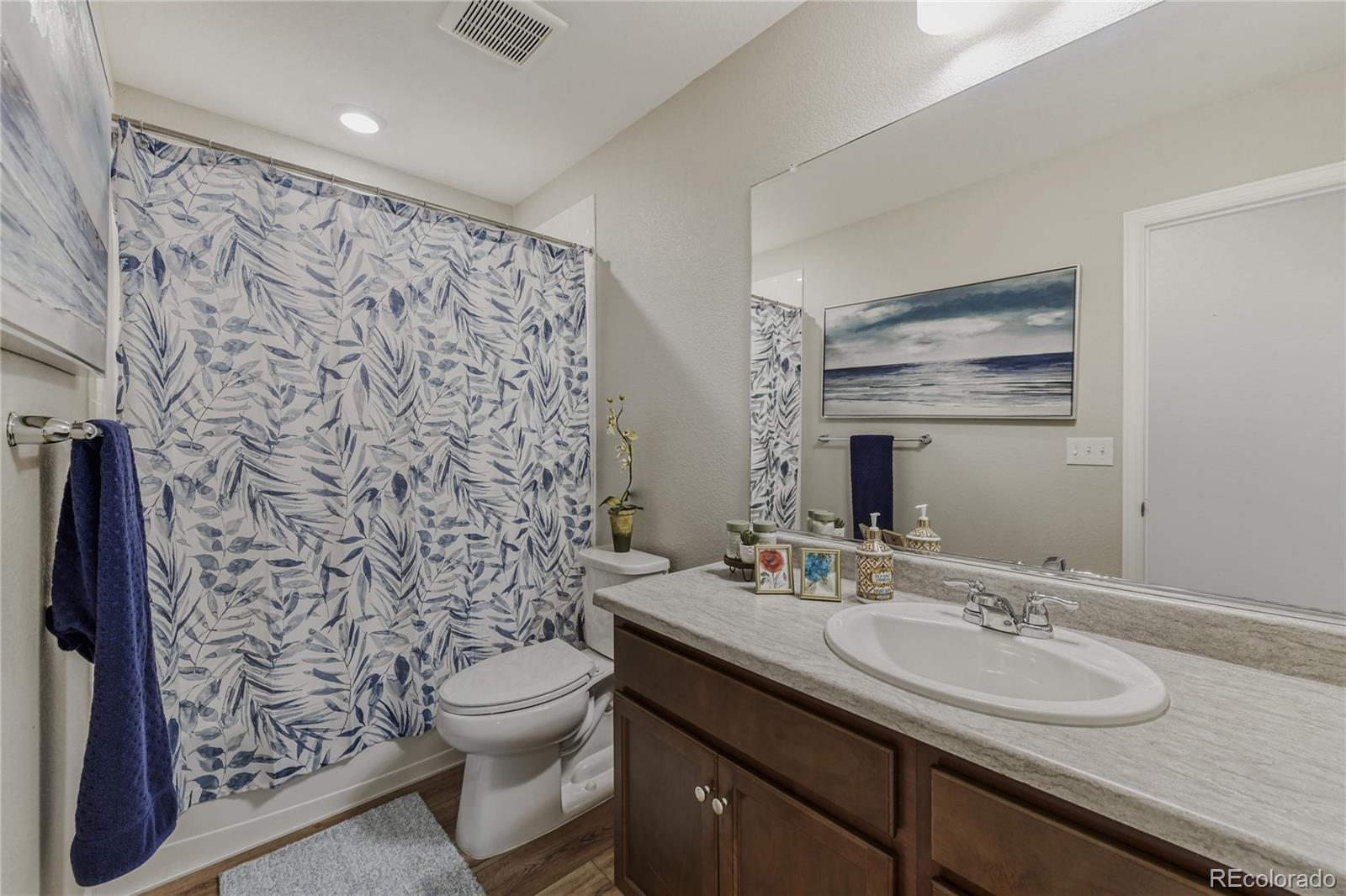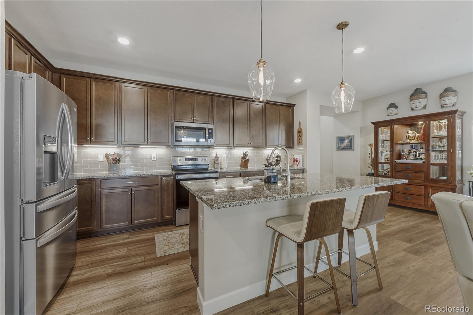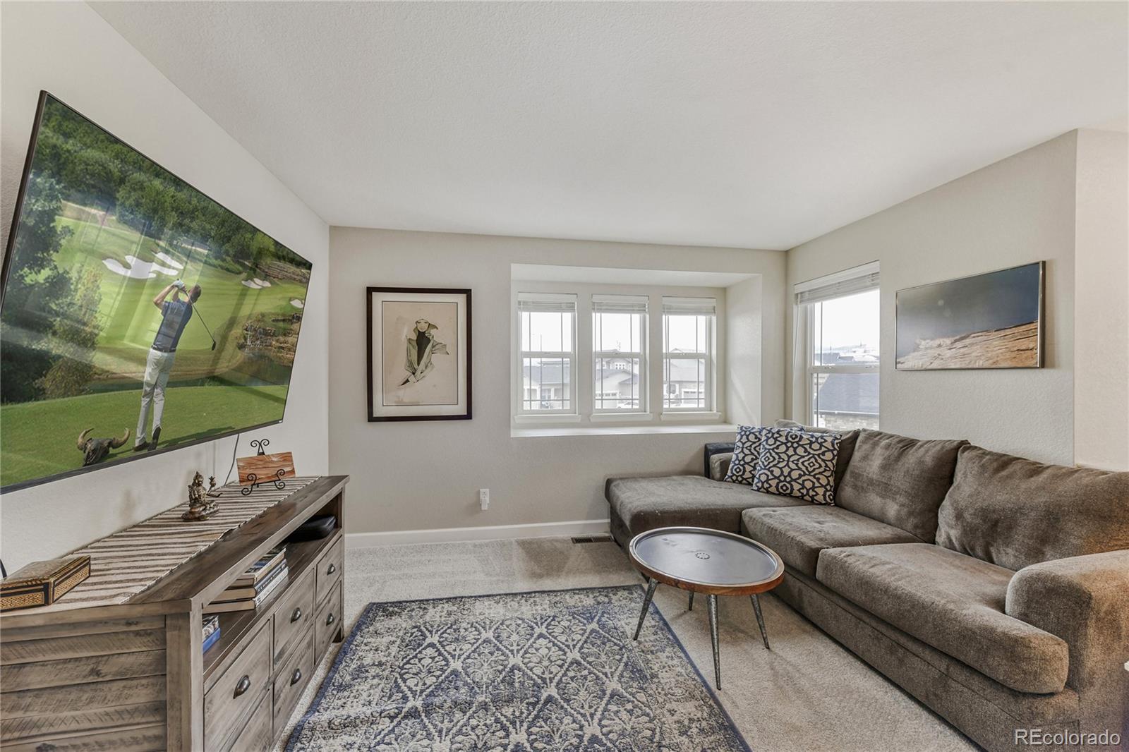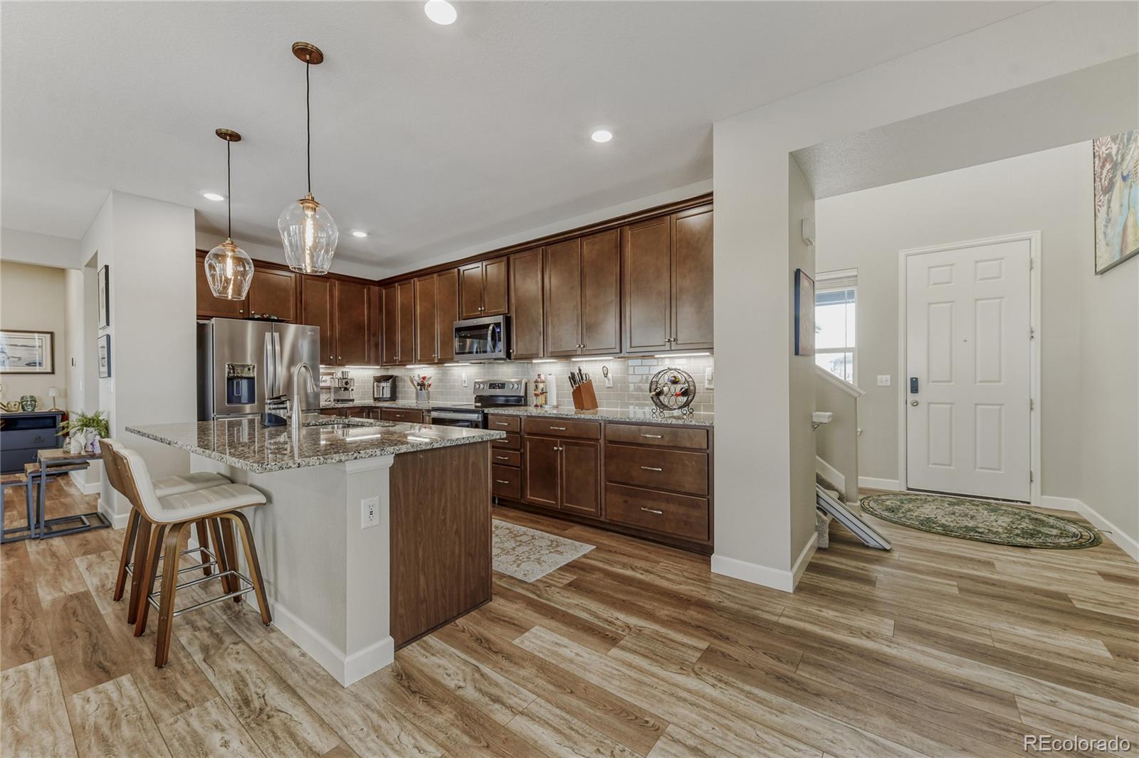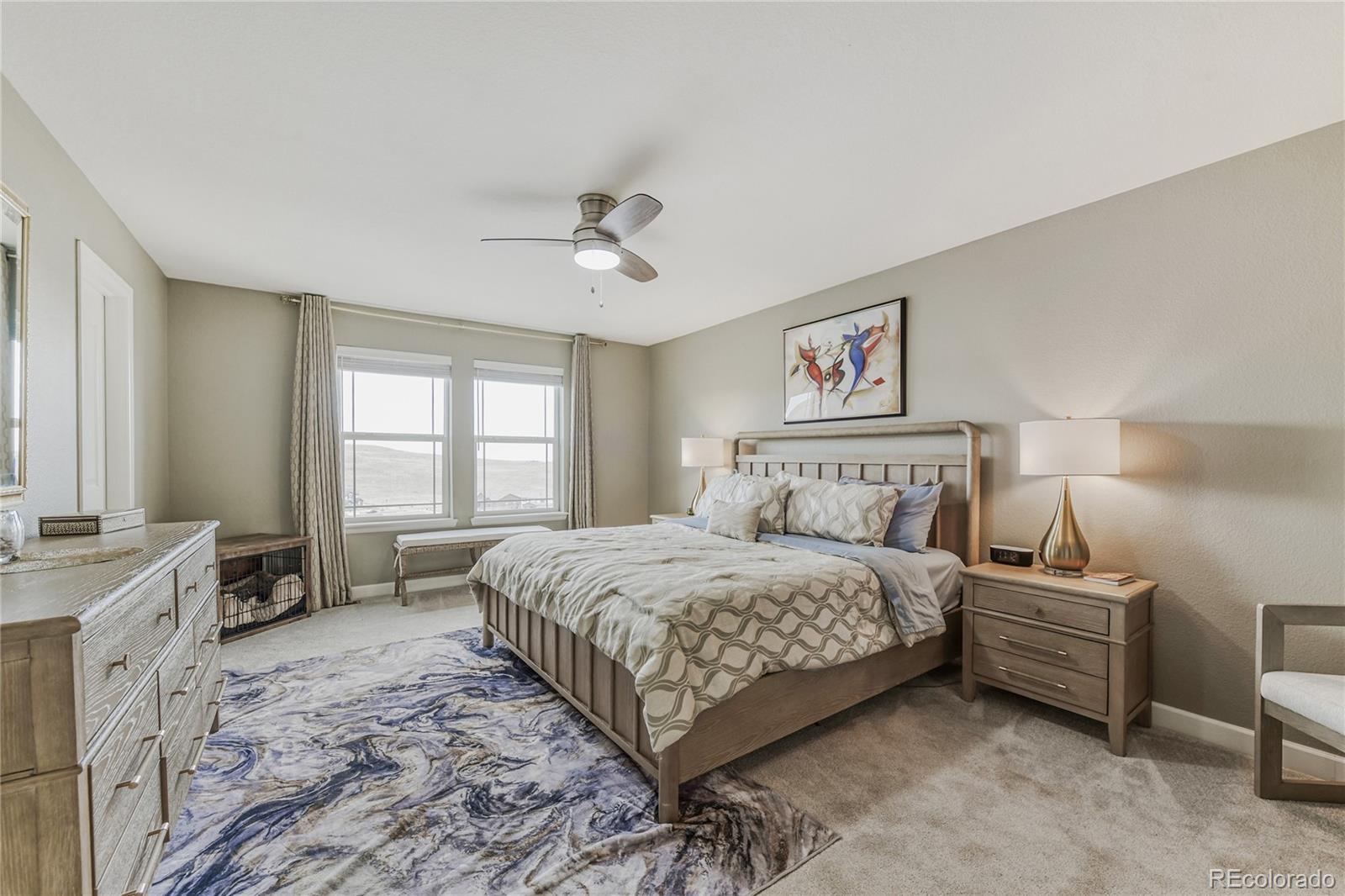 This stunning residence in the highly sought-after Candelas community of Arvada offers the quintessential Colorado lifestyle, featuring breathtaking views of the mountains, city skyline, & lake. The home’s inviting covered front porch leads into an open-concept main floor where the living room, dining area, & kitchen flow seamlessly together. A cozy fireplace anchors the living space, while the gourmet kitchen is appointed with beautiful cabinetry, granite countertops, a central island with breakfast bar seating, stainless steel appliances, & a convenient walk-in pantry. The dining area features sliding glass doors that open to a spacious deck—perfect for enjoying unbeatable sunrises & sunsets. The main level is completed by an office, a powder room, & a laundry room with access to the attached two-car garage, which includes a 220-volt outlet for EV charging. The home is also equipped with seller-paid solar panels, offering energy efficiency & long-term utility savings without the burden of a lease. Upstairs, a spacious family room greets you at the top of the stairs, offering flexible living space. The primary suite provides a private retreat with its own en-suite bath, featuring a walk-in shower & a large walk-in closet. Two additional bedrooms & a full bathroom complete the upper level. For those seeking additional space, the unfinished walk-out basement offers ample storage or expansion potential & opens to a lower-level patio with a negotiable hot tub. Life in Candelas means access to resort-style amenities & the best of the outdoors right at your doorstep. The community offers multiple pools, fitness centers, barbecue areas, & community gardens, along with abundant open space & miles of hiking & biking trails. Residents also enjoy close proximity to the mountains, local parks—including a dedicated dog park—sports fields, tennis courts, & playgrounds. This home beautifully combines modern convenience with a peaceful, scenic setting ready for you to call home.