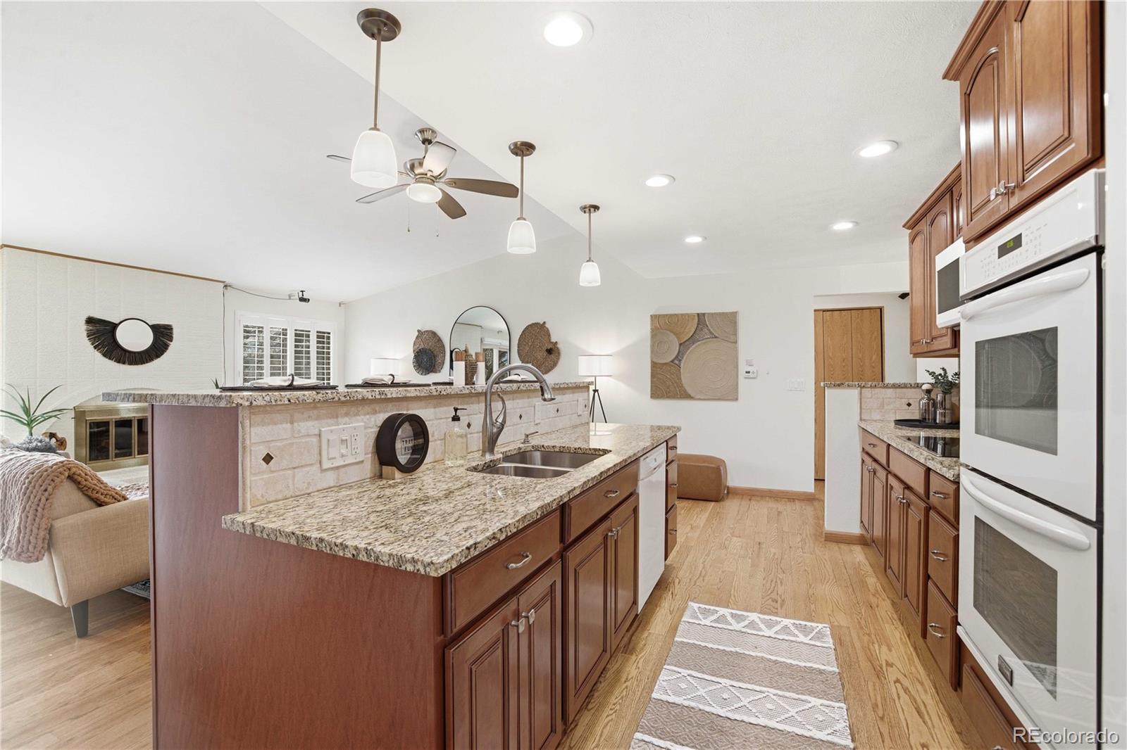 Ceiling Fan(s), Eat-in Kitchen, Granite Counters, High Ceilings, Open Floorplan, Pantry, Stone Counters, Vaulted Ceiling(s)
