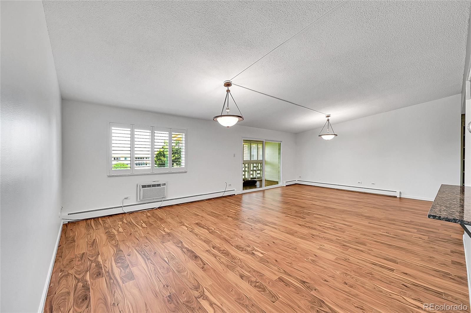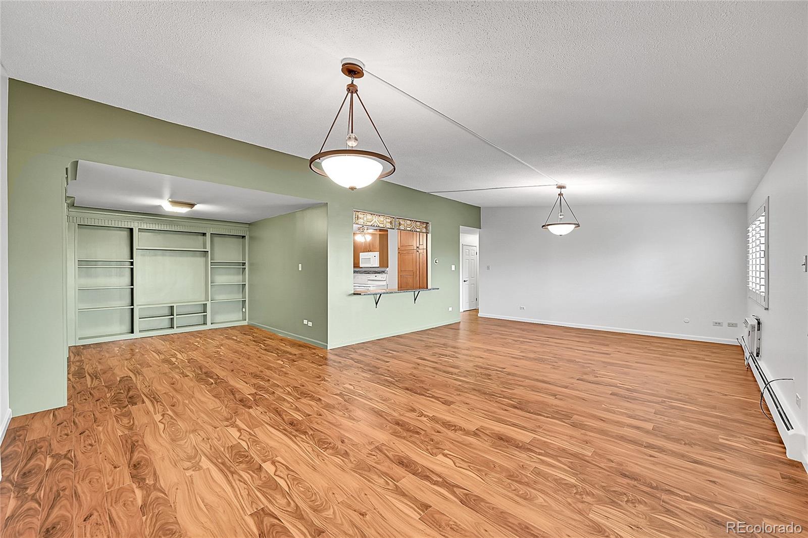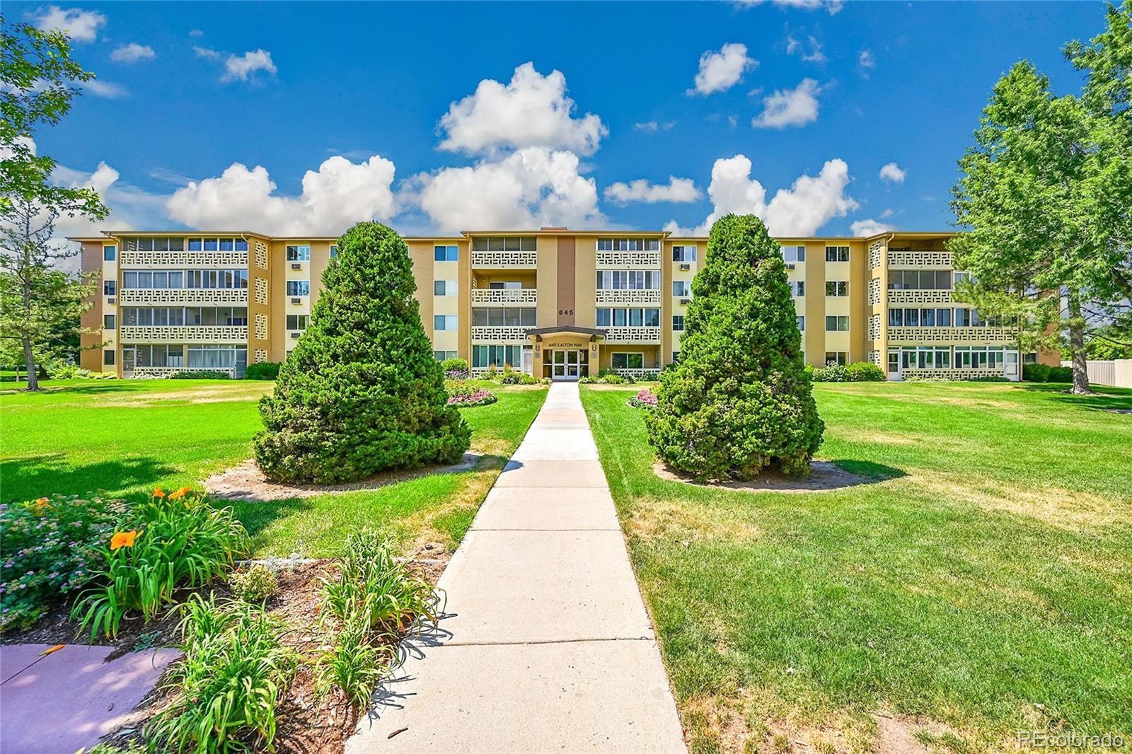 Rare, remodeled 1550 sq ft, 2 bedroom, 2 bath unit with dedicated garage spaces in one of the best 55 year and older communities. The vaulted ceilings provide an airy, sophisticated feel afforded to units only on the fourth floor. Enclosed lanai overlooks professionally landscaped front yard. Newer kitchen with granite countertops, wood floors throughout, with tile in bathrooms and lanai. Large storage closet in unit can be used as an office, and additional storage. Dedicated storage down the all is also included as well as another in one of the garage spaces. Large master bedroom with a spacious walk in closet. 3 AC wall units and ceiling fans. Steps from the Highline Canal, great trail for walking in all seasons. Storm windows with custom shutters throughout. Bus service close by. Minutes from Lowry and Cherry Creek. Many resturants, grocery chains, Costco, Lowe’s and much more are all a short drive or walk. On-site Monthly HOA dues include property taxes, heat, water, sewer, trash, 24 hour community response team, on-site association management, activities coordinator. Amenities include onsite restaurant, a popular 9 hole golf course open to the public, a newly remodeled fitness center, indoor and outdoor swimming pools, hot tub, sauna, billiards room, a well stocked and curated library, rooms for sewing, woodworking and painting. A wide variety of clubs, activities, and events are available to residents.
