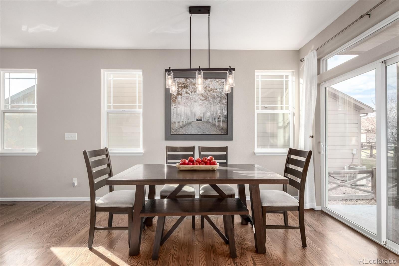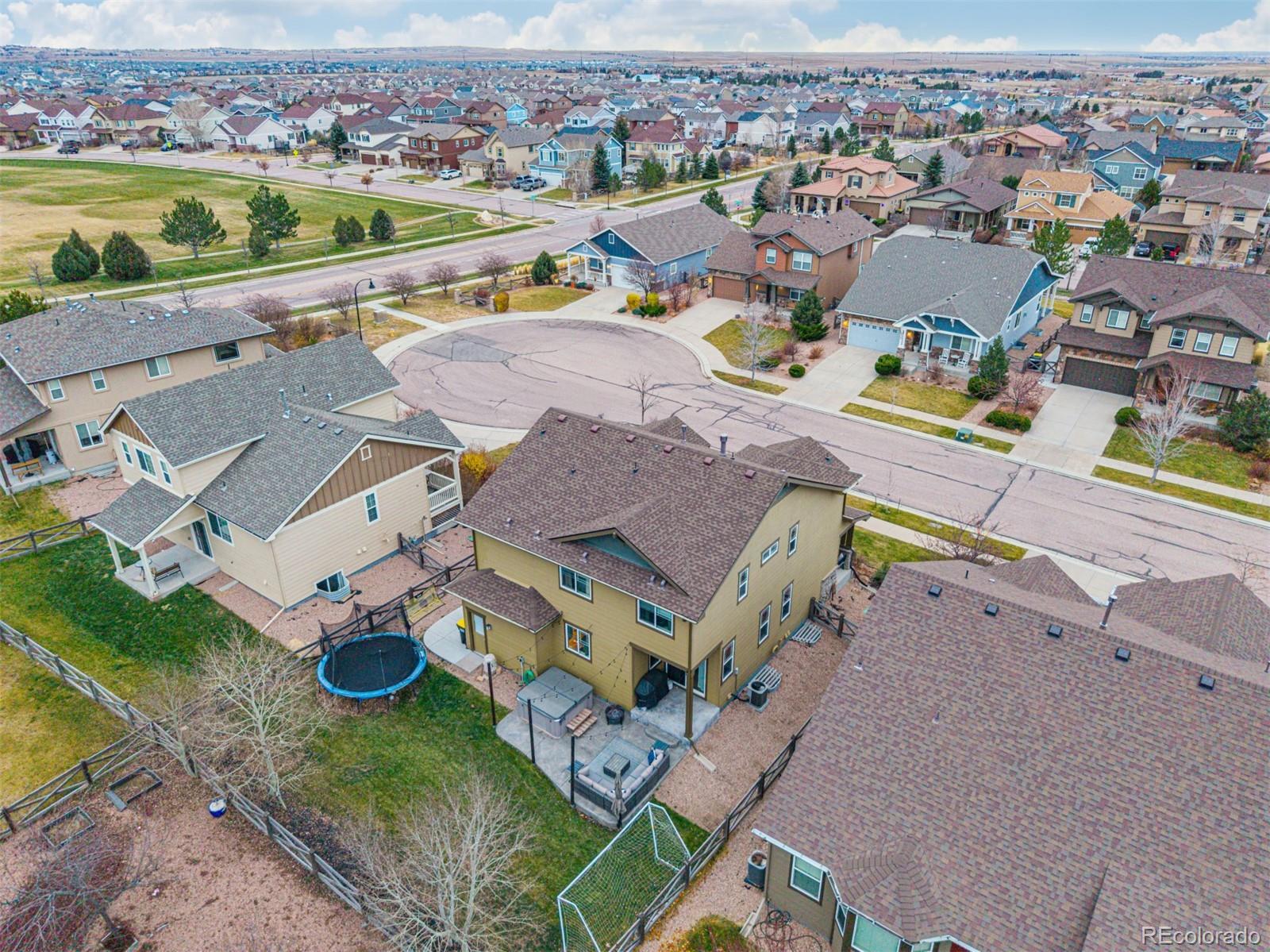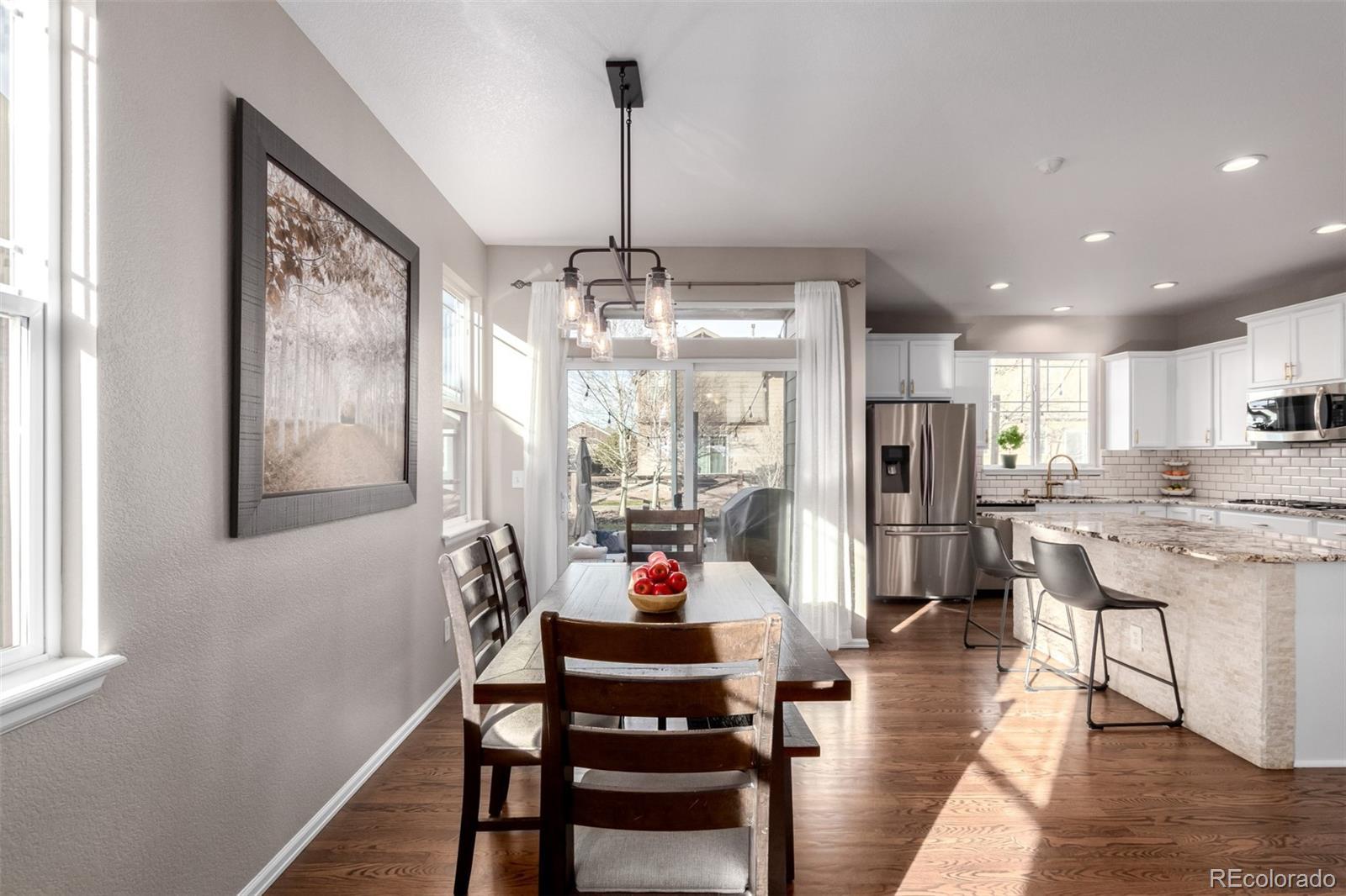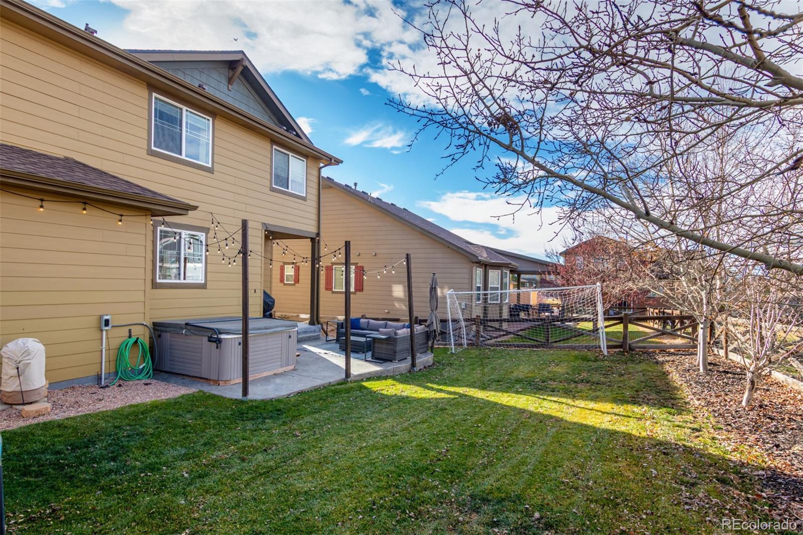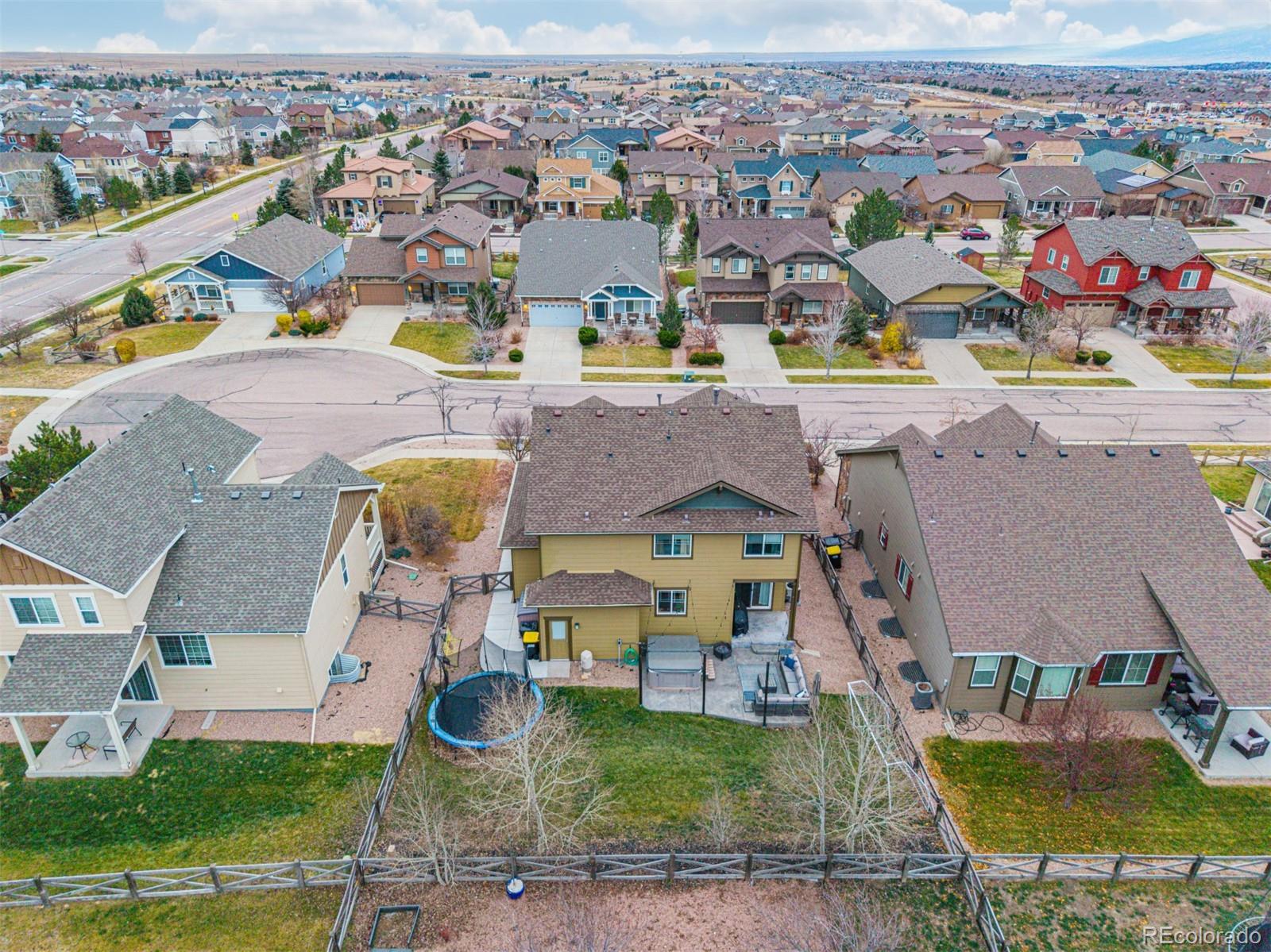 Step into a Banning Lewis Ranch home that’s ready to enjoy from day one! This beautifully maintained 5-bedroom, 3.5-bath residence blends modern upgrades, flexible living spaces, and a true community lifestyle—ideal for buyers seeking comfort, convenience, and room to grow. Rich hardwood floors, 9 ft ceilings, and fresh neutral paint set an inviting tone. A corner gas fireplace connects the living and dining rooms, creating a cozy Colorado backdrop. The gourmet kitchen features granite counters, a center island, double oven, gas range, pantry, and new gold hardware. The dining area opens to a stamped concrete patio with a hot tub that stays, offering easy indoor–outdoor flow. A large front porch with Pikes Peak views provides a relaxing spot to enjoy Colorado sunsets. Upstairs, an open landing connects the primary suite, three bedrooms, and a full bathroom. Step through French doors into the private retreat. The ensuite includes updated sintered countertops, new lighting, a dual vanity with real wood cabinetry, a walk-in closet, plus a soaking tub and separate shower. The finished basement adds versatility with a family room wired for sound, a bedroom, 3/4 bath, storage, and a flexible nook ideal for a gym or hobby space. A standout feature is the finished and insulated 3-car tandem garage with a heavy-duty insulated door, workbench, overhead storage, and direct backyard access—perfect for Colorado gear and tools. Additional highlights include new LED ceiling lights, a whole-house humidifier, manifold plumbing, under-stair storage, and front and back sprinklers. Located on a quiet cul-de-sac, you’re within walking distance of the community recreation center and Banning Lewis Ranch Academy, with convenient access to Vista Water Park, Climber’s Park, and seasonal concerts, events, and the farmers market—offering a lifestyle that’s active and connected. Move-in ready and thoughtfully upgraded—this home is one you won’t want to miss.