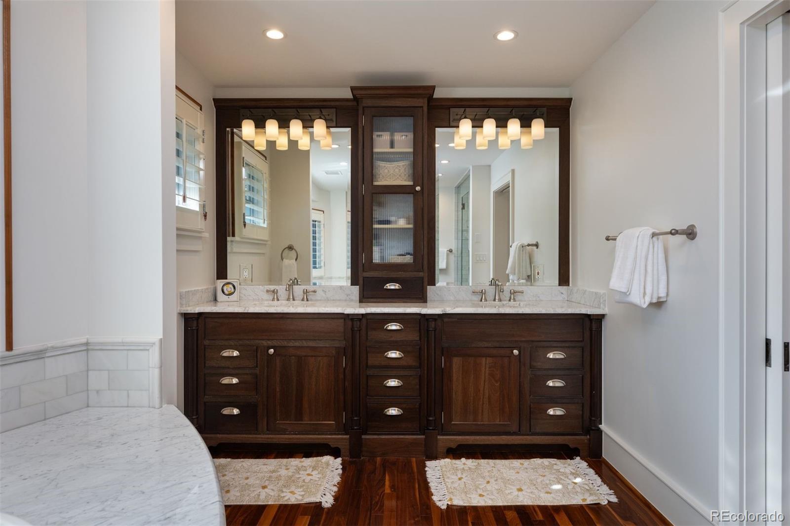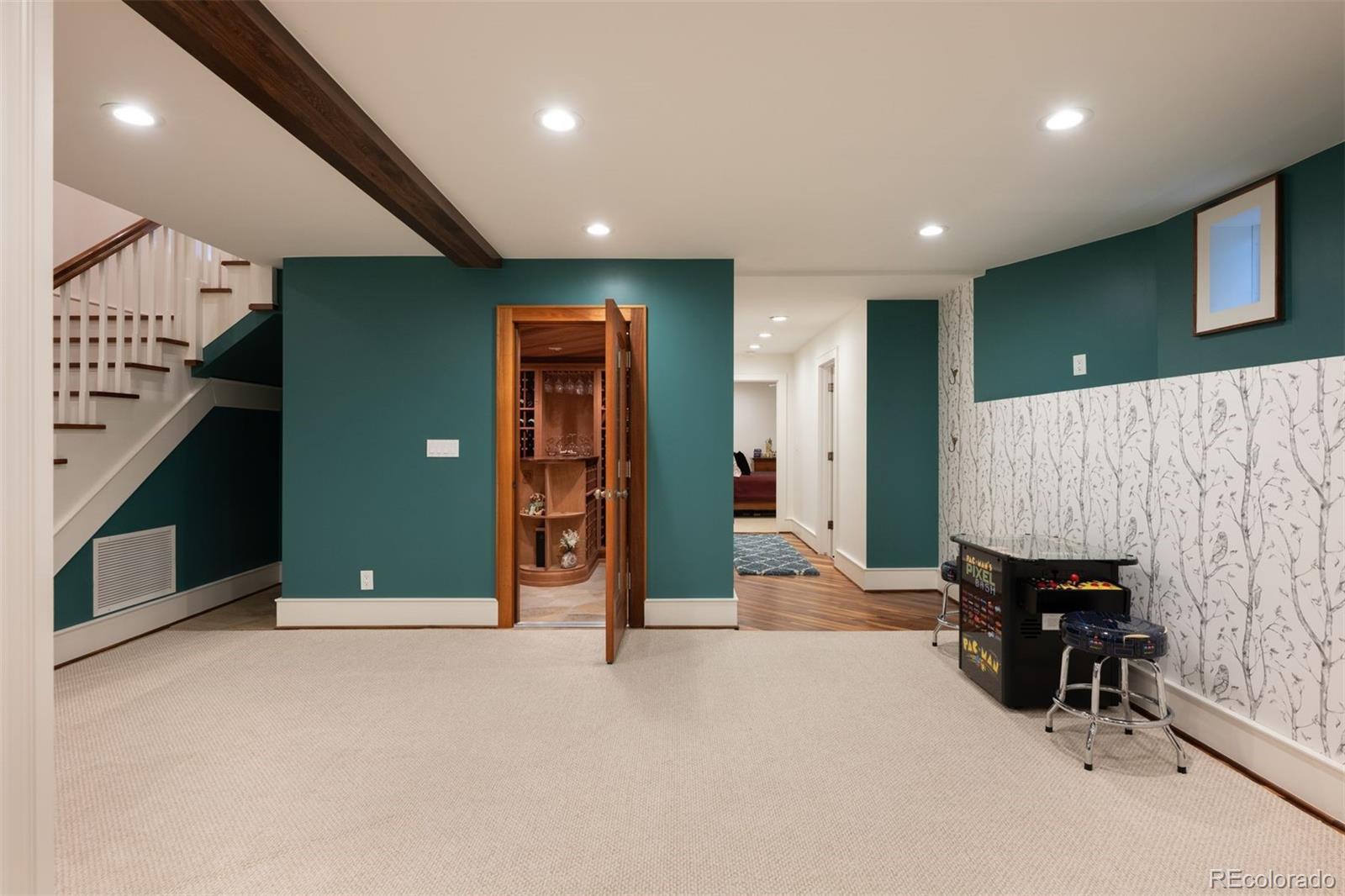 This craftsman stunner boasts a level of finish that is unparalleled in central Denver. The house was completely reconstructed by Character Built with intention; the historic charm and timeless architecture bring elegance to modern luxury. The home is perfect for family life, work-from-home and entertaining as it has a formal dining room, spacious office, home gym, study area, 500+ bottle wine cellar, four fireplaces and outdoor cooking. A flagstone walkway leads to a classic front porch and a front door flanked by stained glass. The main floor, with its walnut flooring, wainscoting, coved ceilings and built-ins, is an open concept that shows craftsmanship in every corner. High end appliances and a built-in espresso machine are surrounded by custom cabinetry and millwork. The upstairs features three bedrooms, including a breathtaking primary suite with exposed wood beams, vaulted ceilings, a cozy fireplace, custom closet, and a marble spa-inspired bath. The two additional bedrooms are tucked away and share a spacious Jack-and-Jill bath. The basement, with a guest suite, is multi-purpose and cozy. This home is a work of art with beauty and character, just steps away from everything that 80209 has to offer. Excellent walkability—just blocks to Wash Park, steps from the bike path, half a block to Denver Country Club, and moments from Blackbird and the acclaimed Restaurant Olivia.