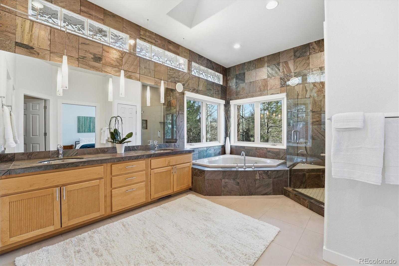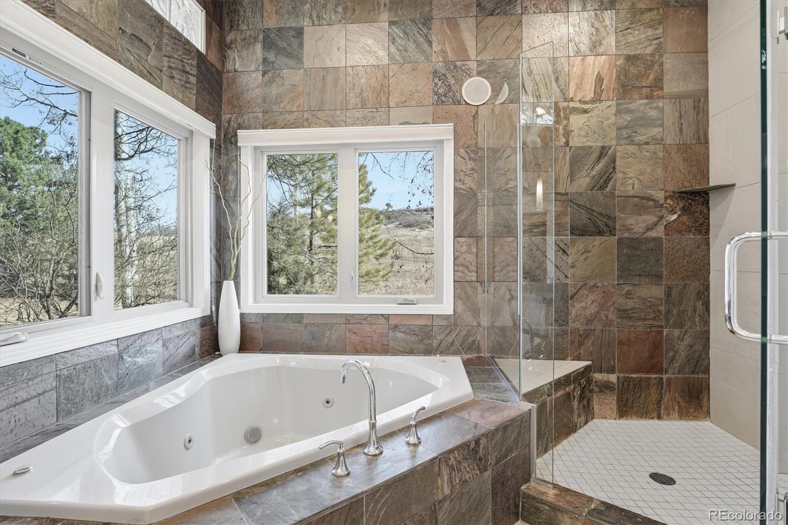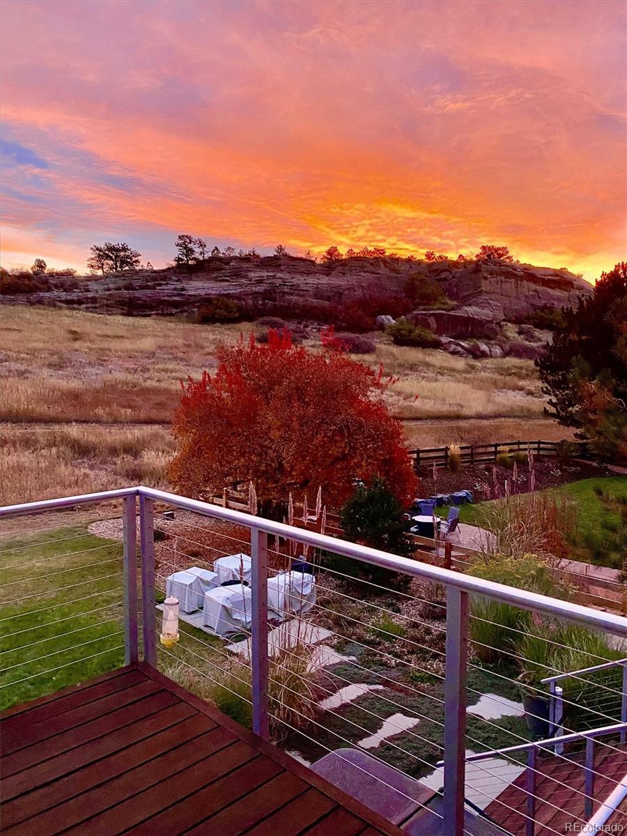 Stunning Modern Remodeled North Ranch Retreat - Backing to Ken-Caryl Open Space Perfectly positioned backing to protected open space, this remarkable contemporary 5-bedroom, 5-bathroom home offers breathtaking views of dramatic rock formations, abundant wildlife, and private trail access right from your backyard. Thoughtfully renovated throughout, the home seamlessly blends modern sophistication with timeless comfort. Expansive windows and an open-concept design flood the interior with natural light, inviting the surrounding landscape into every living space. The fully remodeled kitchen features a panoramic window with premium Bosch and Sub-Zero appliances, stylish designer finishes, custom cabinetry, walk in pantry and a generous center island—ideal for cooking, gathering, and entertaining. The main-floor primary suite is a private sanctuary, complete with large walk-in shower, bath and dual walk-in closets. Upstairs, you’ll find three spacious bedrooms, two remodeled bathrooms, and a dedicated office with inspiring views. The finished basement expands your living space with a home gym, theater room, and a versatile suite ideal for guests or multi-generational living. Outdoor living is unparalleled with multiple decks and patios designed for every occasion. The front patio showcases a fire pit and tranquil water feature with Front Range mountain sunset views, while the recently remodeled covered deck with built in BBQ and built in fireplace creates the perfect setting for cozying up or entertaining against a backdrop of striking rock formations and open space. Additional highlights include:Central vacuum system with floor kick-plates for sweeping, Newer windows, New HVAC in 2021, New exterior paint in 2023 w/10 year warranty, Woodpecker-resistant stucco siding, Quiet Cool Attic fan and abundant storage throughout. This is the one! call for private showing 303-888-9228