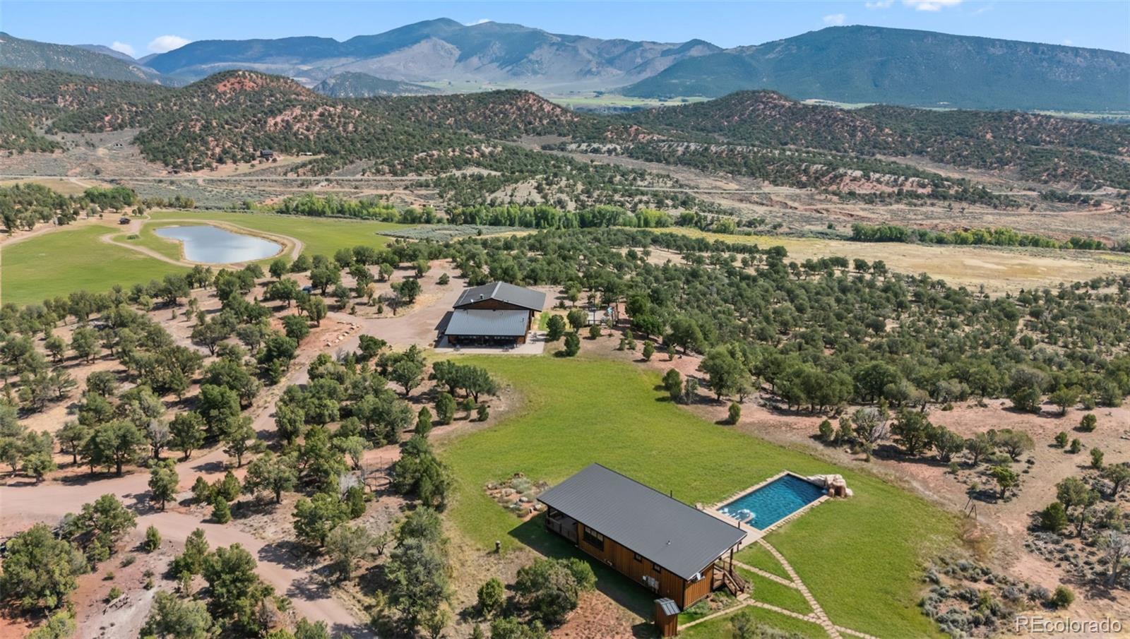 This extraordinary 298 acre recreation ranch offers a rare blend of luxury, privacy, and adventure with water rights, wells and a pond. At its heart are a western contemporary main house, a luxury barndominium, and a resort-style pool with pool house fully equipped for entertaining. The cantina and recreation complex features a commercial kitchen, music studio and a sports barn, making it ideal for hosting all of your guests. The property also has a stocked fishing pond, sporting clays and 3 other shooting ranges, a full suite of vehicles and maintenance equipment, and miles of trails and direct access to BLM land! This property is turnkey for both relaxation and rugged exploration.