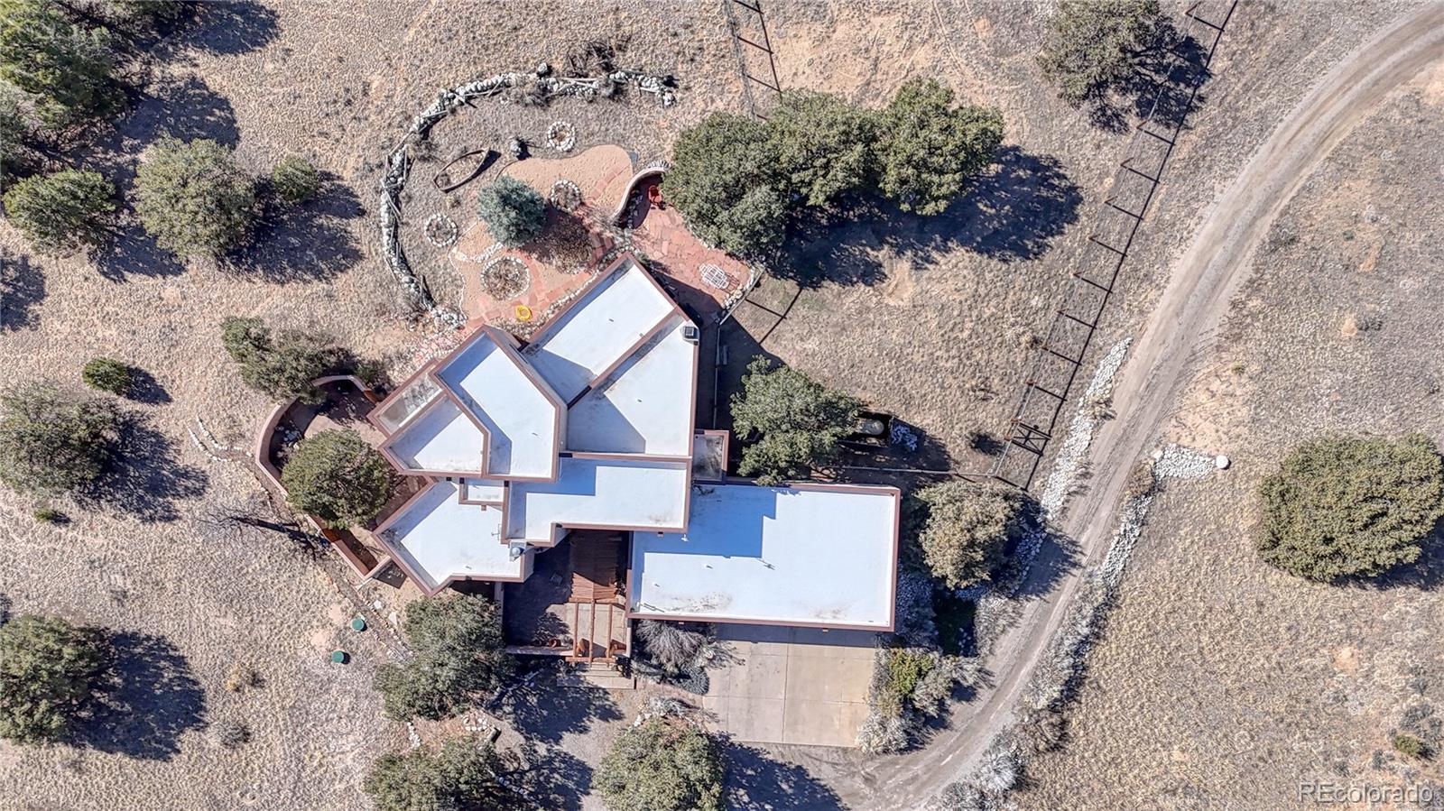 Beautiful Sante Fe Style Mountain Contemporary Home on 29 Plus acres. This lovely home has 4 Bedrooms/4 Baths plus office, open living/dining/kitchen, upstairs den/family room and wonderful outdoor spaces with private balconies and walled courtyards. Two Kiva fireplaces both inside the living room and outside in the front courtyard. Enjoy your quiet morning cup of coffee outside with 360 degree mountain views, 14 thousand foot peaks on the Collegiate Peak range with Mt Princeton to the west for beautiful sunsets, the Sangre de Cristos to the South and Browns Canyon to the east. The home boasts a grand entry, an open living and dining, bright chef's kitchen and entertainment counter with sink and wine cooler. The primary suite has mountain views, a door onto the private courtyard, Five piece bath with an oversized tub, steam shower and walk-in closet. Two additional bedrooms or an office and 2 half baths are located on the main level. Up the open stairs and landing, please find an open den/TV room with a door to a private rooftop deck. Two additional guest bedrooms with doors to the outside shared deck and a full bath in the hallway. This home is private with amazing views from the large bright windows throughout, wood floors and solid wood doors, decks and courtyards There is an attached 3 car garage, a detached 3 car garage, pole barn and two sheds on the property. Fenced areas on the property for animals and an augmented well allowing for up to 5 livestock if desired. Located halfway between historic downtown Salida or Buena Vista for shops and restaurants within a 15 minute drive in either direction. Fishing on the Arkansas river nearby, rafting, biking, skiing at Monarch Ski area and plentiful hiking on public lands. This is truly a special property. Shown by Appointment.