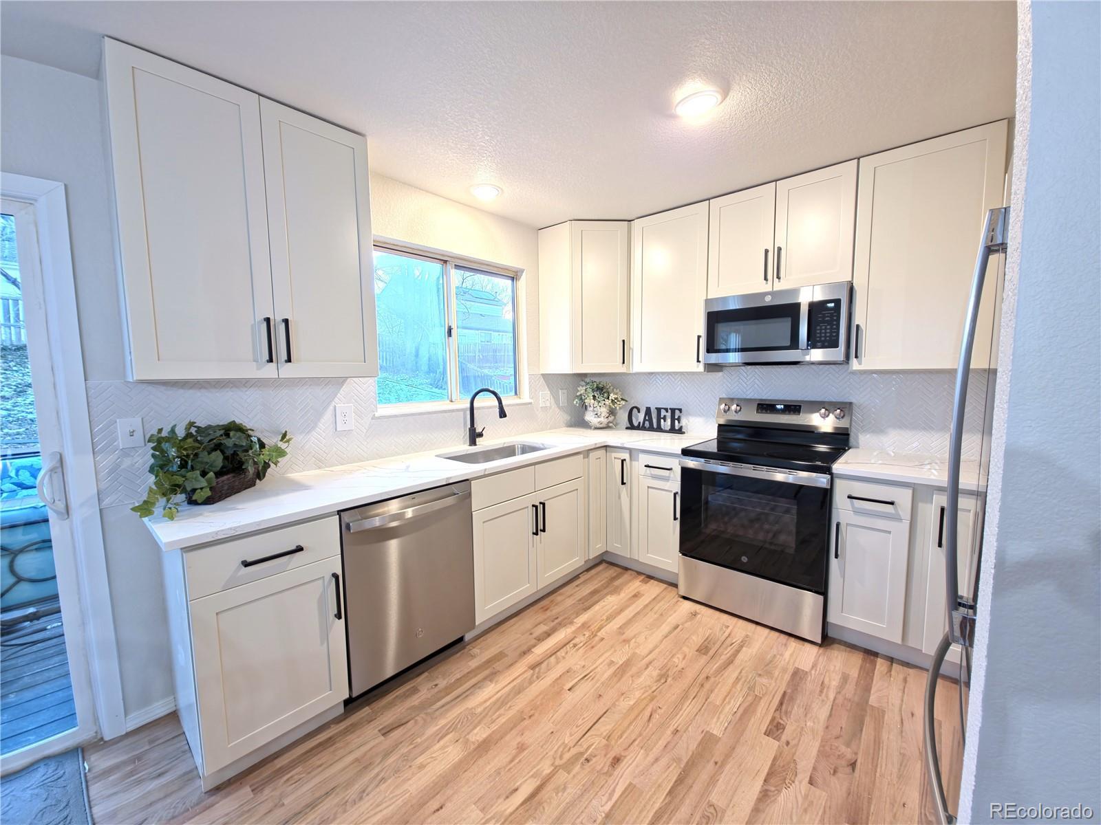 A MUST SEE in Highlands Ranch! 996 Cherry Blossom Ct is just as charming as its address! This completley remodeled tri level home has a new roof, new HVAC, new interior and exterior paint and all new windows. A lovely new composite deck with black modern railing sits off the kitchen with ample room for dining under the stars and a staircase that leads down to the mature backyard. The kitchen boasts white shaker cabinets with soft close doors and drawers accented with quartz counters and a geometric backsplash. Black farmhouse lighting fixtures adds warmth with a touch of elegance. Attention to detail flows throughout, from the beautiful hardwood flooring and stunning tile which frames the woodburning fireplace. Bathrooms have been completely remodeled with gorgeous tile flooring, and quartz counters as well. This adorable home sits deep in the cul-de-sac away from traffic noise. The backyard is perfect for pets,and gardening with plenty of room for entertaining. The location is close to open space trails, parks, 4 rec centers, grocery stores, Home Depot and the C-470 corridor to the mtns or DIA. This is an amazing house that's move-in ready and just waiting for you to call home!