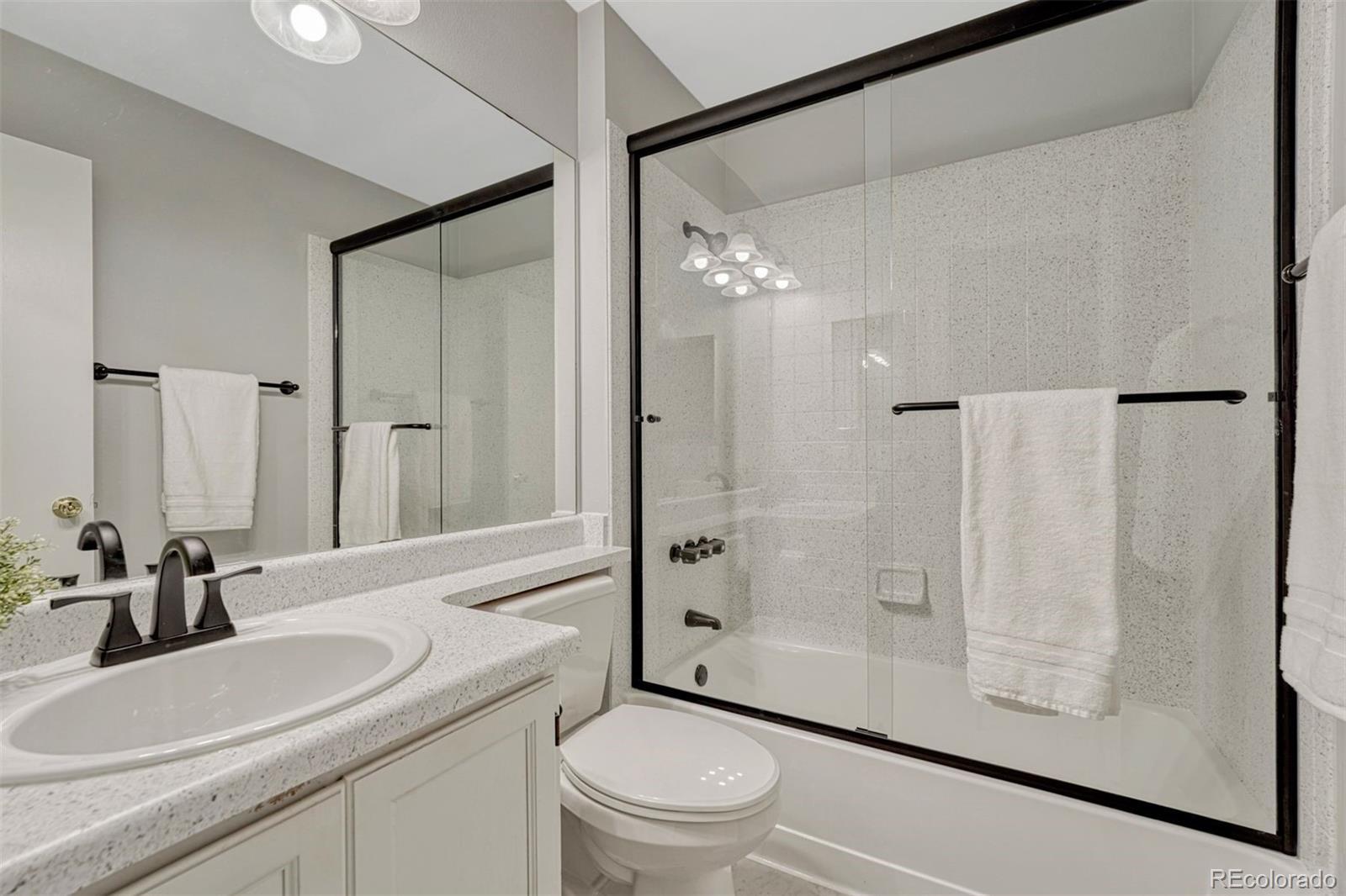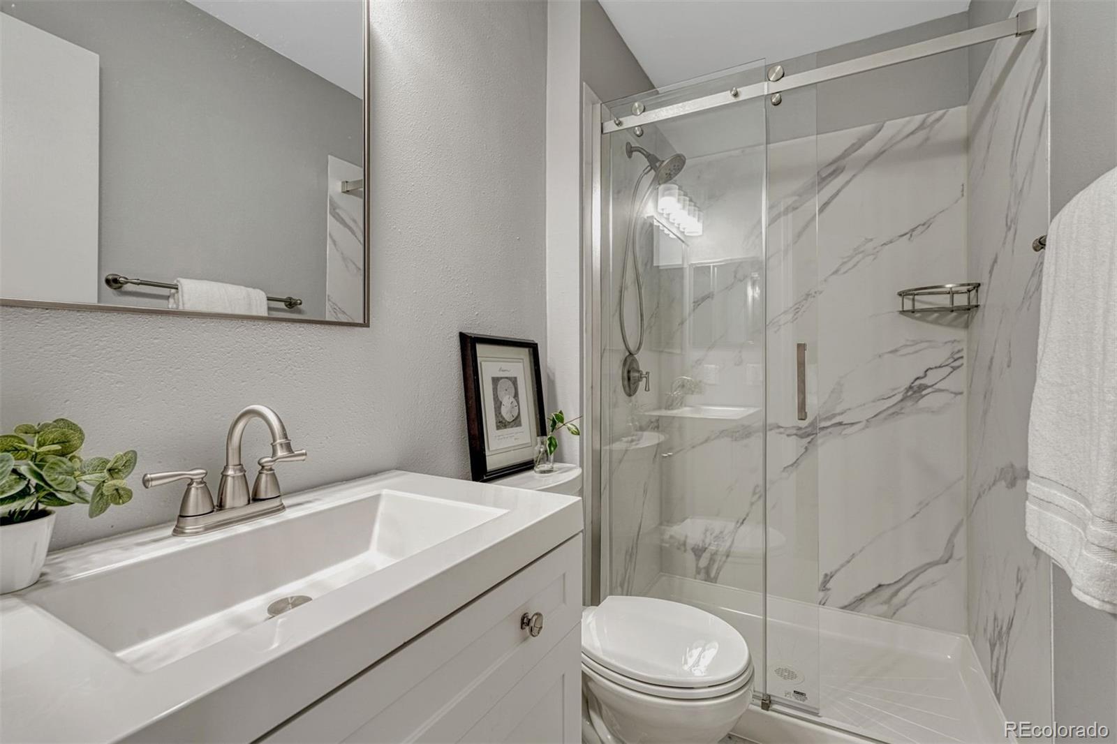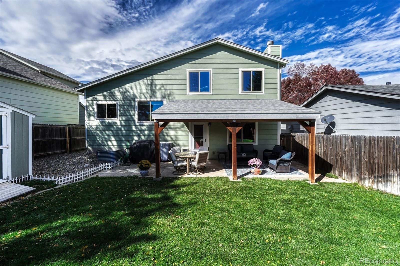 Welcome to this beautifully maintained and thoughtfully updated home, offering comfort, style, and functionality in one perfect package. Freshly painted inside and featuring updated bathrooms, this residence boasts a bright, open floor plan designed for modern living. The spacious living area centers around a gas fireplace with a custom surround, creating a warm and inviting atmosphere. Step outside to your private backyard retreat—complete with a covered patio that extends your living space and provides the perfect setting for outdoor entertaining or quiet relaxation. The primary suite offers a peaceful escape, featuring its own newly updated bath. Two additional bedrooms share a beautifully remodeled full bath, providing plenty of room for family, guests or home office. The finished basement adds even more flexibility, easily functioning as a fourth bedroom, home office, or additional family room—with its own bathroom for added convenience. Additional highlights include durable LVP flooring, central air conditioning, abundant storage, a plumbed-in sprinkler system, built-in garage shelving, and all appliances and window coverings included. Situated in a highly desirable neighborhood near the Powers Corridor, this home offers quick access to shopping, dining, and major military installations including Peterson, Schriever, and the Air Force Academy. Don’t miss your chance to own this exceptional home—schedule your private showing today!