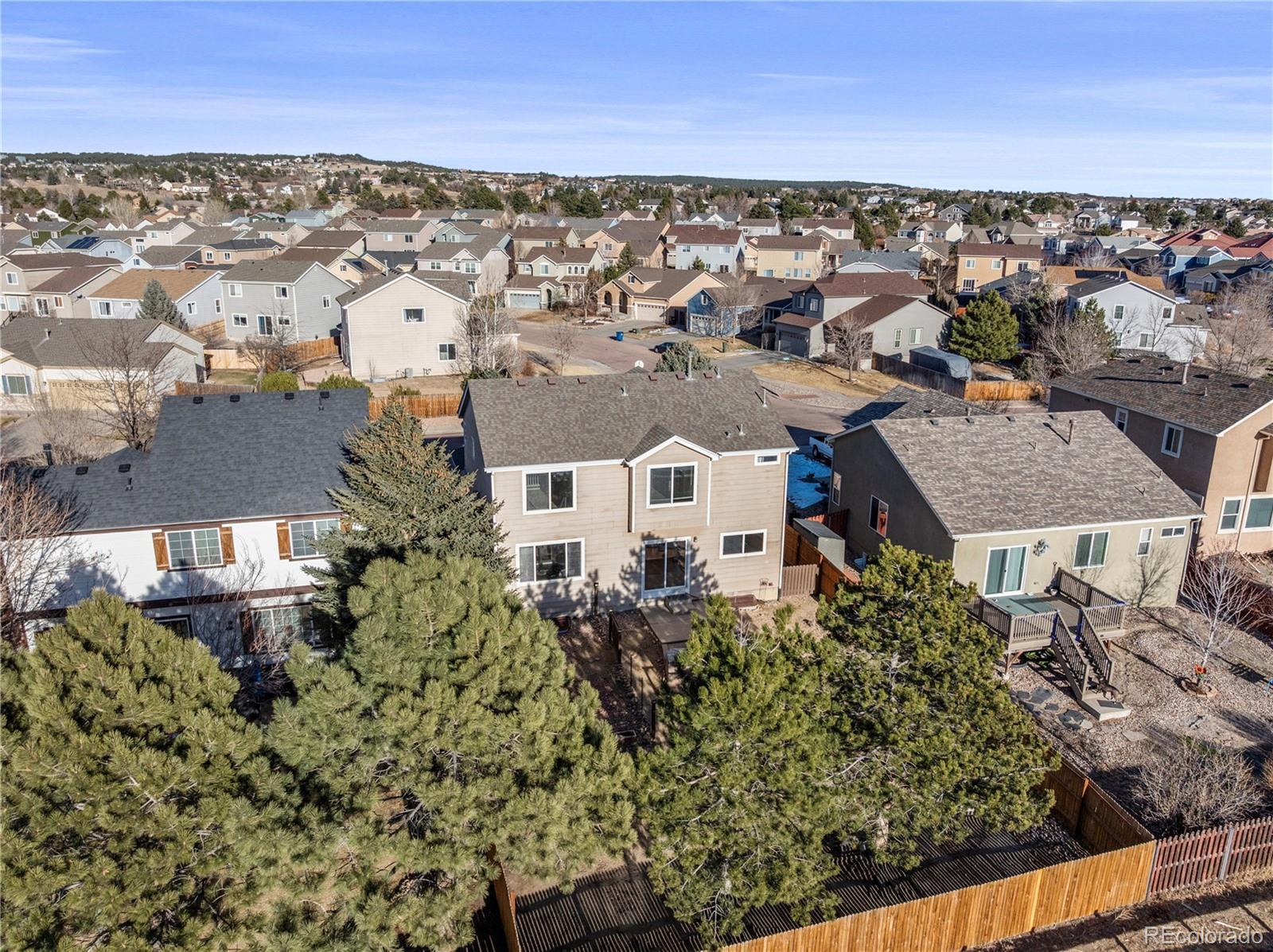One of the best values with exceptional potential in D20, this 3-bedroom, 3-bath home in Falcon’s Nest offers a versatile floor plan with a spacious loft, unfinished basement, and a 2-car attached garage. The open main level provides comfortable everyday living, while the loft with built-in bookshelves creates flexibility for a home office, second living area, or play space. Set on a generously sized fenced lot, the backyard features incredible views of the Front Range, Pikes Peak, and the Air Force Academy. A built-in outdoor grilling area makes it ideal for entertaining or enjoying Colorado evenings. The unfinished basement presents an excellent opportunity to add future living space or additional flex space such as a gym or storage. Major mechanical updates include a new furnace and air conditioning system replaced in 2020, providing peace of mind for the next owner. Some appliances have been updated for everyday convenience. Conveniently located near everything northern Colorado Springs has to offer, just minutes from the Air Force Academy, dining, and I-25 access, this home offers space, views, and long-term potential in an established neighborhood.