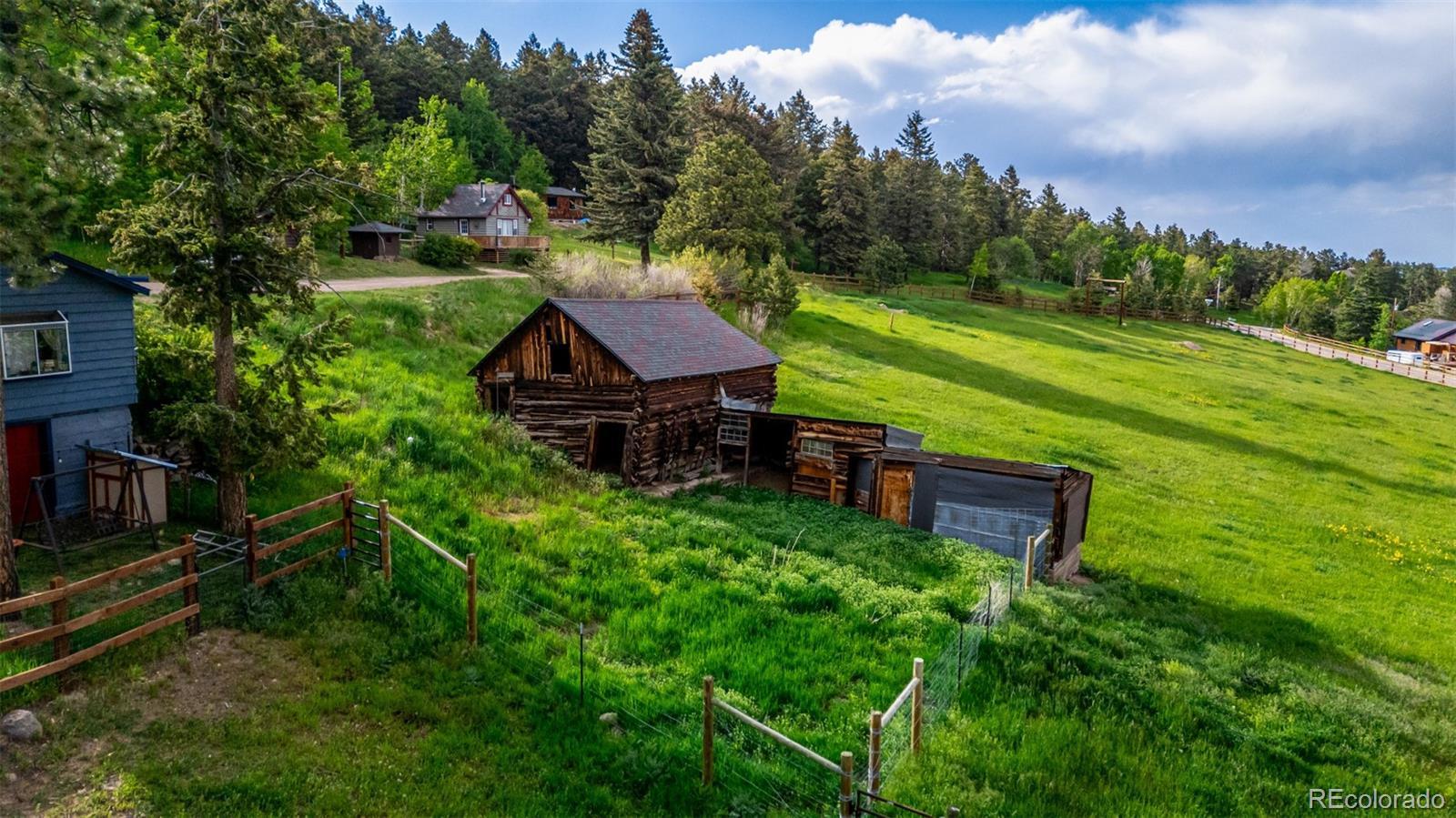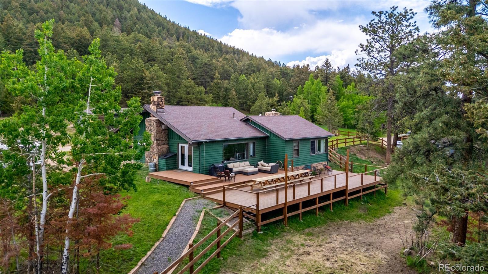 Huge Price Drop!!! A rare and extraordinary opportunity to own a breathtaking mountain equestrian retreat in Morrison, Colorado. Spanning approximately 28 pristine acres, this exceptional property offers a perfect blend of rustic charm, modern amenities, and endless possibilities for both personal enjoyment and investment potential. Notably, Doubleheader Mountain Peak is located exclusively on this property, offering unparalleled privacy and a truly one-of-a-kind setting.At the heart of the ranch is the main residence, a cozy yet spacious two-bedroom, one-bathroom home featuring an open-concept living area with tall ceilings, large windows that frame panoramic mountain and city views, and a tiered deck ideal for outdoor entertaining or peaceful mornings in nature. Adding to its unique appeal, six rustic cabins are thoughtfully positioned throughout the property, each boasting its own distinct layout. These charming one-bedroom, one-bathroom cabins feature warm, inviting living spaces with wood-burning fireplaces, private storage sheds, and scenic views, making them ideal for guest accommodations, rental properties, or a retreat-style getaway. For equestrian enthusiasts, Doubleheader Ranch offers top-tier facilities, including a state-of-the-art horse stable built in 2021. Designed with functionality and safety in mind, the stable includes 5 V-front stalls, ample interior storage with tack room, and covered exterior storage areas. Just outside, three expansive, fenced pastures including a round pen provide plenty of space for horses to roam freely, all while enjoying the fresh mountain air and natural beauty of the surrounding landscape. The ranch also features a community yurt, a tranquil gathering space perfect for events, retreats, or simply unwinding in a serene setting. Private hiking and riding trails wind throughout the property, offering endless opportunities to explore the stunning natural surroundings. https://vimeo.com/1049644900?share=copy