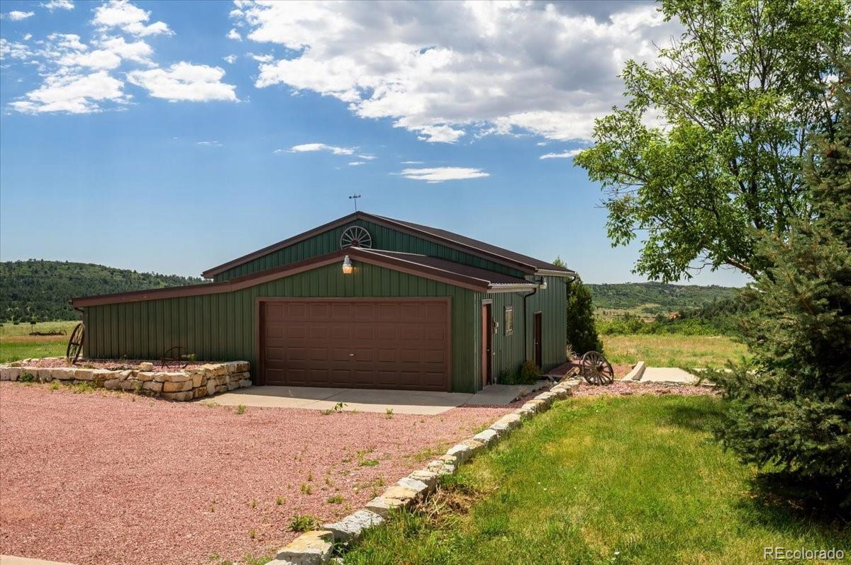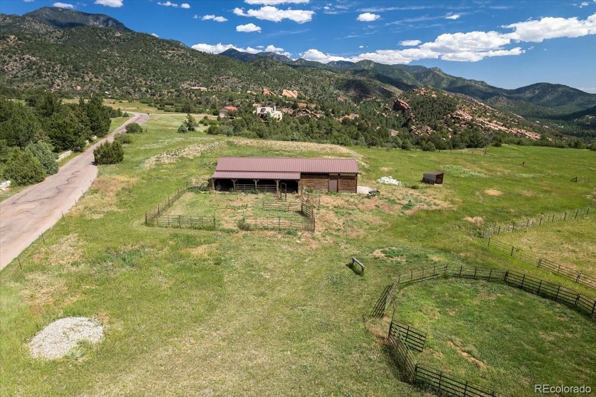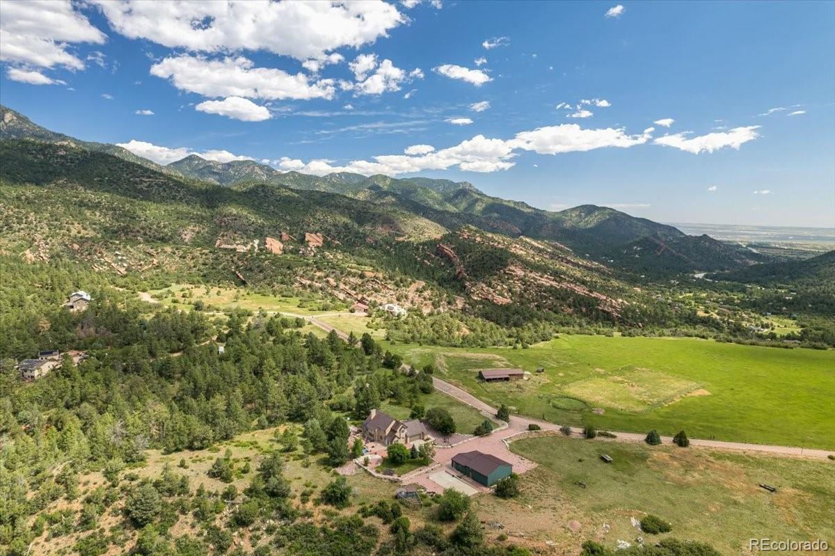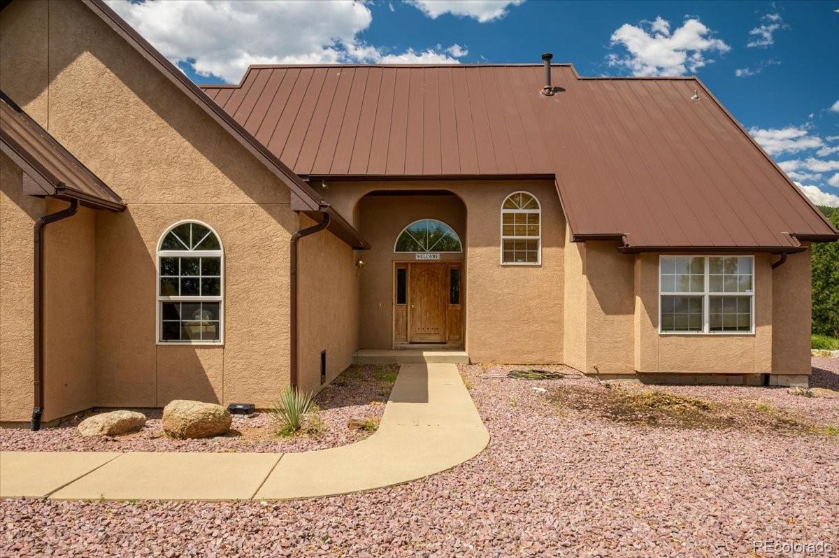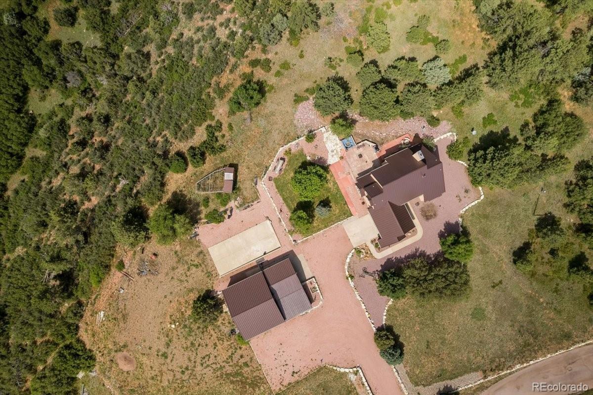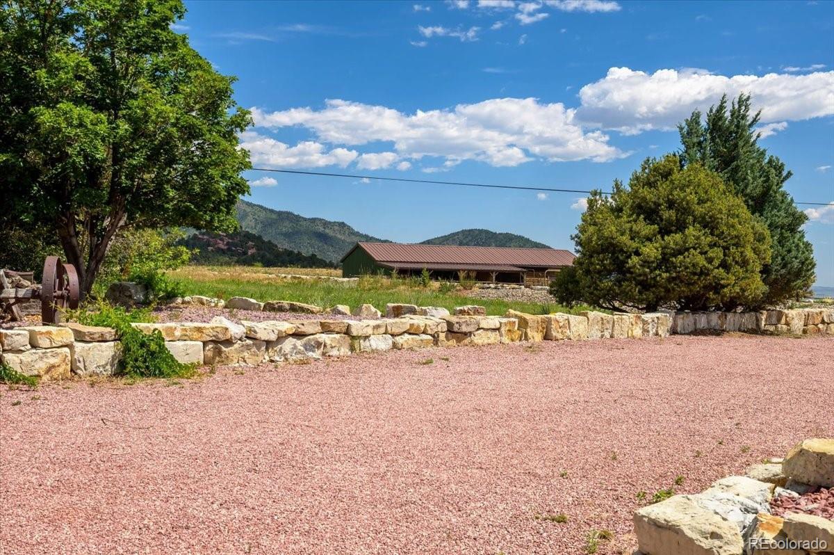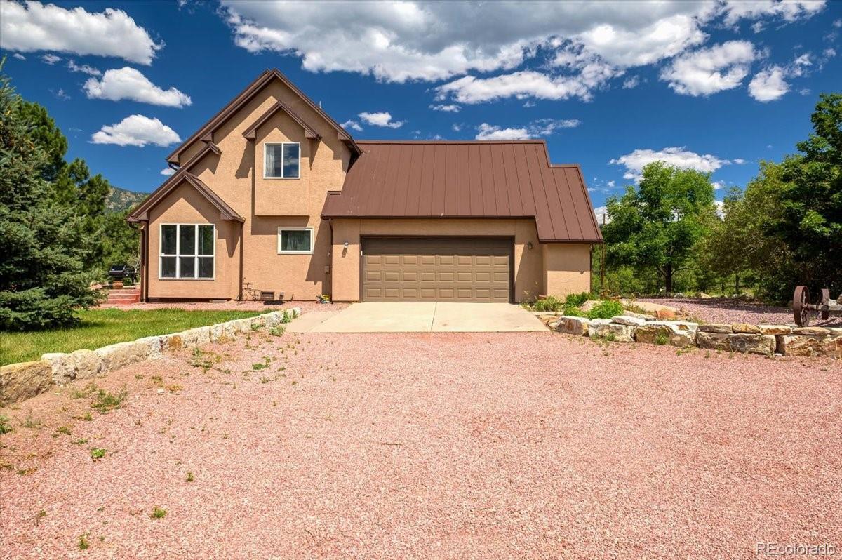 Welcome to your private mountain sanctuary just 15 minutes southwest of Colorado Springs. Nestled in a serene rural mountain community off Highway 115, this 35-acre estate offers the perfect blend of luxury, seclusion, and accessibility—with sweeping 360-degree views of the surrounding mountains, striking rock outcroppings, and endless sky. This custom 4-bedroom, 3-bathroom residence provides over 3,000 square feet of finely crafted living space. Step into the vaulted great room featuring a showstopping stone fireplace and rich hardwood floors, where every window frames a postcard-worthy view. The main level includes 2 spacious bedrooms, one with walk-out access to the expansive patio—ideal for stargazing under the Milky Way or enjoying sunrise coffee with deer, hummingbirds, or the occasional bobcat as your backdrop. The primary suite is a true retreat, complete with dual closet rooms and a luxurious five-piece bath. Every detail has been considered for comfort and elegance, making this home equally suited for full-time living or a peaceful getaway. Equestrian lovers will appreciate the well-appointed horse barn with water, stables, hay barn, round pen, and outdoor riding arena. Hobbyists and adventurers will find endless space in the over-sized detached garage, RV pad with dedicated electricity and cistern, and a large outbuilding for tools, vehicles, or recreational gear. A large chicken coop adds to the charm. The use of ground water from this well is limited to ordinary household purposes inside 3 single family dwellings, fire protection, the watering of poultry, domestic animals, and livestock on a farm or ranch, and the irrigation of not over one ( 1) acre of home gardens and lawns. Despite its tranquil setting, this property is just a short drive from Ft. Carson, Colorado Springs, Florence, and Canon City. With mostly level, cleared land and exceptional natural beauty in every direction, this is more than a home—it’s a lifestyle.