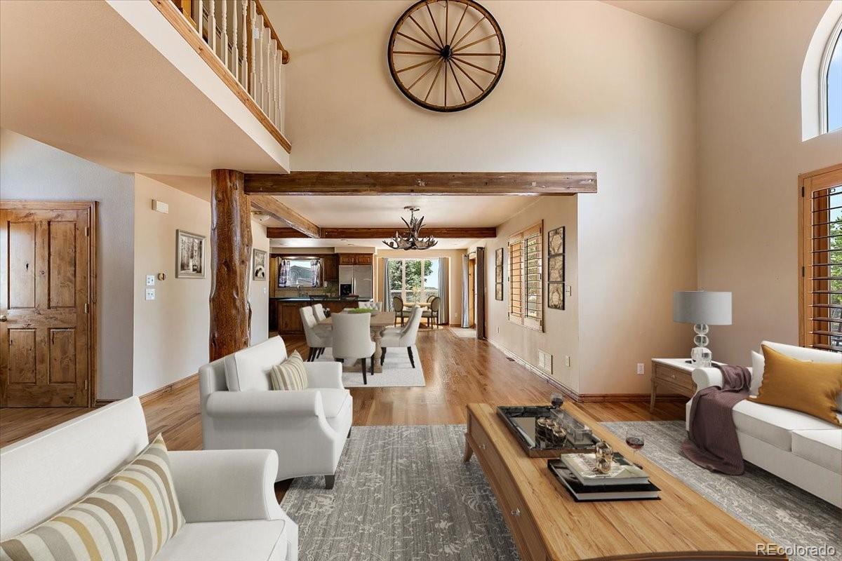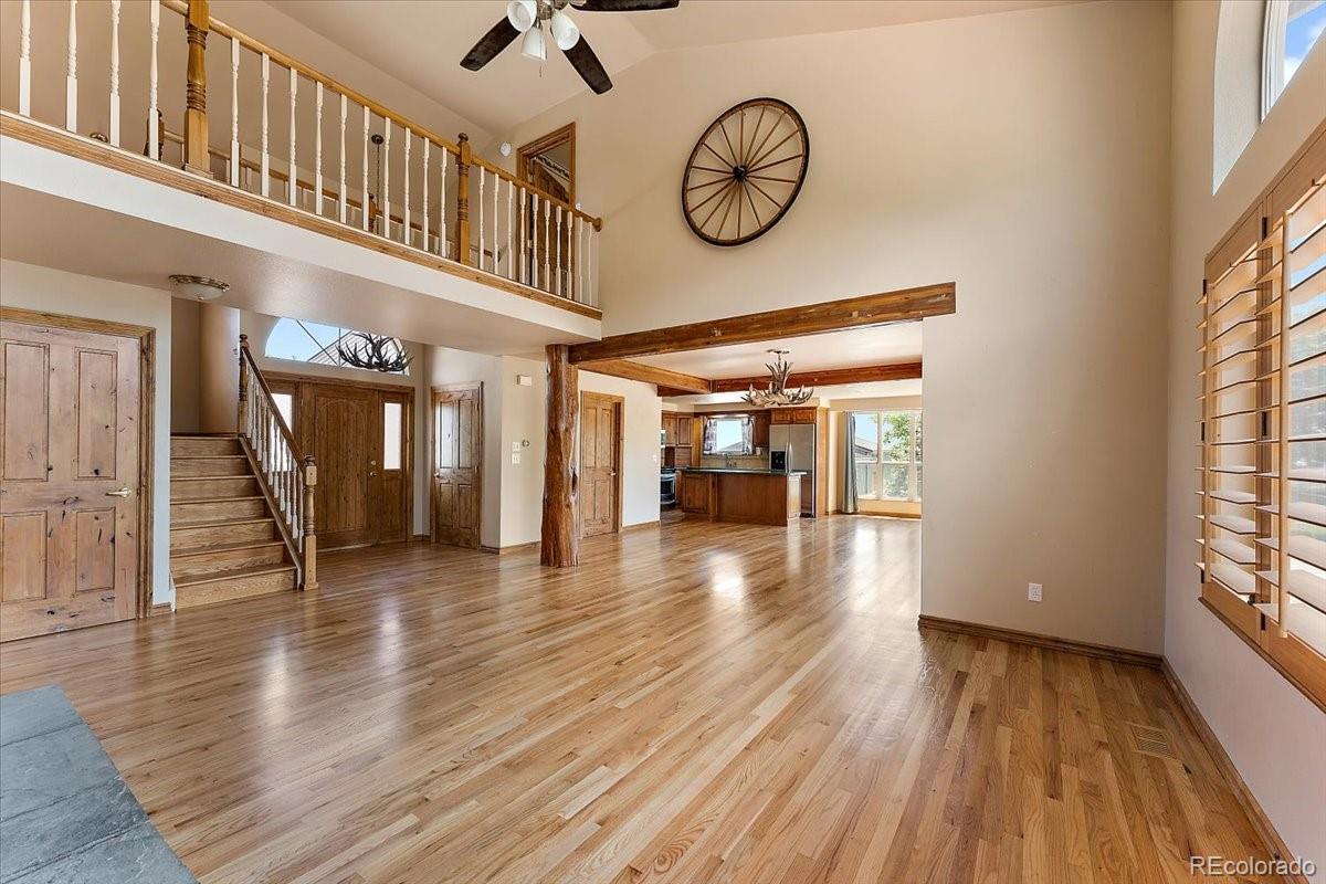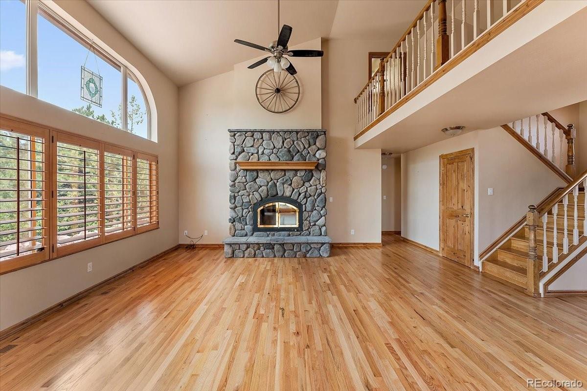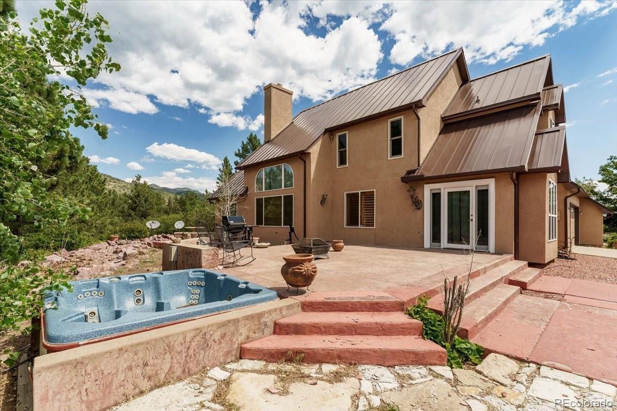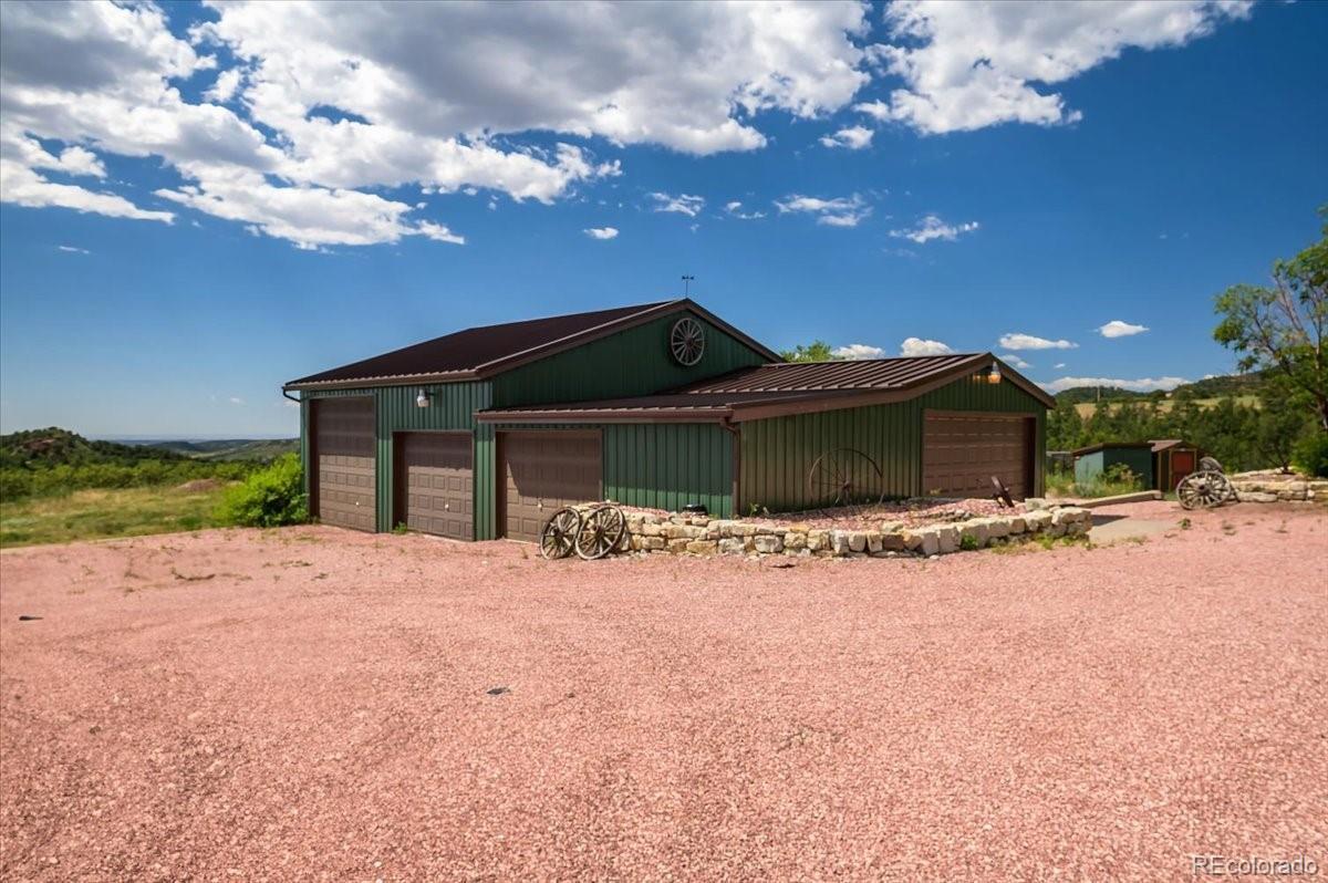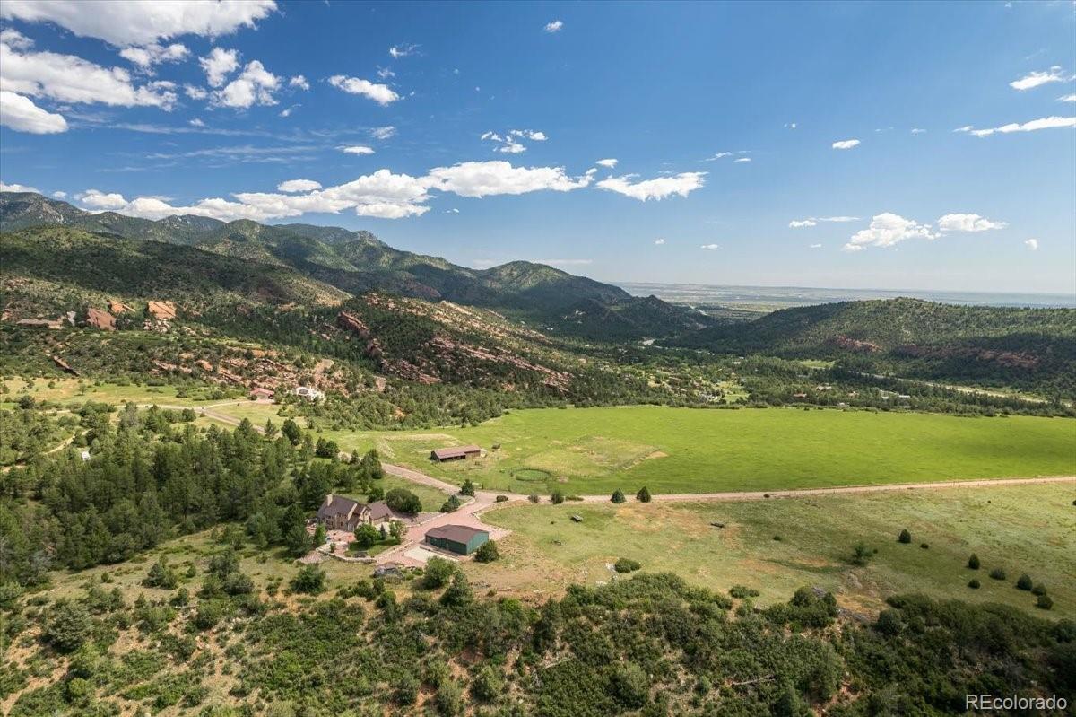 Welcome to your private mountain sanctuary just 15 minutes southwest of Colorado Springs. Nestled in a serene rural mountain community off Highway 115, this 35-acre estate offers the perfect blend of luxury, seclusion, and accessibility—with sweeping 360-degree views of the surrounding mountains, striking rock outcroppings, and endless sky. This custom 4-bedroom, 3-bathroom residence provides over 3,000 square feet of finely crafted living space. Step into the vaulted great room featuring a showstopping stone fireplace and rich hardwood floors, where every window frames a postcard-worthy view. The main level includes 2 spacious bedrooms, one with walk-out access to the expansive patio—ideal for stargazing under the Milky Way or enjoying sunrise coffee with deer, hummingbirds, or the occasional bobcat as your backdrop. The primary suite is a true retreat, complete with dual closet rooms and a luxurious five-piece bath. Every detail has been considered for comfort and elegance, making this home equally suited for full-time living or a peaceful getaway. Equestrian lovers will appreciate the well-appointed horse barn with water, stables, hay barn, round pen, and outdoor riding arena. Hobbyists and adventurers will find endless space in the over-sized detached garage, RV pad with dedicated electricity and cistern, and a large outbuilding for tools, vehicles, or recreational gear. A large chicken coop adds to the charm. The use of ground water from this well is limited to ordinary household purposes inside 3 single family dwellings, fire protection, the watering of poultry, domestic animals, and livestock on a farm or ranch, and the irrigation of not over one ( 1) acre of home gardens and lawns. Despite its tranquil setting, this property is just a short drive from Ft. Carson, Colorado Springs, Florence, and Canon City. With mostly level, cleared land and exceptional natural beauty in every direction, this is more than a home—it’s a lifestyle.