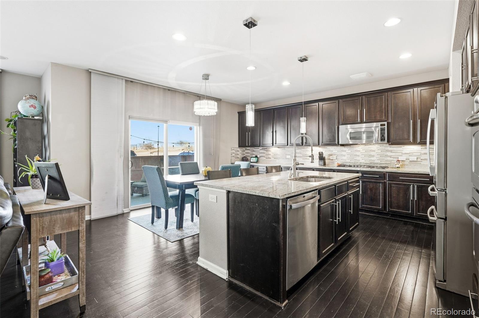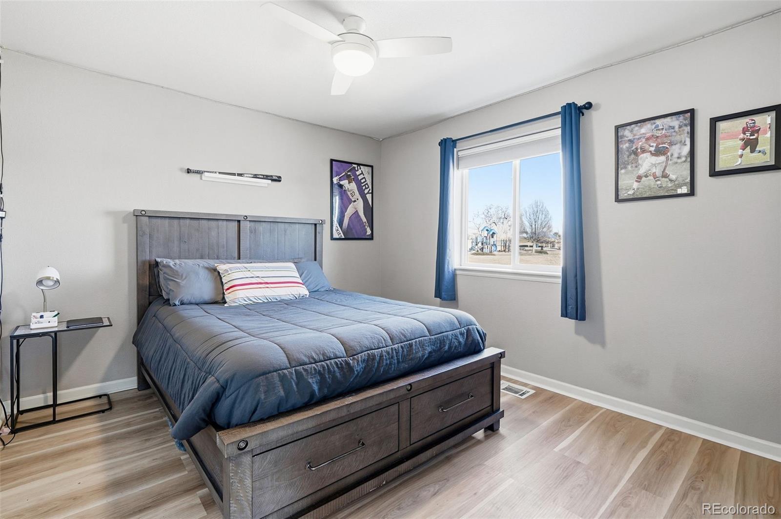 Welcome home to this beautifully maintained two-story residence in the desirable Fallbrook Farms community of Thornton. Built in 2012 and ideally situated on a premium corner lot adjacent to a neighborhood park, this home offers the perfect blend of comfort, convenience, and lifestyle. With four bedrooms, three bathrooms, and an unfinished basement ready for future expansion, the layout is both functional and flexible. Freshly updated with a newly painted exterior, a brand-new roof, new carpet, and updated LVP flooring in the bedrooms, the home feels move-in ready from top to bottom. The main level features rich wood floors, a dedicated home office, and a spacious gourmet kitchen. Highlights include stainless steel appliances, granite countertops, a butler’s pantry, and a wet bar that opens seamlessly to the living and dining areas and walks out to your fenced in backyard. Outdoor enthusiasts will love the immediate access to open green space, a playground, and walking and biking trails that connect to a larger regional trail system. The three-car tandem garage is thoughtfully finished with epoxy flooring, Gladiator storage, and built-in cubbies—for excellent organization. Owned solar power with a transferable warranty adds energy efficiency and long-term savings. Located in the highly regarded Adams 12 Five Star School District, this home is also minutes from golf courses, shopping, and dining at Orchard Town Center, with easy access to I-25 and E-470. Just 15 miles to downtown Denver and approximately 25 miles to DIA, this home truly offers the best of suburban living with city convenience. Don’t miss this wonderful opportunity to settle into a vibrant community and make lasting memories.