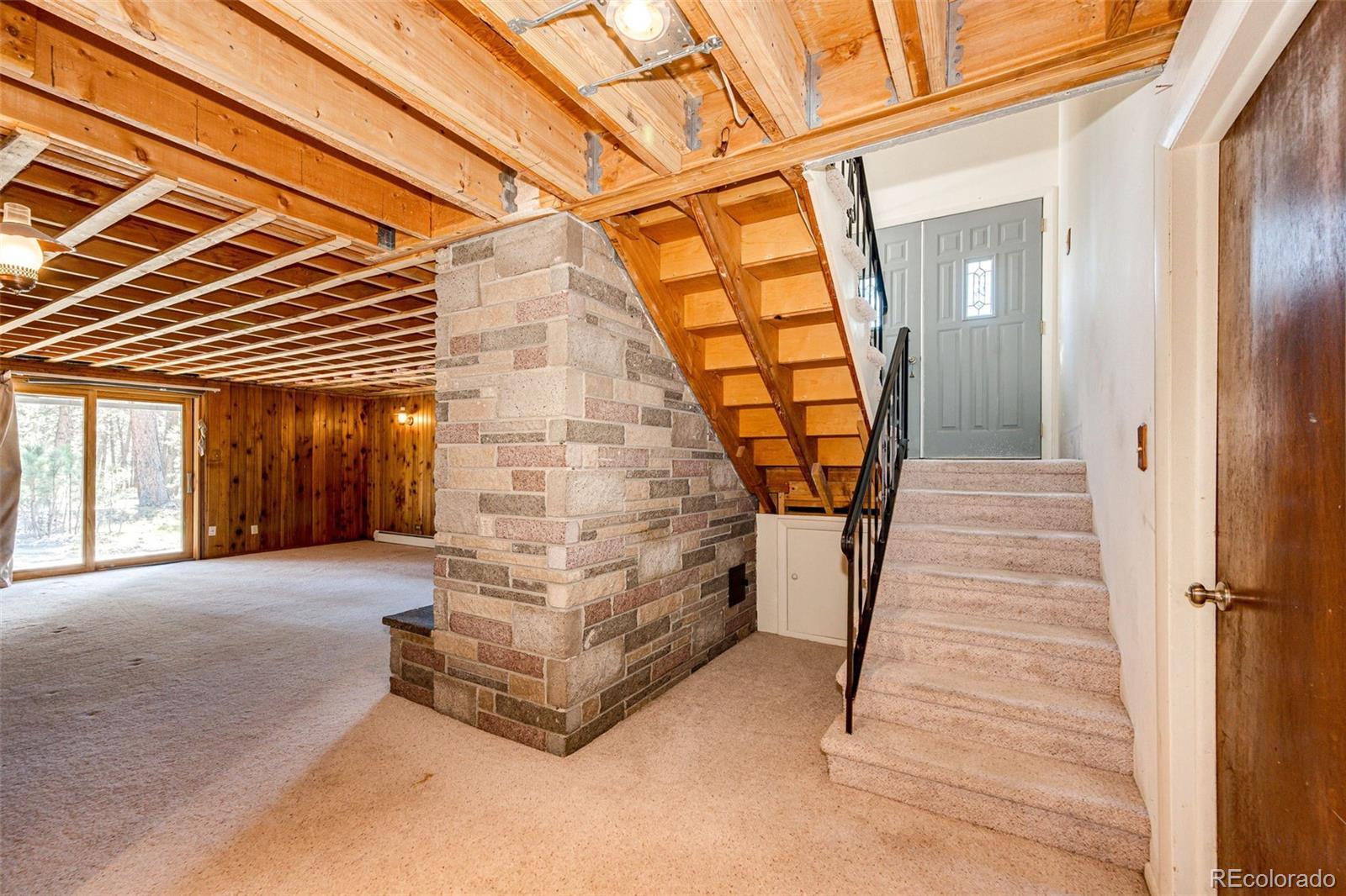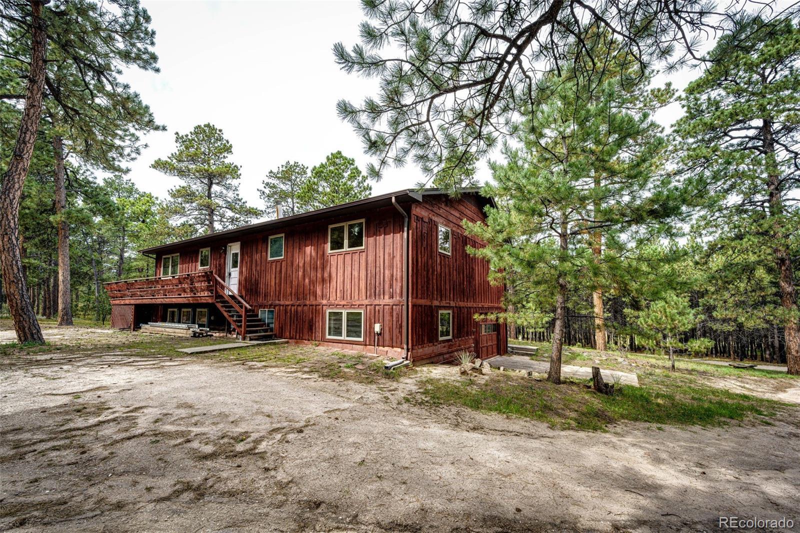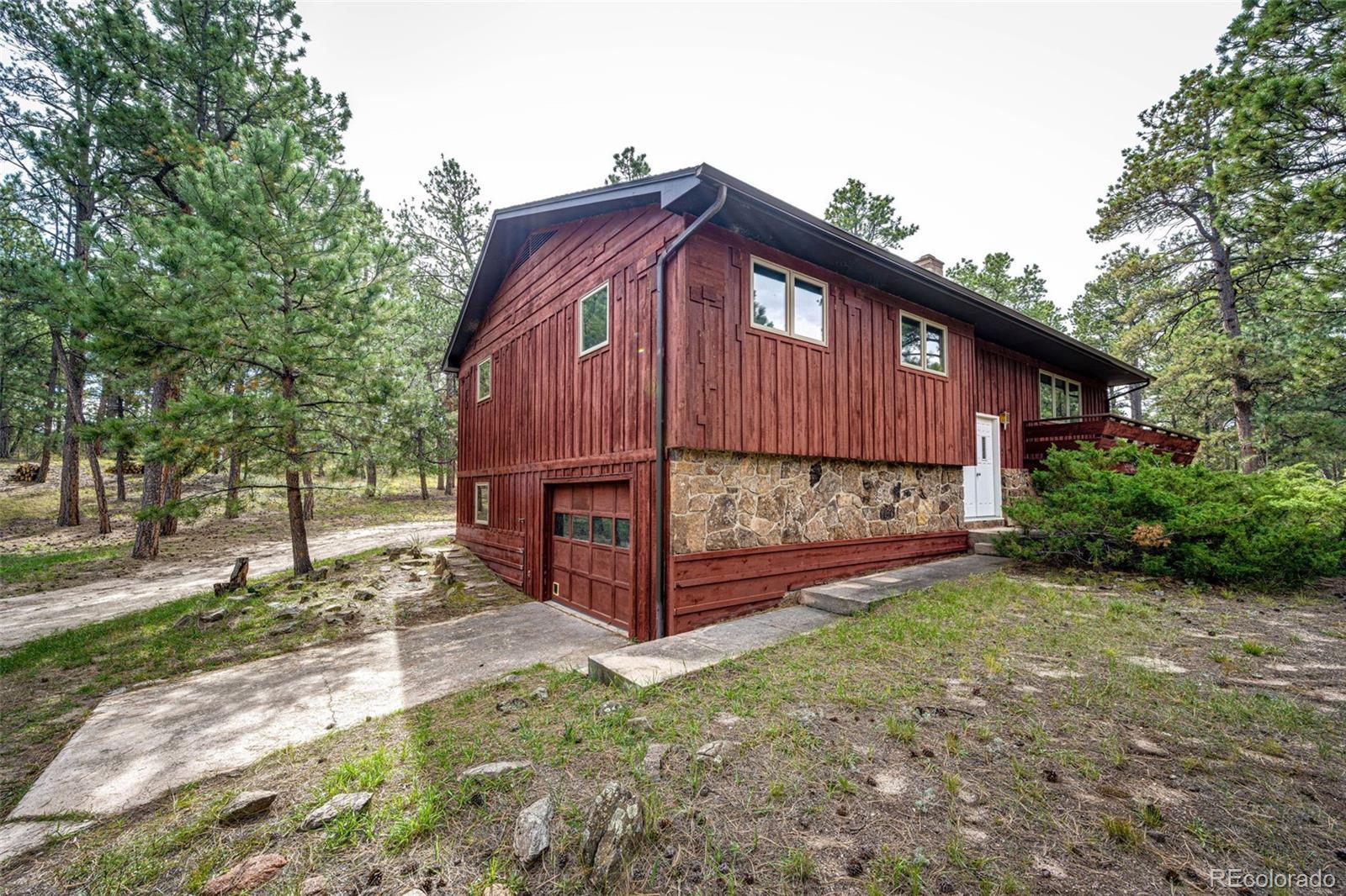 HUGE PRICE REDUCTION! Nestled on over 5 private acres of Ponderosa Pines, this 1965 Bi-level home offers a blend of character, space, and rare opportunity to reimagine a property with your repairs and updating in a sought-after Black Forest location. Entering the home maintains its 1960’s flair featuring a beautiful stone wall wood burning fireplace in the spacious living room connecting to dining room and open kitchen. Down the hall, a traditional layout includes the 2 bedrooms, full bath and plus a primary bedroom and its own three-quarter bath. The walk-out lower level expands the living space with a family room featuring a second stone wood burning fireplace. Laundry is in large utility area with additional roughed in plumbing for a sink, Bedroom (with no closet), three-quarter bathroom and garage access. Step outside to enjoy Colorado living at its best— the property provides privacy, natural beauty, and frequent visits by the local wildlife. Conveniently located near trails, parks, the U.S. Air Force Academy, Garden of the Gods, and a wide variety of shopping, dining, and entertainment, this property offers the perfect balance of seclusion and accessibility. The elderly owner could no longer keep up maintaining the property that has been in the family for generations. Most of windows are newer Pella Windows. Lower Level was in the process of being remodeled and was not all finished i.e. ceiling, flooring, drywall, etc. The Well has been inspected, well pump was replaced and documentation to be provided. Roof has hail damage and need to be replaced, claim is not an option. Septic has been inspected and needs repairs, possible replacement. The home is being sold in As-Is condition and now priced accordingly. This is a great opportunity to own in this area of Black Forest so don't miss out! Information is not guaranteed and it is the Buyers responsibility to verify.
