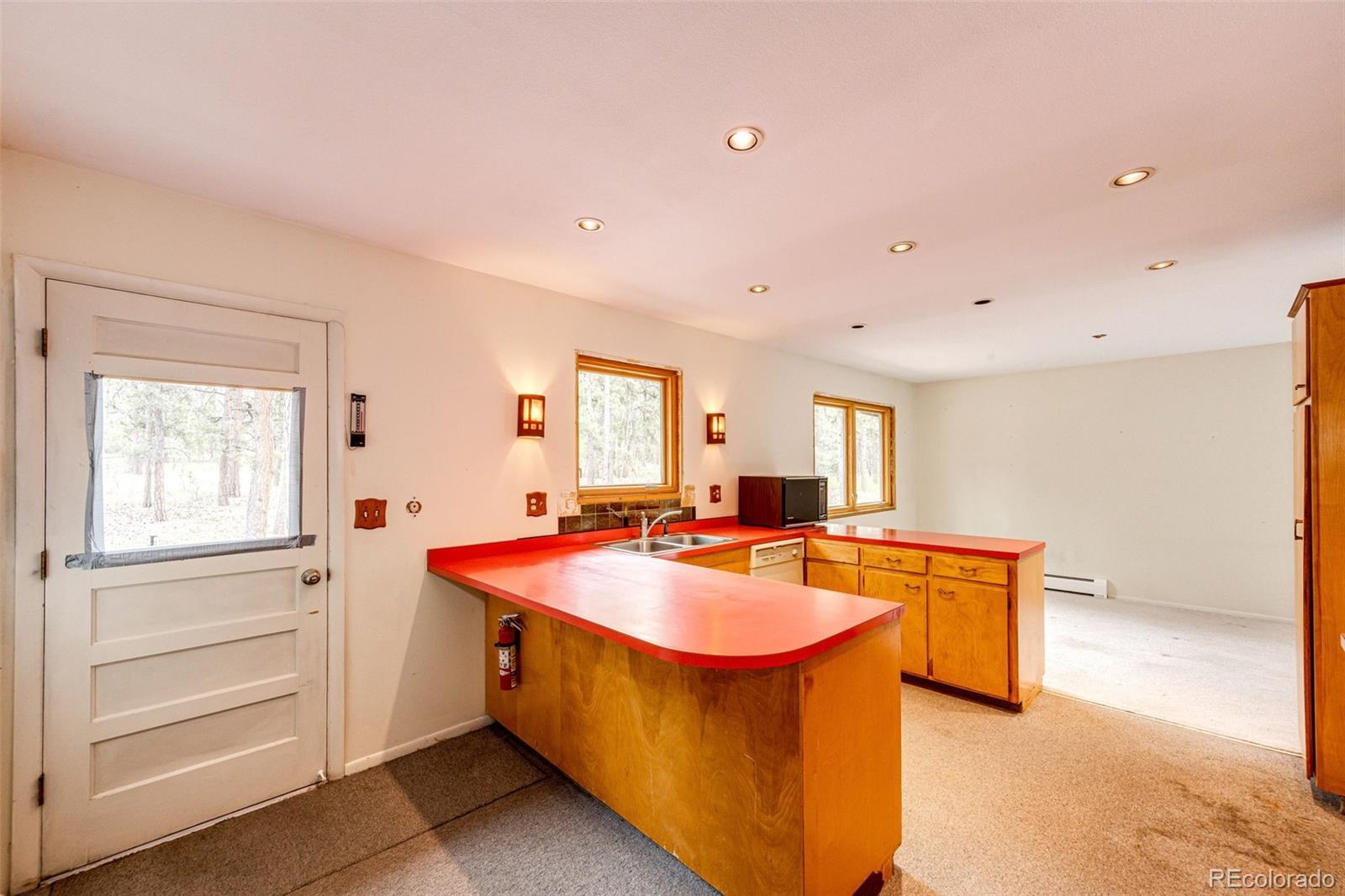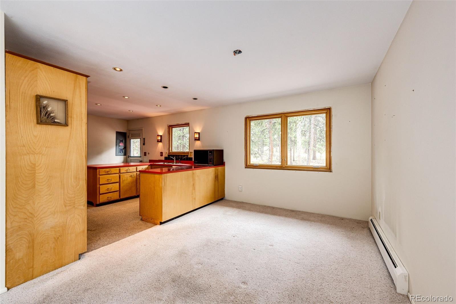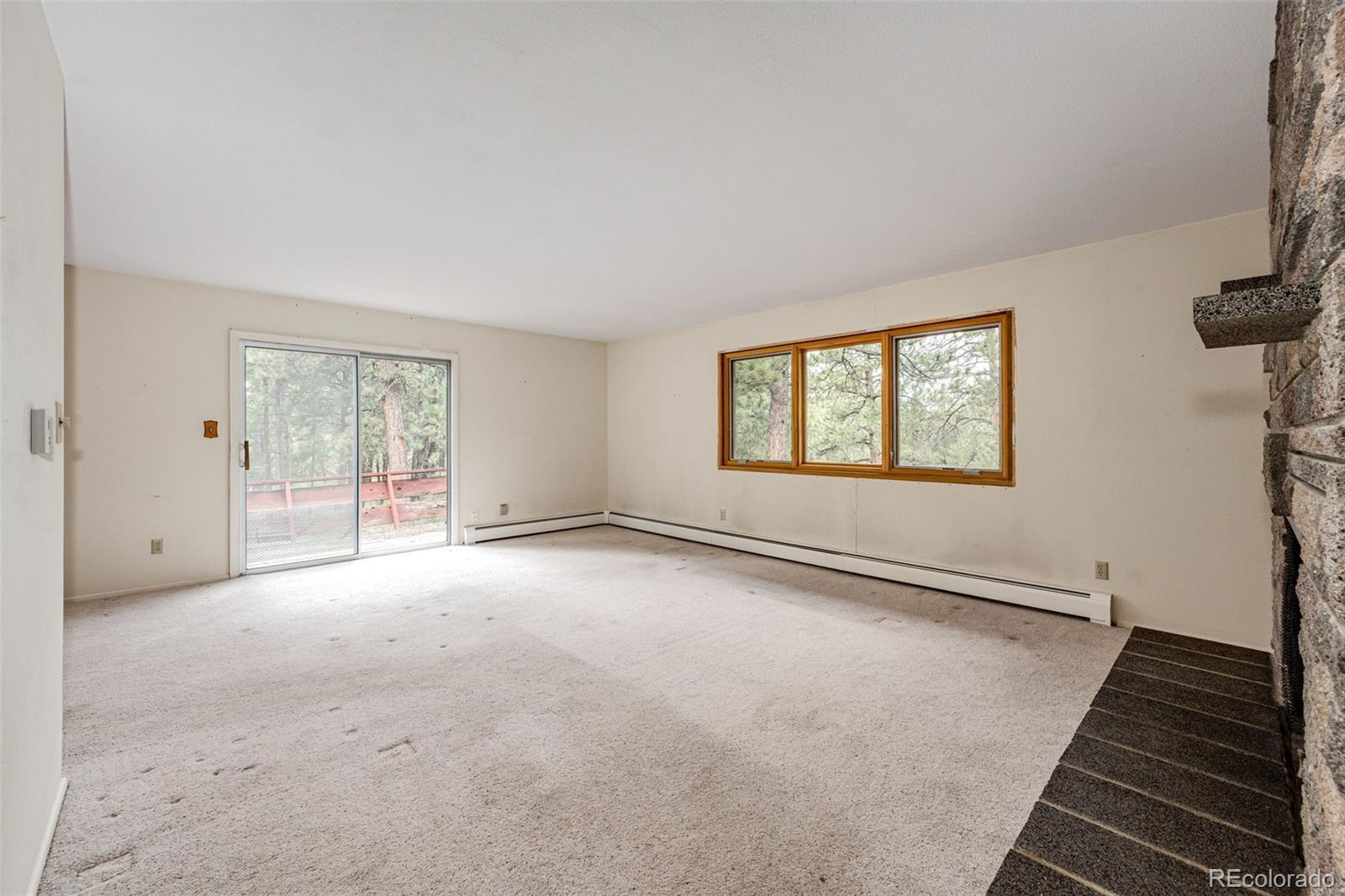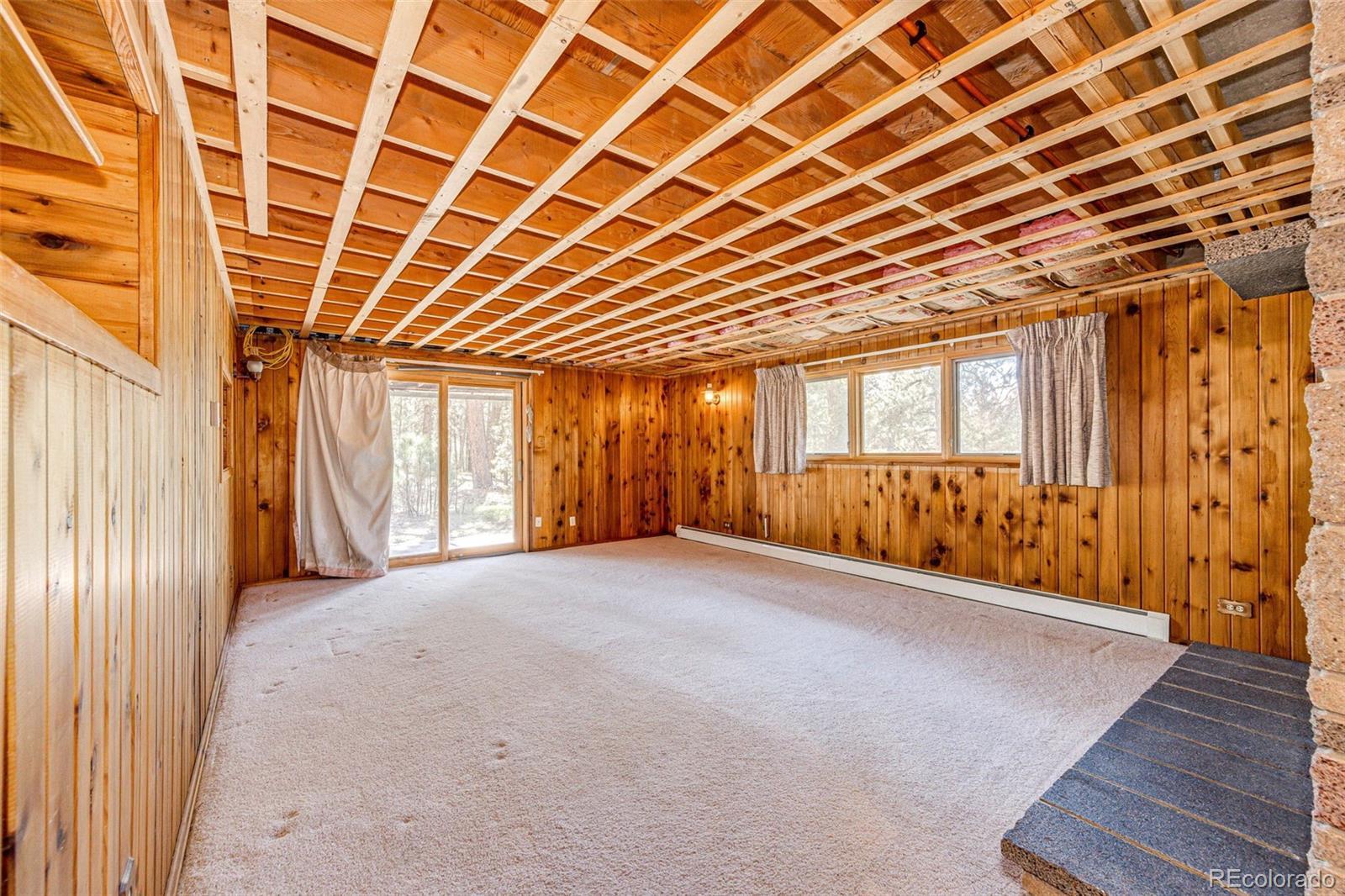 HUGE PRICE REDUCTION! Nestled on over 5 private acres of Ponderosa Pines, this 1965 Bi-level home offers a blend of character, space, and rare opportunity to reimagine a property with your repairs and updating in a sought-after Black Forest location. Entering the home maintains its 1960’s flair featuring a beautiful stone wall wood burning fireplace in the spacious living room connecting to dining room and open kitchen. Down the hall, a traditional layout includes the 2 bedrooms, full bath and plus a primary bedroom and its own three-quarter bath. The walk-out lower level expands the living space with a family room featuring a second stone wood burning fireplace. Laundry is in large utility area with additional roughed in plumbing for a sink, Bedroom (with no closet), three-quarter bathroom and garage access. Step outside to enjoy Colorado living at its best— the property provides privacy, natural beauty, and frequent visits by the local wildlife. Conveniently located near trails, parks, the U.S. Air Force Academy, Garden of the Gods, and a wide variety of shopping, dining, and entertainment, this property offers the perfect balance of seclusion and accessibility. The elderly owner could no longer keep up maintaining the property that has been in the family for generations. Most of windows are newer Pella Windows. Lower Level was in the process of being remodeled and was not all finished i.e. ceiling, flooring, drywall, etc. The Well has been inspected, well pump was replaced and documentation to be provided. Roof has hail damage and need to be replaced, claim is not an option. Septic has been inspected and needs repairs, possible replacement. The home is being sold in As-Is condition and now priced accordingly. This is a great opportunity to own in this area of Black Forest so don't miss out! Information is not guaranteed and it is the Buyers responsibility to verify.