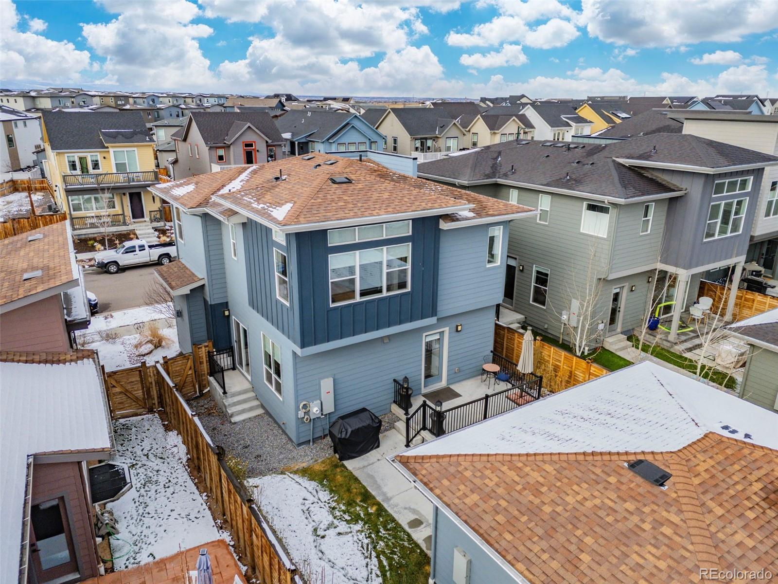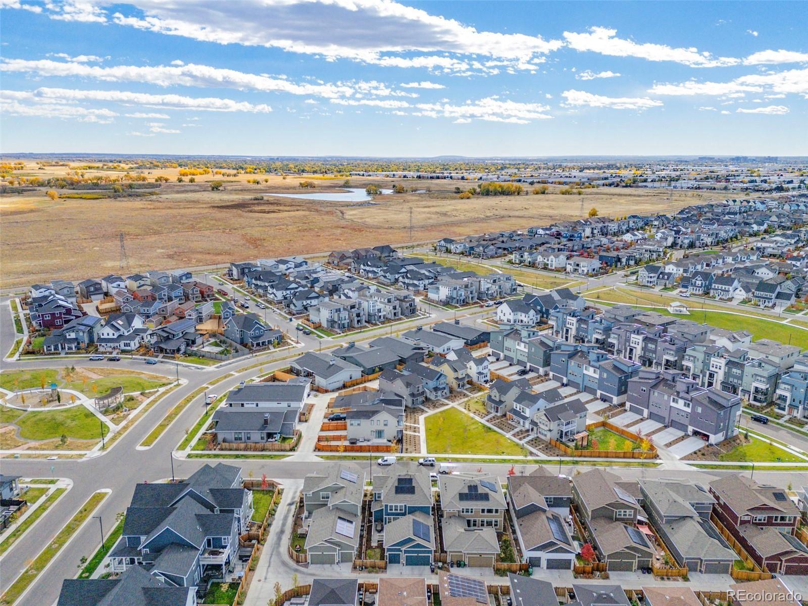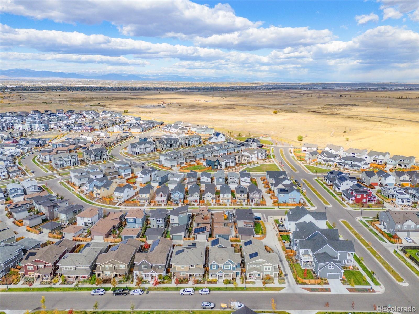 Tucked away on a quiet street in the highly desirable North End of Central Park, this beautifully maintained home offers an ideal combination of comfort, natural light, and an exceptional location. With close proximity to neighborhood parks, the community pool, and miles of open space and trails at the Rocky Mountain Arsenal, the setting balances peaceful residential living with easy access to outdoor amenities and everyday conveniences. The interior spans 2,674 square feet and is thoughtfully designed with both comfort and functionality in mind, offering three bedrooms and two-and-a-half bathrooms. Large windows fill the home with abundant natural light, giving the living spaces an open, bright feel throughout. The well-planned main level features an intuitive layout that flows effortlessly, making it ideal for both everyday living and hosting guests. The kitchen is a true centerpiece, equipped with stainless steel appliances, a gas cooktop, wall oven, range hood, oversized island, and a butler’s pantry providing ample space to cook, gather, and host. The living room feels warm and relaxed, anchored by a fireplace and complemented by tasteful finishes throughout. Upstairs, the spacious bedrooms are thoughtfully laid out, including a primary suite that serves as a peaceful retreat. The ensuite bath features dual vanities, a soaking tub, a separate shower, and abundant natural light. Out back, a private fenced yard and patio offer the perfect setting for summer evenings, weekend barbecues, or quiet moments at home. Professional landscaping and charming curb appeal reflect the pride of ownership evident throughout the property. A full unfinished basement provides excellent storage today and flexibility for future expansion. Immaculately cared for, light-filled, and ideally located, this home presents a wonderful opportunity to enjoy a low-maintenance lifestyle in one of Central Park’s most sought-after neighborhoods.