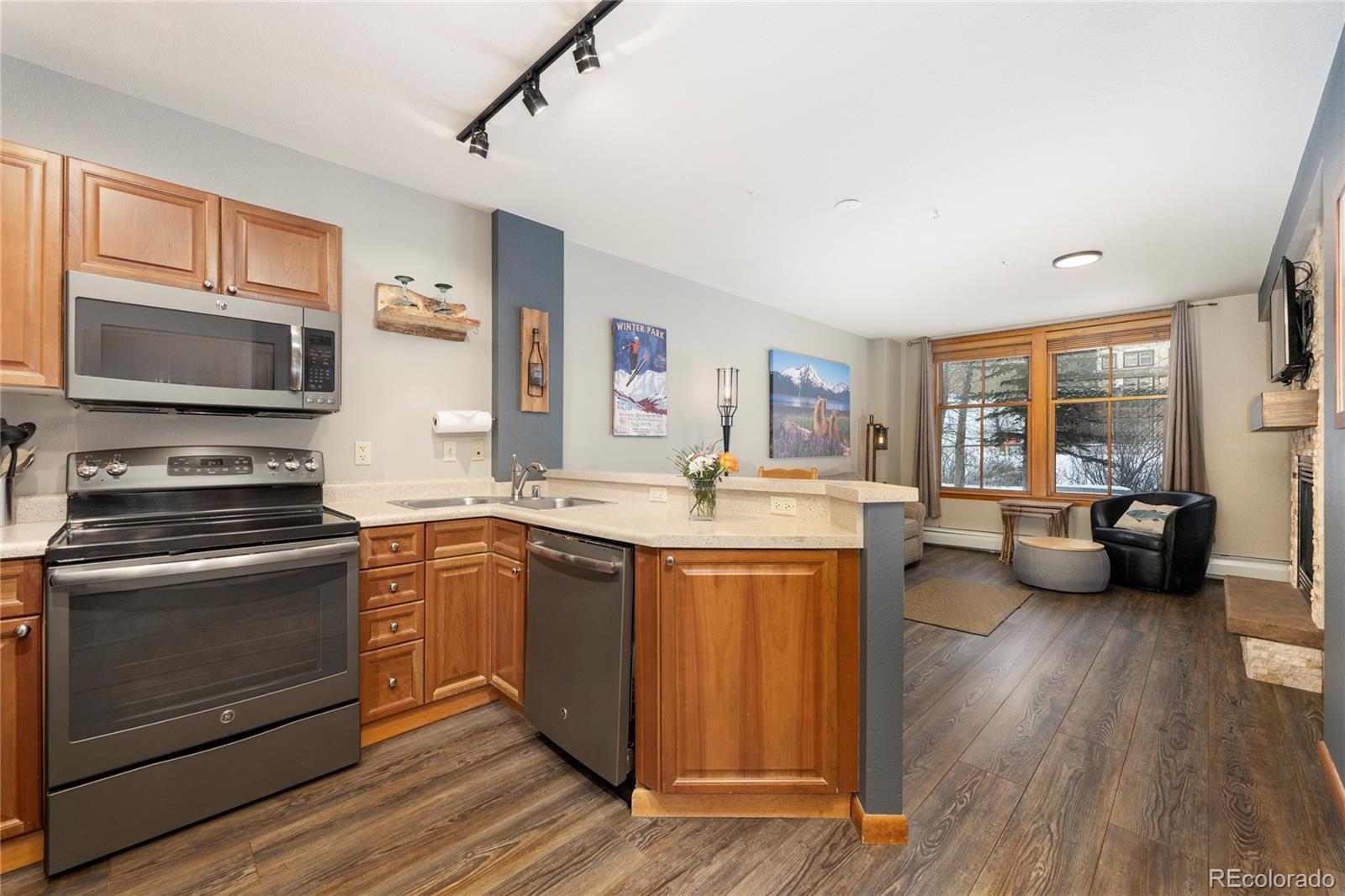 Rare Ski-In/Ski-Out 1-Bedroom Riverfront Gem! One of only 7 coveted units with direct outdoor access in the Riverside bldg - step straight onto the green space and hear the soothing Fraser River all summer long. Enjoy true indoor-outdoor living without hallways, just two doors from the hot tubs and fitness center entrance. Recent updates include brand-new LVT flooring (2024), upgraded fireplace tile surround, new flat-screen TV, fresh linens & decor, newer sleeper sofa, updated trim, and professional painting throughout. Bedroom offers a lockable owner closet. ZML amenities: exterior hot tubs, fitness center, underground garage parking, front desk/lobby, and use of 2 ski lockers. HOA dues include all utilities, community insurance, and exterior maintenance. Strong rental history. True ski-in/ski-out convenience meets riverfront serenity in this unique retreat!