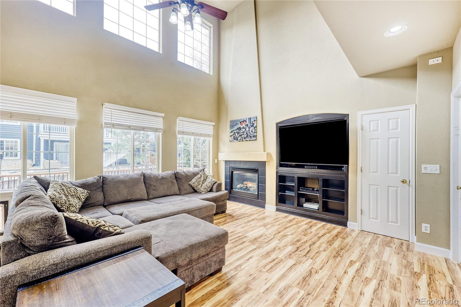 Welcome to this spacious 4-bedroom, 4-bathroom 2 story home in The Meadows with newly installed LVP Flooring and Baseboards, featuring an extra large 3-car tandem garage, expansive backyard deck, and a partially finished basement with a full bath. Located just a short, accessible distance from scenic trails, this home offers easy access to Butterfield Park, Native Legend Open Space, Meadow View Elementary, Paintbrush Park ,and The Grange Clubhouse and Pools to name a few. The main level offers Brand New LVP Flooring and baseboards in the dining, kitchen, laundry, and bathroom, an open-concept kitchen and living area with a gas fireplace, kitchen island, pantry, ample cabinet and counter space, and all appliances included. You'll also find tall ceilings and an oversized formal dining room, with space for a large table and additional seating area, and a gorgeous double sided staircase. Upstairs, the expansive primary suite includes dual walk-in closets and a 5-piece en suite bath with dual sinks, soaking tub, walk-in shower, and Brand New LVP Flooring baseboards. Three additional bedrooms share a full bath with a tub/shower combo and Brand New LVP Flooring and baseboards. Connecting two of the upstairs bedrooms is a unique hidden passageway that leads to a small loft area—accessed by lifting a bookshelf in one room or opening a secret door in another. It's a delightful space for imaginative play or creative use. The basement includes a finished bathroom with walk-in shower, and the remaining space is already framed, offering easy potential for future finishing. The backyard features a spacious deck ideal for entertaining and a sizable lawn perfect for recreation, gardening, or pets. Included with your HOA fees, The Meadows Neighborhood Community features 2 Pools (The Grange and Taft House), parks, playgrounds, and trails. Don’t miss your opportunity to secure this beautiful home in a sought-after location.