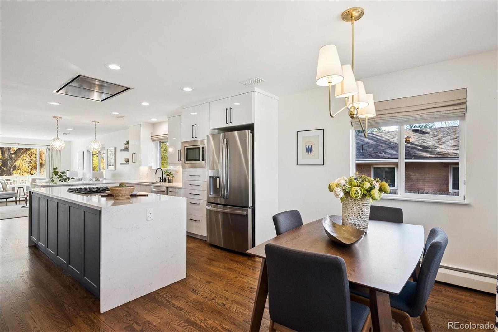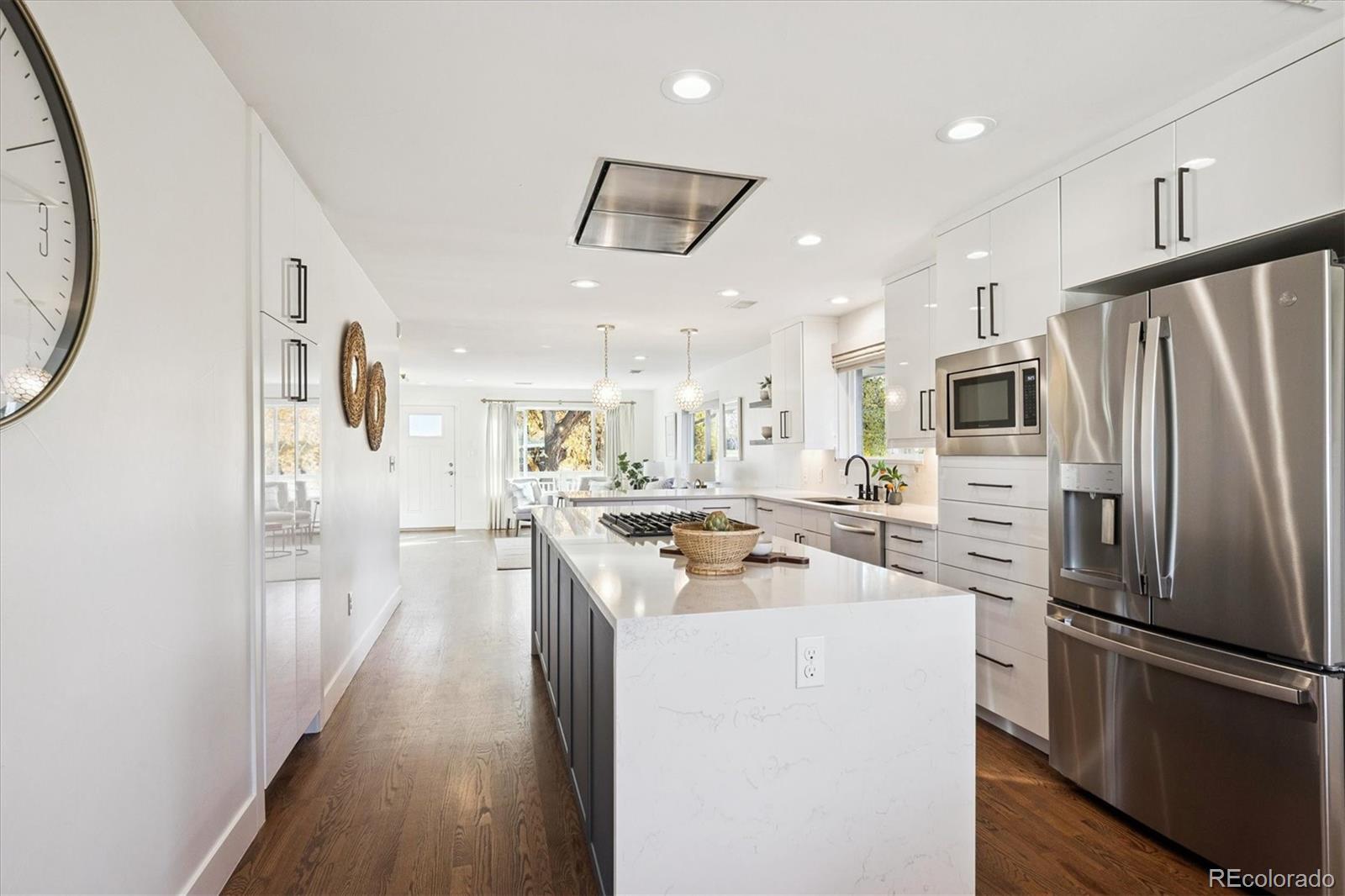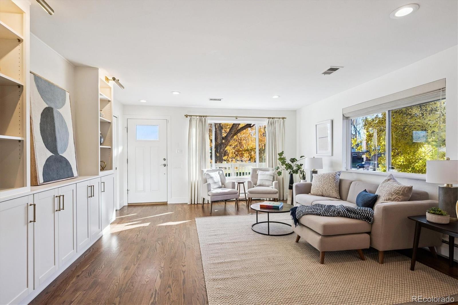 Welcome to 183 S Kearney Street, a beautifully renovated brick home in Denver’s highly coveted Crestmoor neighborhood—directly across from scenic Crestmoor Park. This stunning 3-bedroom, 3-bathroom residence combines timeless charm with modern luxury. Step inside to discover a bright, open floor plan featuring a spacious living room that flows seamlessly into a gourmet, state-of-the-art kitchen with abundant storage, premium appliances, and a sunny dining area perfect for entertaining. The primary suite is a serene retreat, complete with a custom walk-in closet and a luxurious ensuite bath featuring heated floors and a double vanity. A secondary main-floor bedroom with built-ins and a beautifully updated ¾ bath completes the main level. The finished lower level offers an expansive recreation or family room, new carpet throughout, a private office with custom built-ins, a third bedroom with egress, and a full bathroom. A spacious laundry room with new washer and dryer, plus ample storage, adds convenience and functionality. Step outside to your private backyard oasis, complete with a built-in grill and fire pit area—perfect for outdoor gatherings. Enjoy the best of Crestmoor — The Park offers playgrounds, tennis courts, and miles of walking paths. Centrally located near Cherry Creek, Lowry, and the shops and restaurants on Holly Street, this home truly has it all: style, comfort, and an unbeatable location. The Staging Furniture Has Been Removed from the Property.