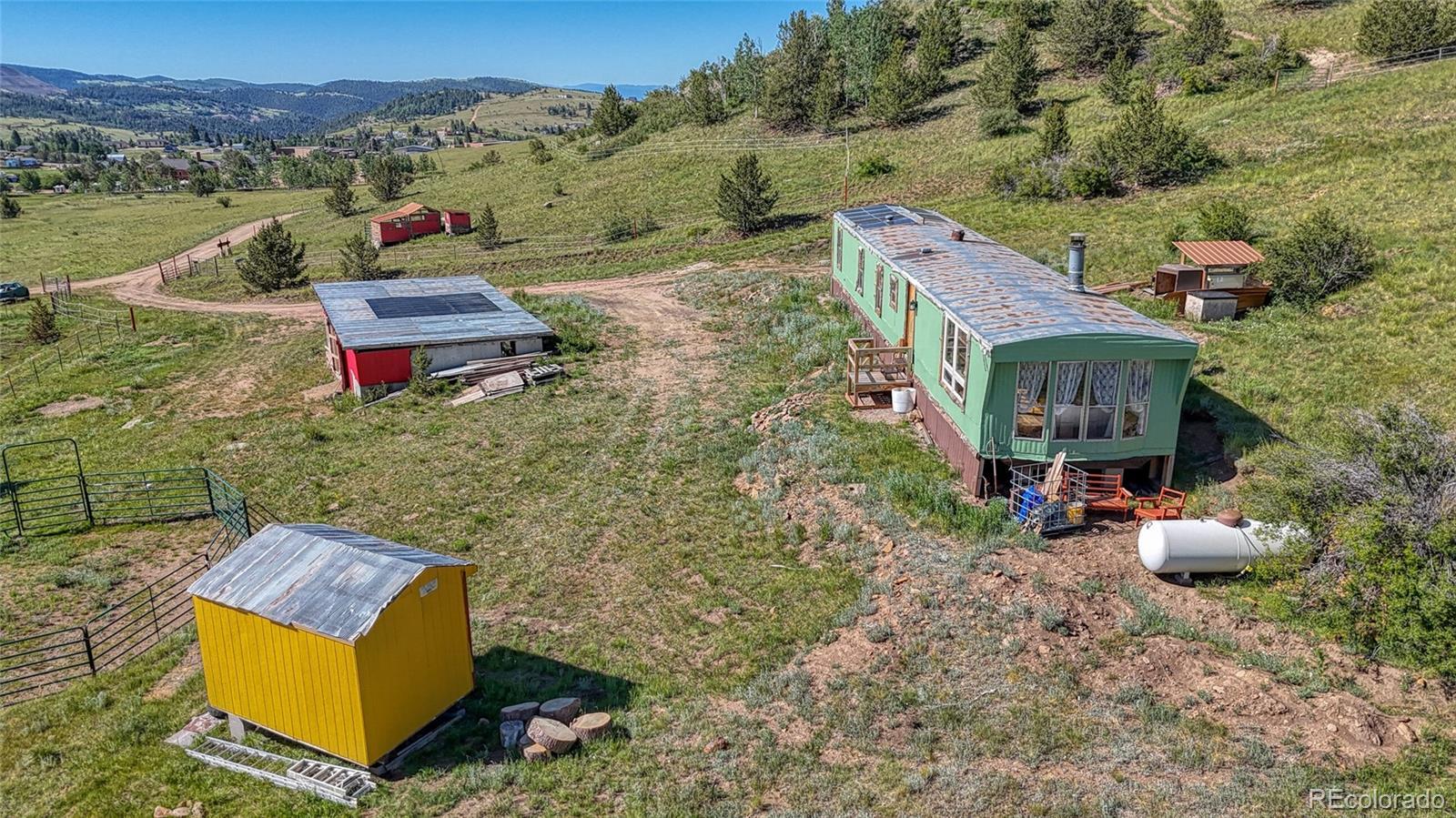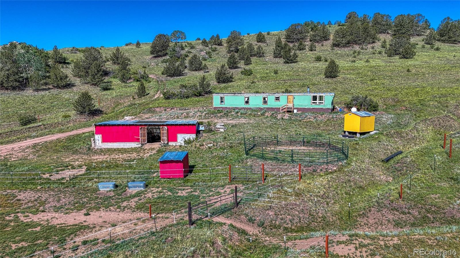 Charming Off-Grid Horse Property on 5.36 Acres Escape to your own slice of Colorado paradise with this bright and colorful 3-bedroom, 1-bath single-wide home, nestled on 5.36 acres of usable land. Fully off-grid, this charming residence is powered by solar, warmed by a cozy woodburning stove, and supported by a household-use well and propane for ultimate self-sufficiency. Perfect for horse lovers, this property comes ready with electric fencing, corrals, indoor barn that comfortably accommodates three stalls. A loafing shed, storage shed, and ample open space offer room for grazing, equipment, and additional animals. An optional land lease for even more acreage is available to the new buyer, creating a rare opportunity for expansion. With no covenants and a convenient location just outside of Cripple Creek’s historic district, this peaceful and private retreat is a rare find. Enjoy starry skies, mountain evenings, and the freedom of true Colorado mountain living.