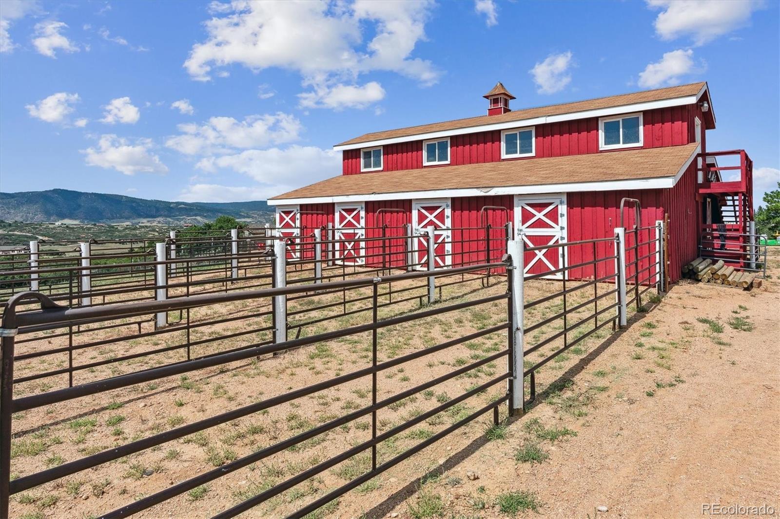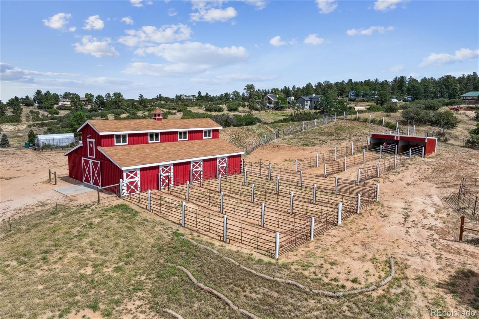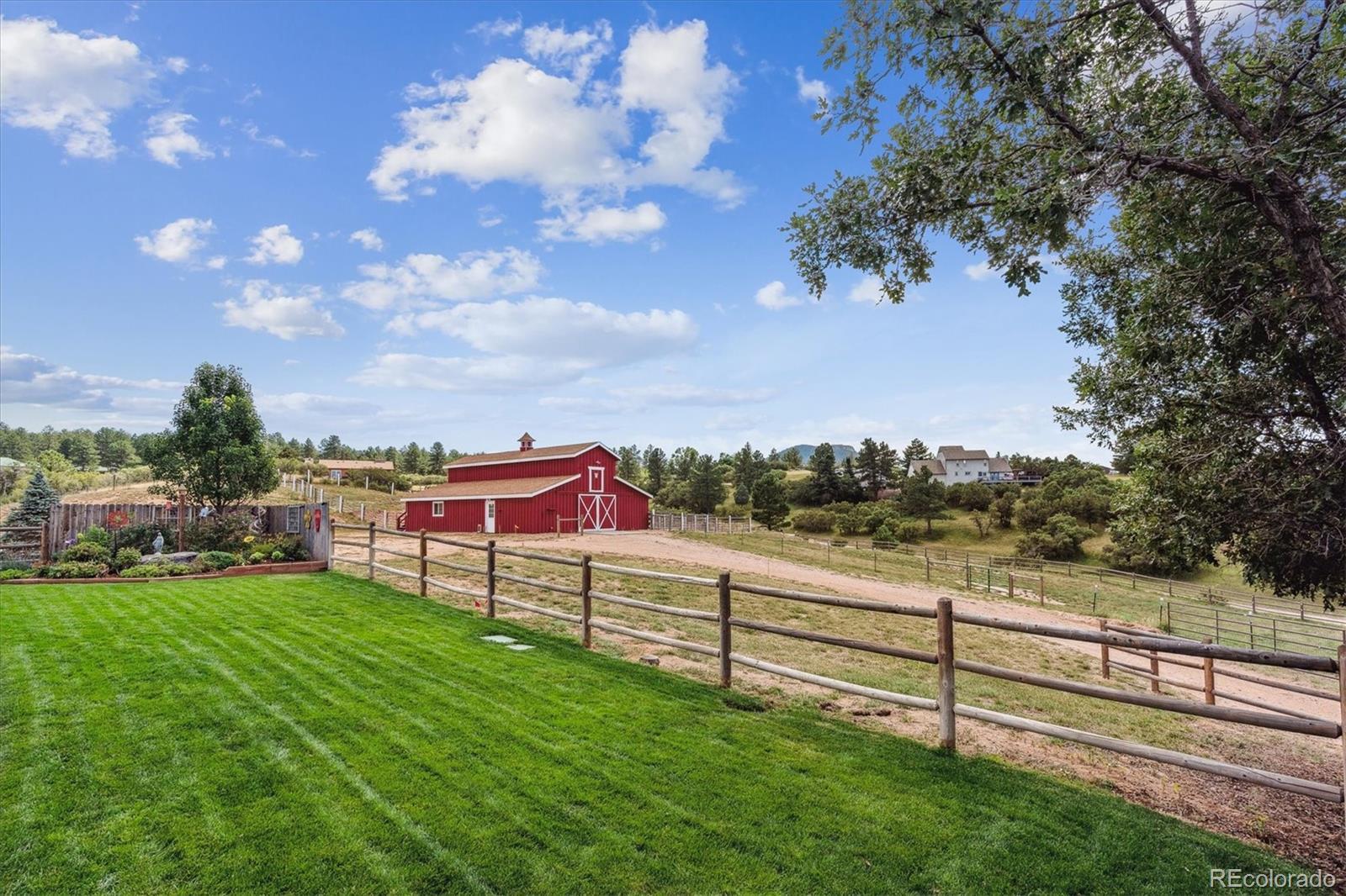 Experience Colorado living at its finest with this beautifully remodeled 3-bedroom, 2-bathroom home set on 5 pristine acres with breathtaking mountain views. This property perfectly blends modern comfort with country charm—an ideal haven for horse lovers and those seeking space, serenity, and style. Step inside to find a fully updated interior featuring a designer kitchen with stainless steel appliances, double ovens, custom cabinetry, and double wine refrigerators—ideal for entertaining. The living room showcases vaulted ceilings, plantation shutters, and panoramic views that bring the outdoors in. Upstairs, the primary suite offers a true retreat with hardwood floors, custom built-in cabinets, and a private entrance to the luxurious primary bath, complete with heated floors, concrete countertops, and a walk-in shower. The lower level includes a cozy family room with a gas fireplace and sliding glass doors leading to one of the home’s many outdoor decks—perfect for relaxing or entertaining. The laundry room is located in a versatile flex space, ideal for use as a home office, gym, or additional bedroom. Every detail has been thoughtfully renovated for today’s lifestyle while maintaining the warmth and character of country living. Outside, the property is fully fenced and ready for horses now. The impressive 2 story 2357 sq ft. insulated horse barn included 5 stalls with 12'x48' outside runs, a conveyor belt system for easy hay transport to the haymow, 1/4-bathroom, office and 2 additional 12'x12' portable shelters with 48' runs. Expansive pasture areas provide ample room for grazing and riding—all surrounded by sweeping mountain vistas. Whether you’re looking for a peaceful retreat, a turnkey equestrian property, or a combination of both, this home offers it all—privacy, functionality, and unmatched views in one exceptional package. For more photos, please go to: https://listings.mediamaxphotography.com/2226-park-ridge-ln