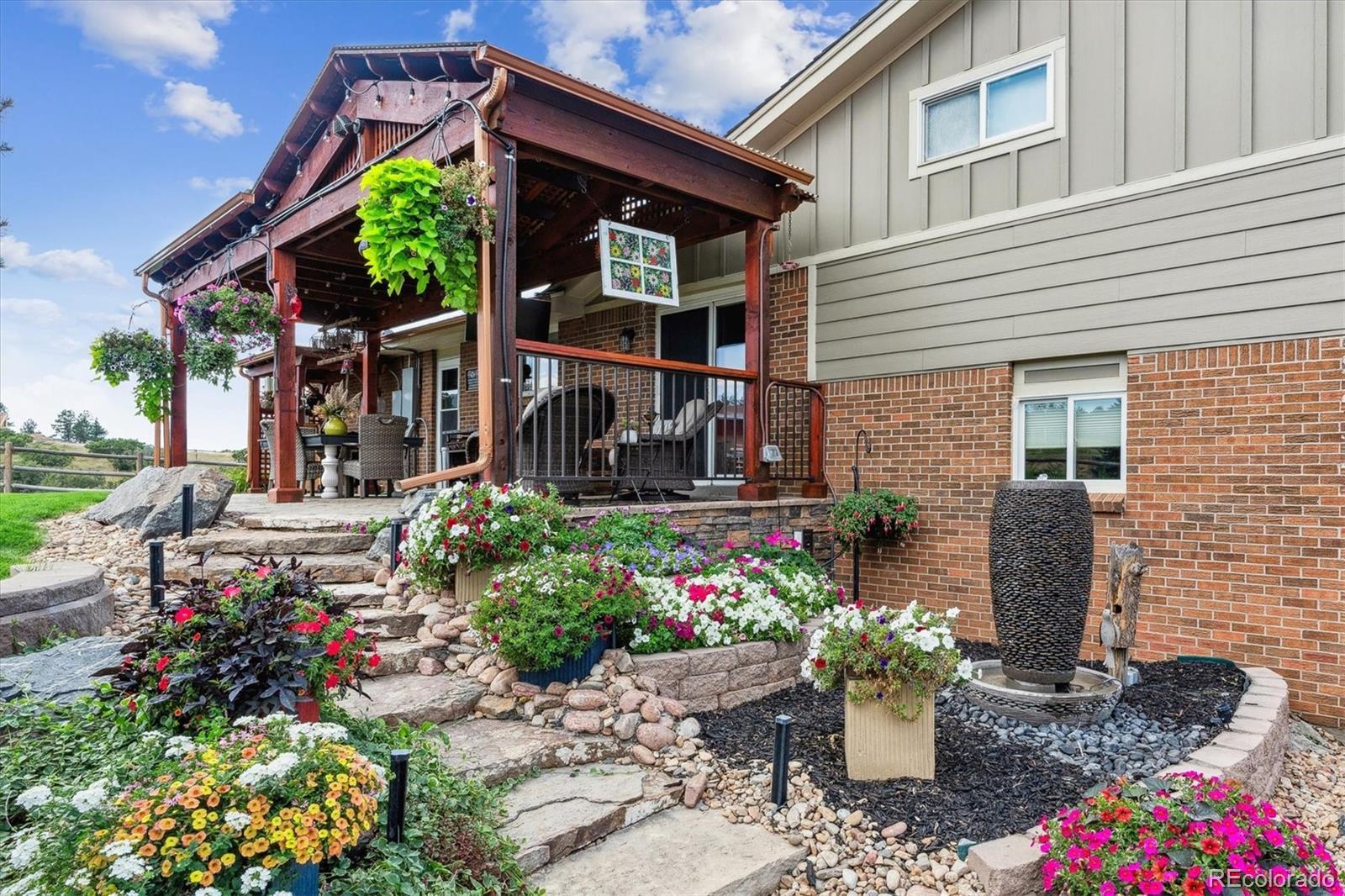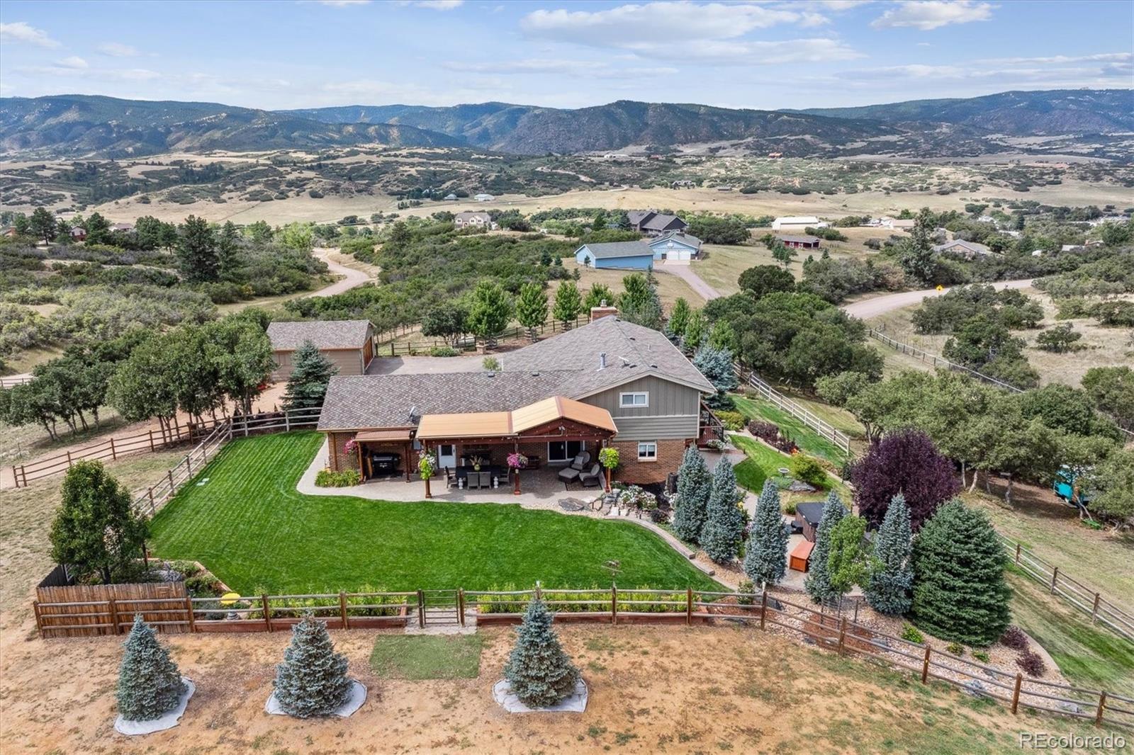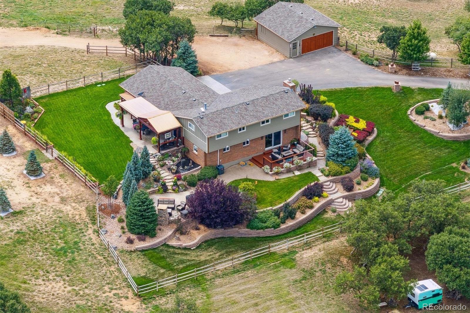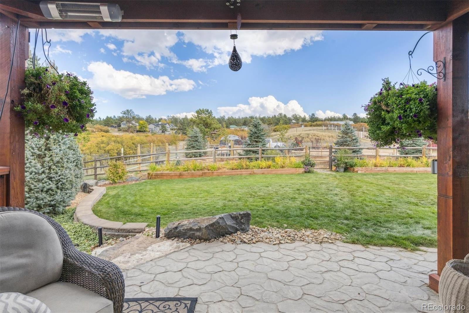 Experience Colorado living at its finest with this beautifully remodeled 3-bedroom, 2-bathroom home set on 5 pristine acres with breathtaking mountain views. This property perfectly blends modern comfort with country charm—an ideal haven for horse lovers and those seeking space, serenity, and style. Step inside to find a fully updated interior featuring a designer kitchen with stainless steel appliances, double ovens, custom cabinetry, and double wine refrigerators—ideal for entertaining. The living room showcases vaulted ceilings, plantation shutters, and panoramic views that bring the outdoors in. Upstairs, the primary suite offers a true retreat with hardwood floors, custom built-in cabinets, and a private entrance to the luxurious primary bath, complete with heated floors, concrete countertops, and a walk-in shower. The lower level includes a cozy family room with a gas fireplace and sliding glass doors leading to one of the home’s many outdoor decks—perfect for relaxing or entertaining. The laundry room is located in a versatile flex space, ideal for use as a home office, gym, or additional bedroom. Every detail has been thoughtfully renovated for today’s lifestyle while maintaining the warmth and character of country living. Outside, the property is fully fenced and ready for horses now. The impressive 2 story 2357 sq ft. insulated horse barn included 5 stalls with 12'x48' outside runs, a conveyor belt system for easy hay transport to the haymow, 1/4-bathroom, office and 2 additional 12'x12' portable shelters with 48' runs. Expansive pasture areas provide ample room for grazing and riding—all surrounded by sweeping mountain vistas. Whether you’re looking for a peaceful retreat, a turnkey equestrian property, or a combination of both, this home offers it all—privacy, functionality, and unmatched views in one exceptional package. For more photos, please go to: https://listings.mediamaxphotography.com/2226-park-ridge-ln