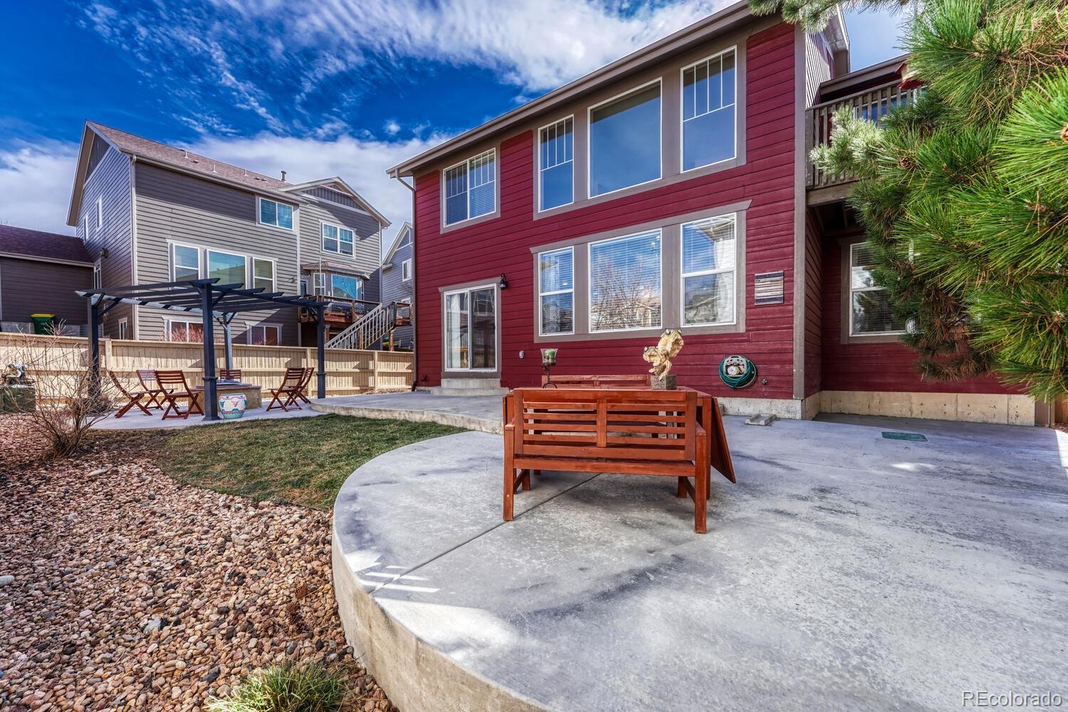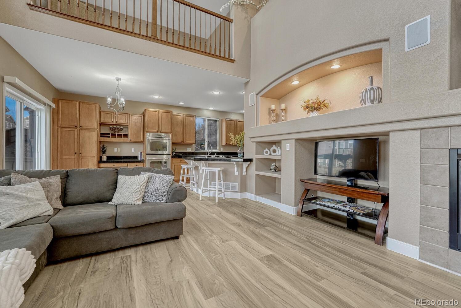 Welcome to the highly sought after Firelight neighborhood of Highlands Ranch. This beautiful newly renovated 5-bedroom, 4-bath home blends modern upgrades with exceptional comfort and livability. The open-concept layout features vaulted ceilings, multiple living and dining spaces, and a private office. The gourmet kitchen features a spacious island and professional grade stainless steel appliances, all under warranty. Enjoy brand-new upgrades including waterproof luxury vinyl plank flooring, luxury carpet with upgraded padding, bathroom fixtures, modern light fixtures, and whole-house fresh paint. The spacious primary suite includes a vaulted ceiling, private balcony, and 5-piece bath. A finished basement adds extra living space, bedrooms, and a full bath—ideal for guests or multi-generational living. Relax outdoors in the low-maintenance backyard with patios, pergola, and fire pit. Located within walking distance to highly rated schools and close to parks, trails, shopping, and recreation centers, this move-in-ready home is must-see.