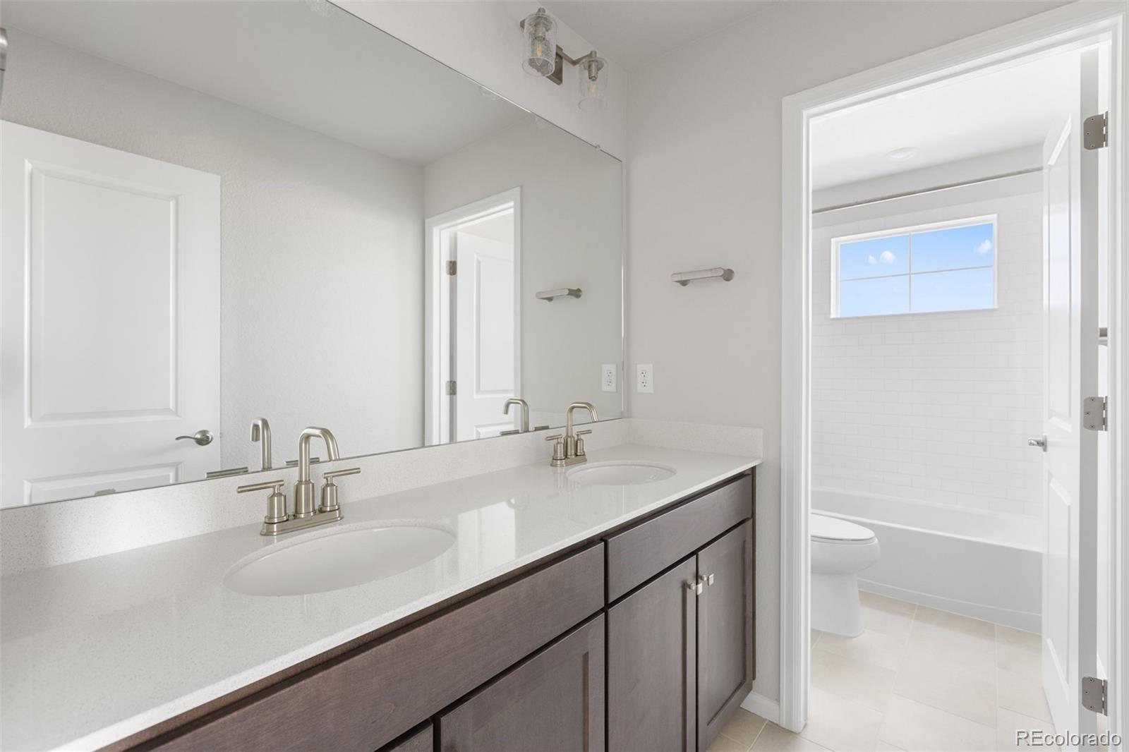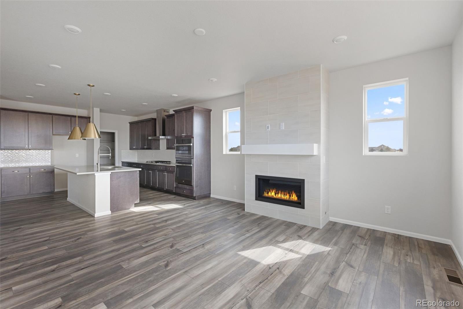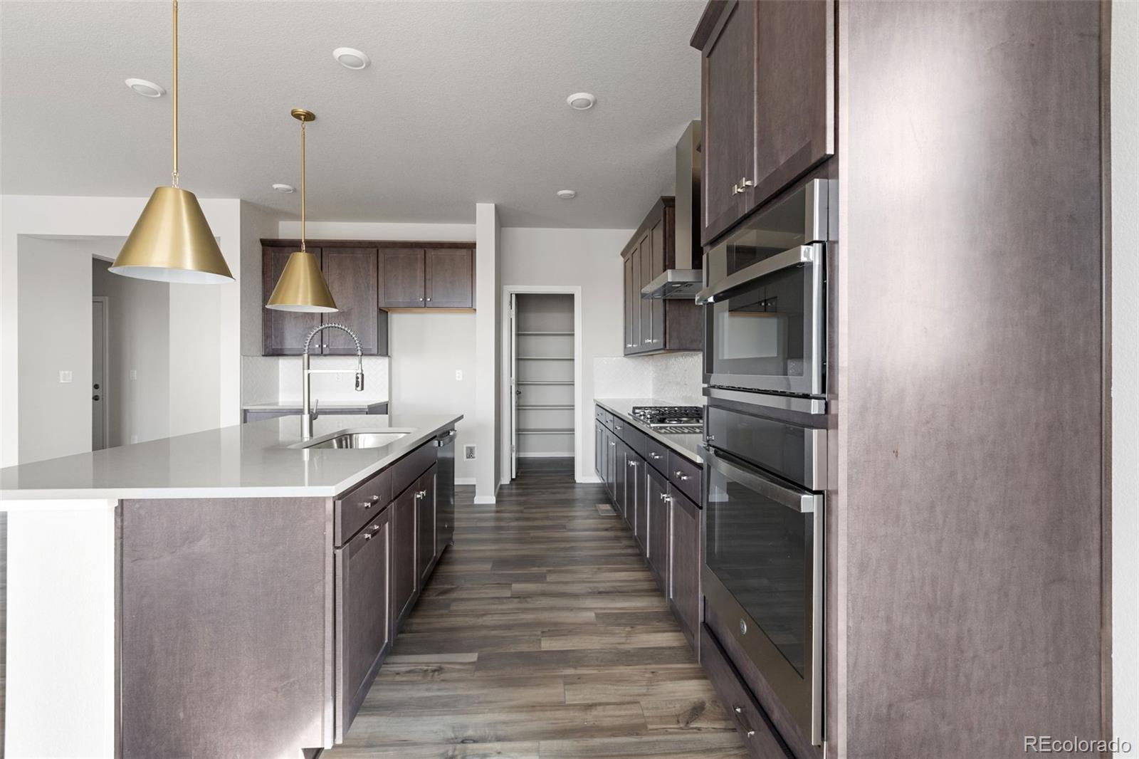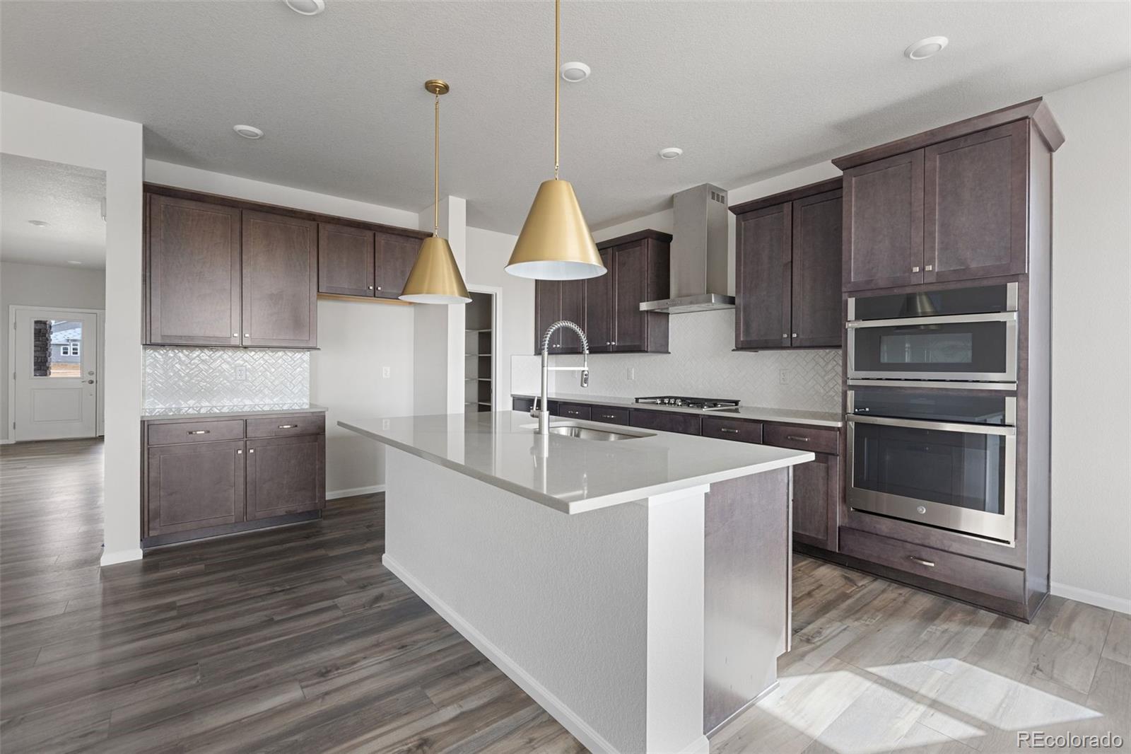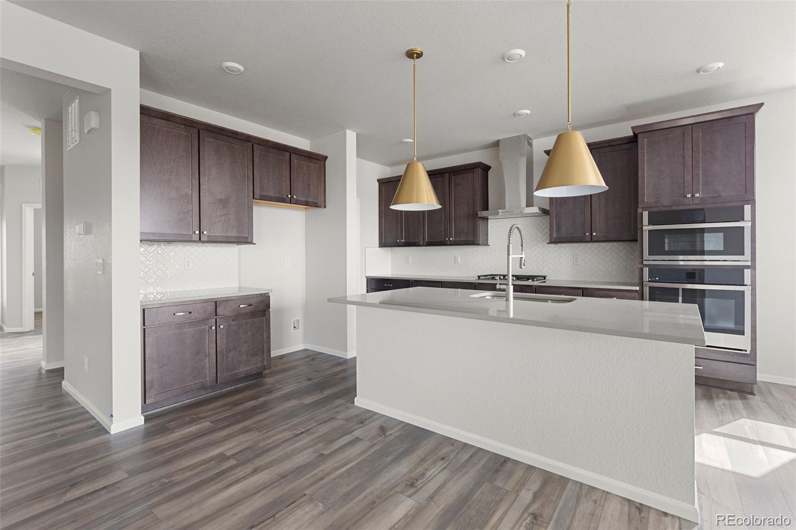 Welcome to this beautifully designed two-story home located in the highly desirable Talon Pointe neighborhood. Live in a thoughtfully planned community offering the perfect blend of comfort convenience and lifestyle. This spacious home features 5 bedrooms and 3 1/2 baths. The open floor plan seamlessly connects the living, dining and kitchen areas. Enjoy a modern, gourmet kitchen showcasing stainless steel appliances, quartz countertops, oversized island, designer lighting and walk-in pantry. Upstairs, retreat to the private owners suite with a luxurious en-suite bath, double vanities, large shower and walk-in closet. Bedrooms 2 and 3 are oversized with secondary full bath easily accessible. Bedroom 4 includes an en-suite 3/4 bath which is perfect for guests. Bedroom 5 can flex to an additional studio/study if needed. Second floor laundry is convenient and easily accessible. Very large covered patio is perfect for enjoying the outdoors. Located minutes from E-470, Talon Pointe offers unbeatable access to all downtown, DIA and many great amenities.