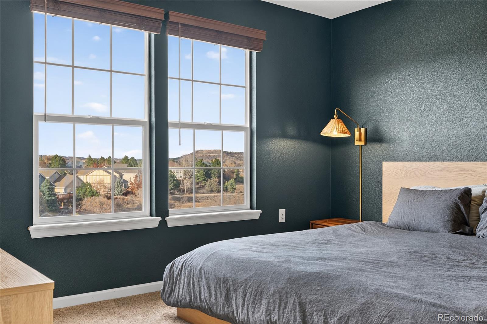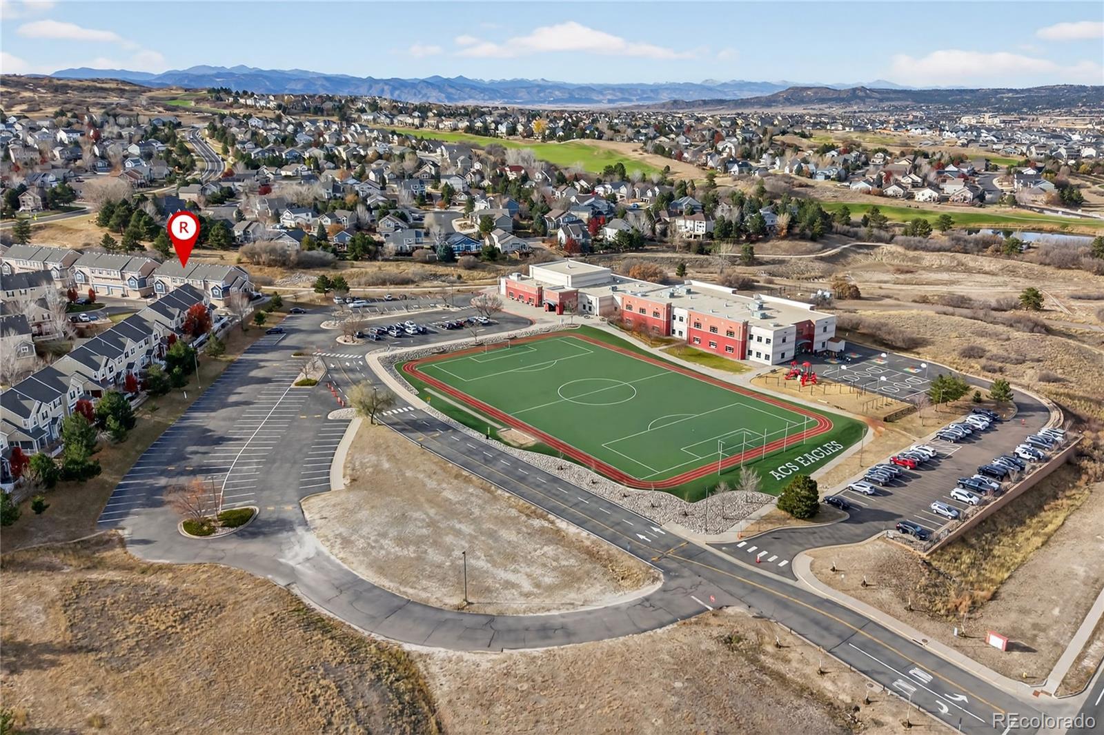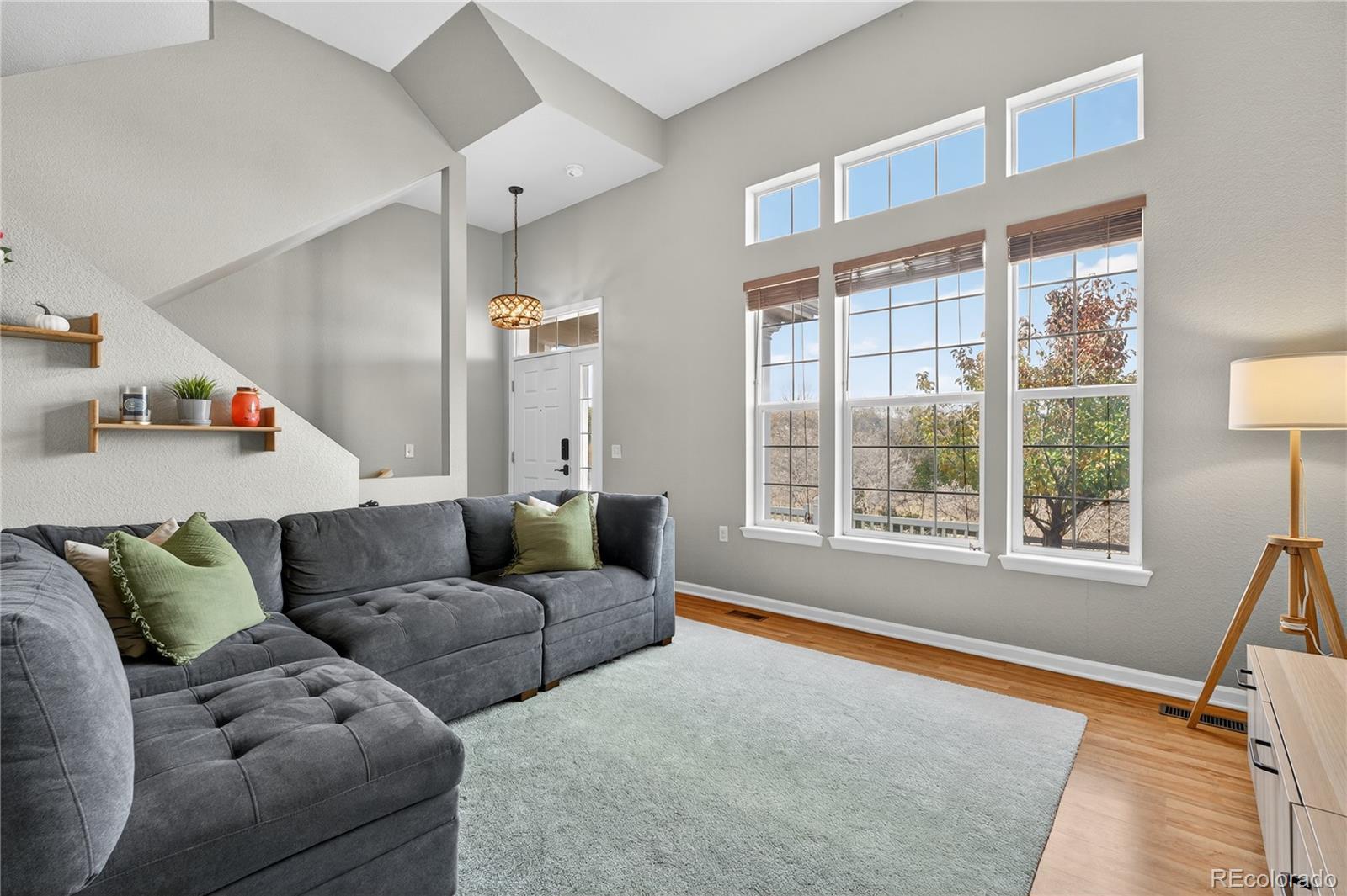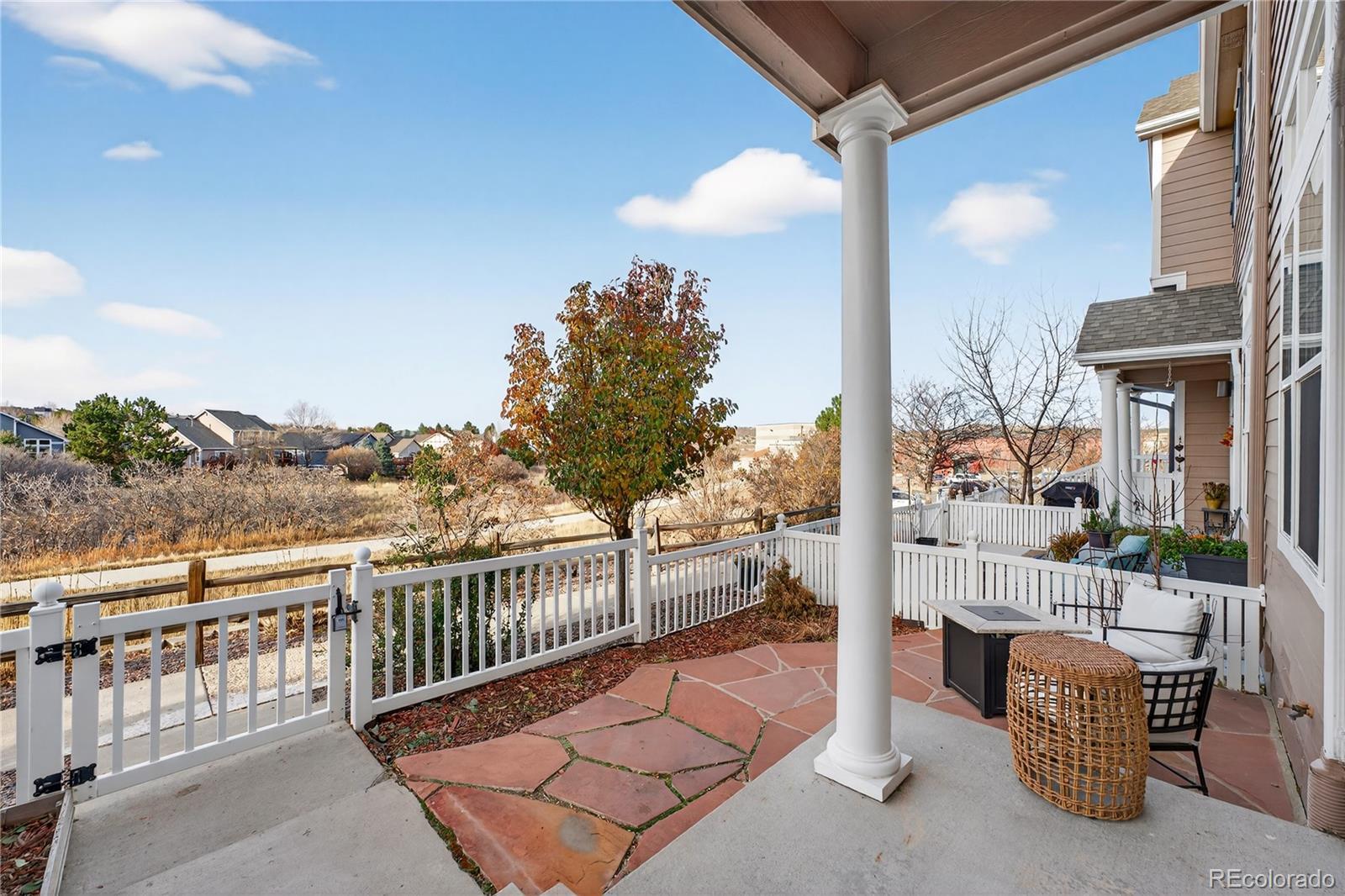 Welcome to this beautifully maintained townhome in Red Hawk! Perfectly positioned with open space and walking trails right out front, this gem offers a peaceful setting that feels tucked into nature while keeping you close to everything. Downtown Castle Rock is just minutes away, giving you easy access to shops, entertainment, and some of the area’s best restaurants. Surrounded by parks and open areas, the home makes it easy to enjoy morning walks or spot wildlife right outside your door. Thoughtfully cared for and designed for both comfort and style, the home’s living room features tall ceilings and modern laminate flooring that catch the light beautifully, creating an airy, welcoming atmosphere. Just a few steps up, the dining area opens to a bright kitchen with stainless steel appliances, granite countertops, and a crisp subway tile backsplash that adds a modern touch. A built-in home office with cabinetry provides a quiet, efficient space for work or organization, and a conveniently located half bath is perfect for guests. Upstairs, the primary suite offers a private retreat with scenic views, a walk-in closet, and its own ensuite bath. Two additional bedrooms share a full bathroom. Outside, a fenced front yard provides a pleasant place to relax, and the attached two-car garage adds convenience for parking and storage. From the front of the home, enjoy views of the city lights in the evening, while the nearby retention pond offers the soothing sound of running water. The neighborhood’s close-knit feel encourages connection among neighbors while maintaining a peaceful sense of space. With schools nearby and parks all around, this home is truly a must-see!