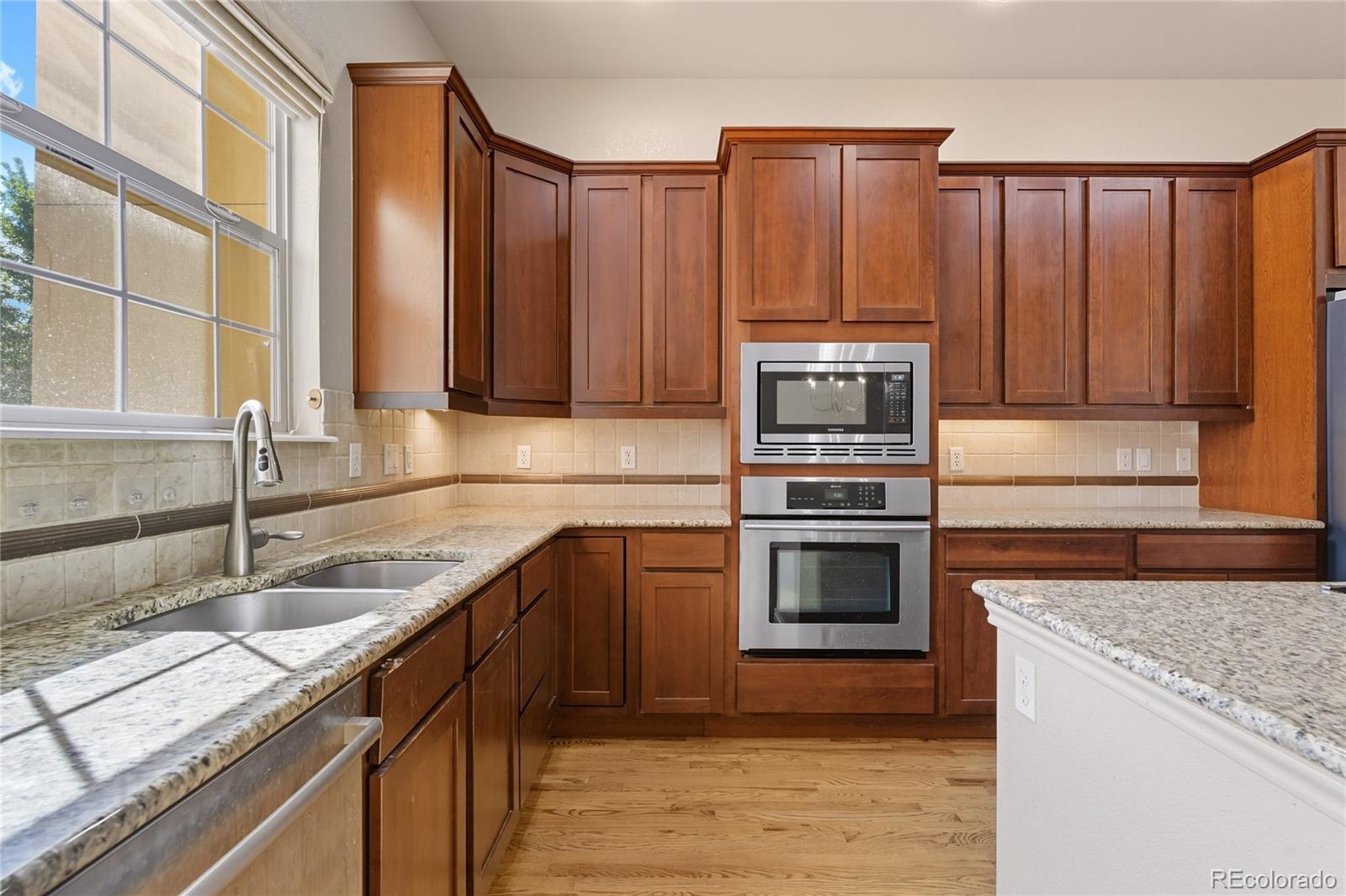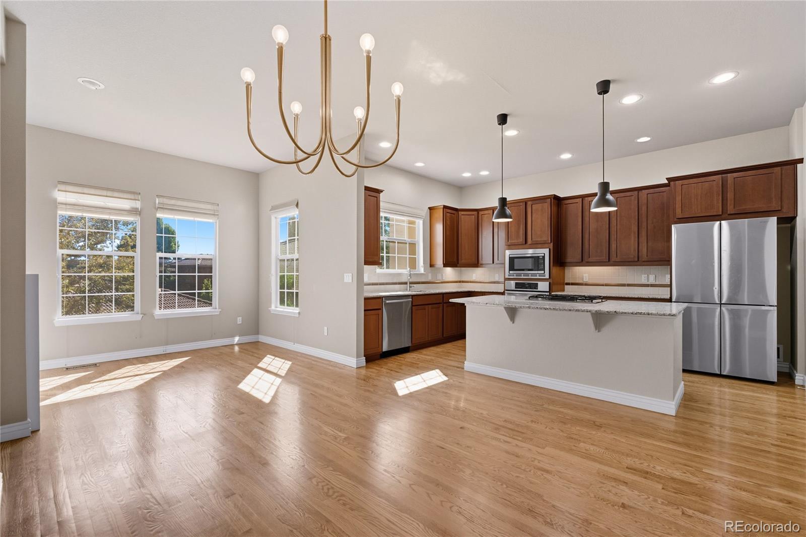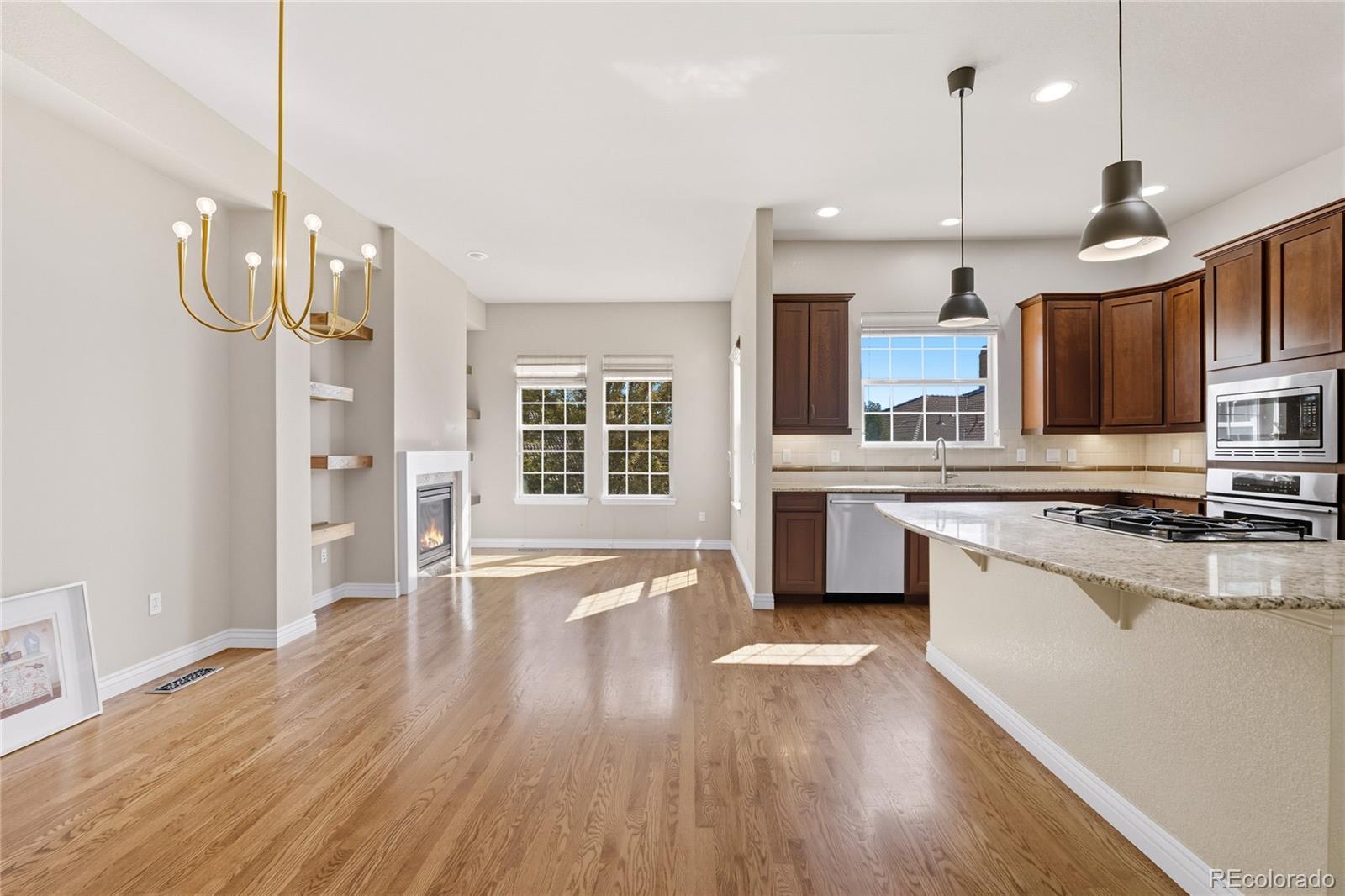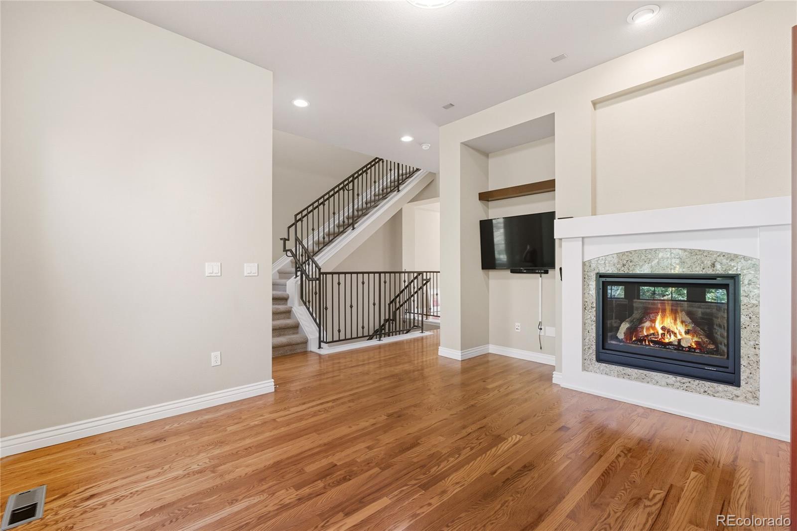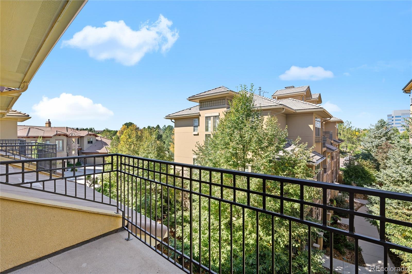 Low-maintenance living in Vallagio! Light-filled 3 bed / 3.5 bath with an open floor plan, custom hardwoods across the main level, and a private shaded patio. Island kitchen features slab granite, 42? cabinets, stainless appliances, pantry, and custom tile backsplash—opening to a fireside family room; a second gas fireplace warms the living room. Abundant windows, generous bedrooms, and an oversized attached garage. Prime Inverness/Tech Center location: a short walk to Dry Creek Light Rail, coffee and breakfast spots, yoga, bank, dry cleaners, nail salon, and multiple restaurants. Easy access to I-25; minutes to Park Meadows. Immaculate and move-in ready.