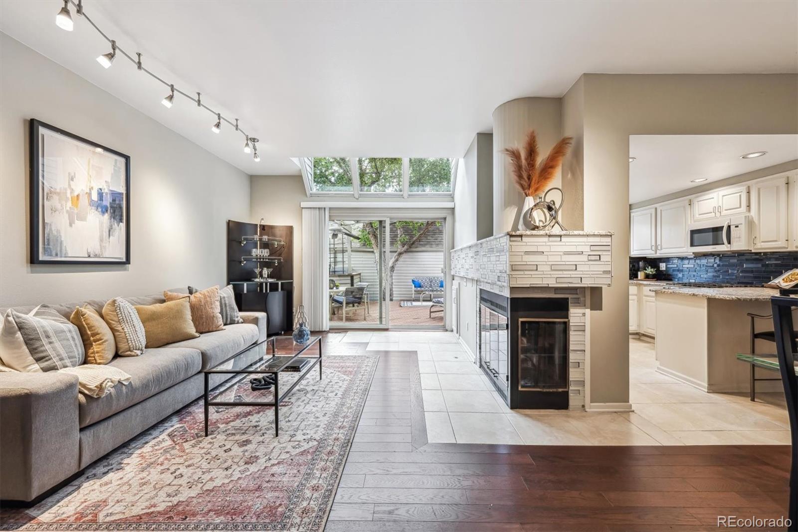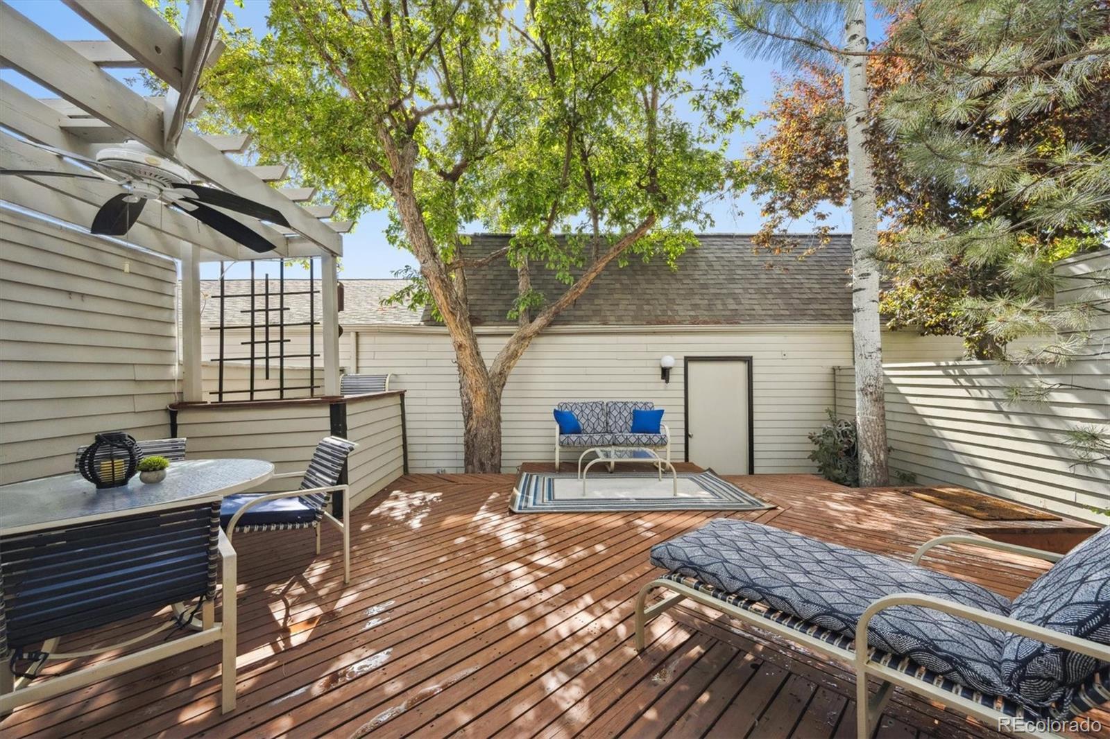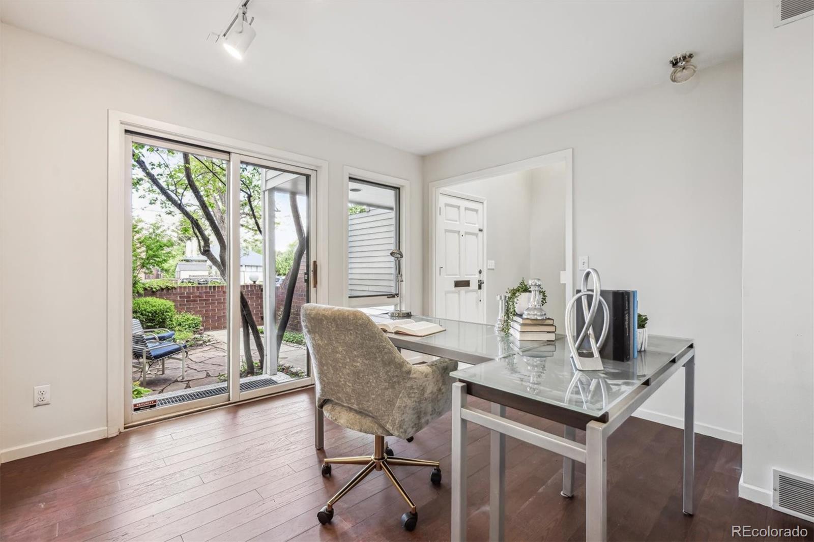 Do not miss the opportunity to live in this lovely home in the desirable North Cherry Creek neighborhood. The floor plan has a great flow with a main floor office and open kitchen, dining room and living room area. The fireplace connects the living room and dining area and leads to a private, large back deck with mature trees and garden space that includes a water feature. The private front courtyard also has mature landscaping and a large open space to enjoy. The kitchen includes newer stainless-steel appliances, granite counter tops, an eat-up bar and large windows that fill the space with light. The primary bedroom upstairs has lofted ceilings, double doors into a private suite with and a spacious primary bath that includes a walk-in closet, double sinks, a large soaker tub, and heated floors. There is a second bedroom upstairs with a full on-suite bathroom and walk-in-closet. The newer full-size washer and dryer are also upstairs. The basement has a large living room area, full bath and utility and storage room. There is an oversize two car detached garage with tons of storage that leads into the privately fenced-in back courtyard. This town home is located just blocks from upscale shopping, fine dining while also allowing for a lock and leave lifestyle in the heart of the Cherry Creek neighborhood.