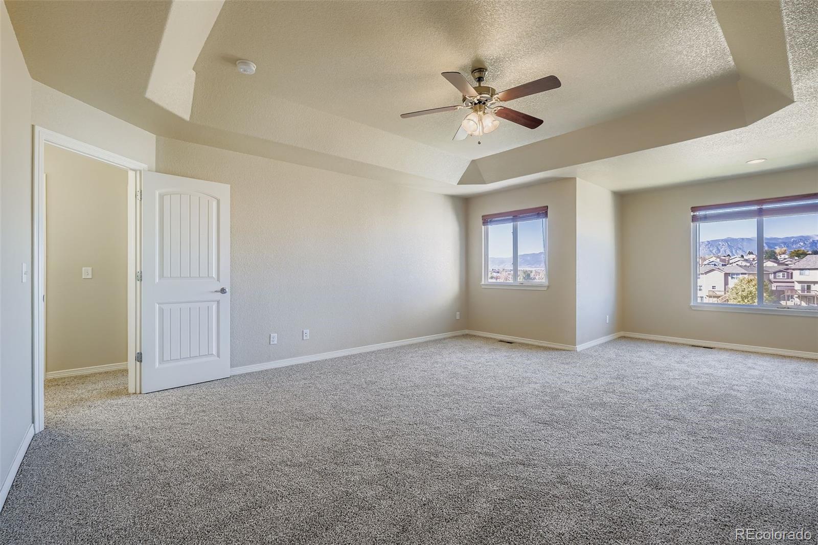 Prime Real Estate for all your present and future needs! Whether you have a growing family, supporting loved ones across generations, or diversifying your portfolio with reliable rentals, this home is an exceptional choice! This enchanting two-story home spans 3,486 square feet of thoughtfully designed living space. Your main level open concept consists of a large living room, dining area, and kitchen that are well lit by large windows and walkout access to a deck that backs up to open space and has unobstructed views of the mountains. Other main level conveniences to enjoy: main level bathroom, Office facing the street for anticipating deliveries/visitors, and a garage-to-kitchen access to minimize having to carry groceries too far. Upstairs you'll find the primary bedroom, three additional bedrooms, a full bathroom, and laundry room. No need to carry clothes very far! The oversize primary bedroom is complete with a cozy sitting area, elegant gas fireplace, luxurious 5-piece bath, expansive walk-in closet and more mountain views! The fully finished basement is ideal as a teen hangout, in-law suite, or privacy for your tenant. The basement consists of a large living area, partial kitchen boasting a full-size refrigerator and sink, a bedroom with French Doors, a bonus room, bathroom, walkout access to the covered patio and of course more mountain views! To top it off this home has a spacious 3 car tandem garage, NO HOAs, received fresh paint and carpet installed throughout the home earlier this month and is close to Cross Creek Regional Park, Markets at Mesa Ridge shopping center, Fort Carson Army Base, and Colorado Springs Airport. This isn't just a house but a place to grow, gather, and invest! Schedule your tour today.
