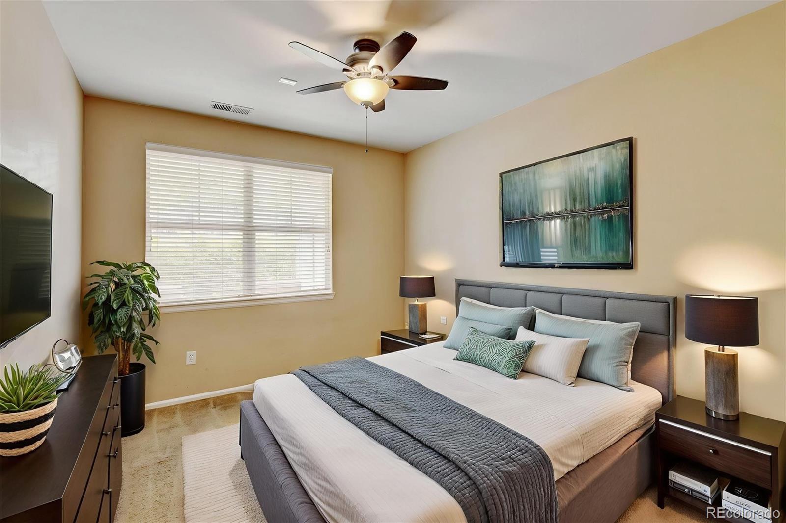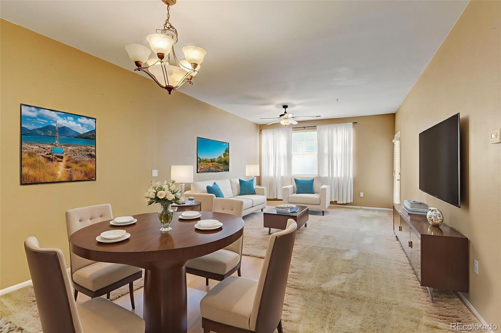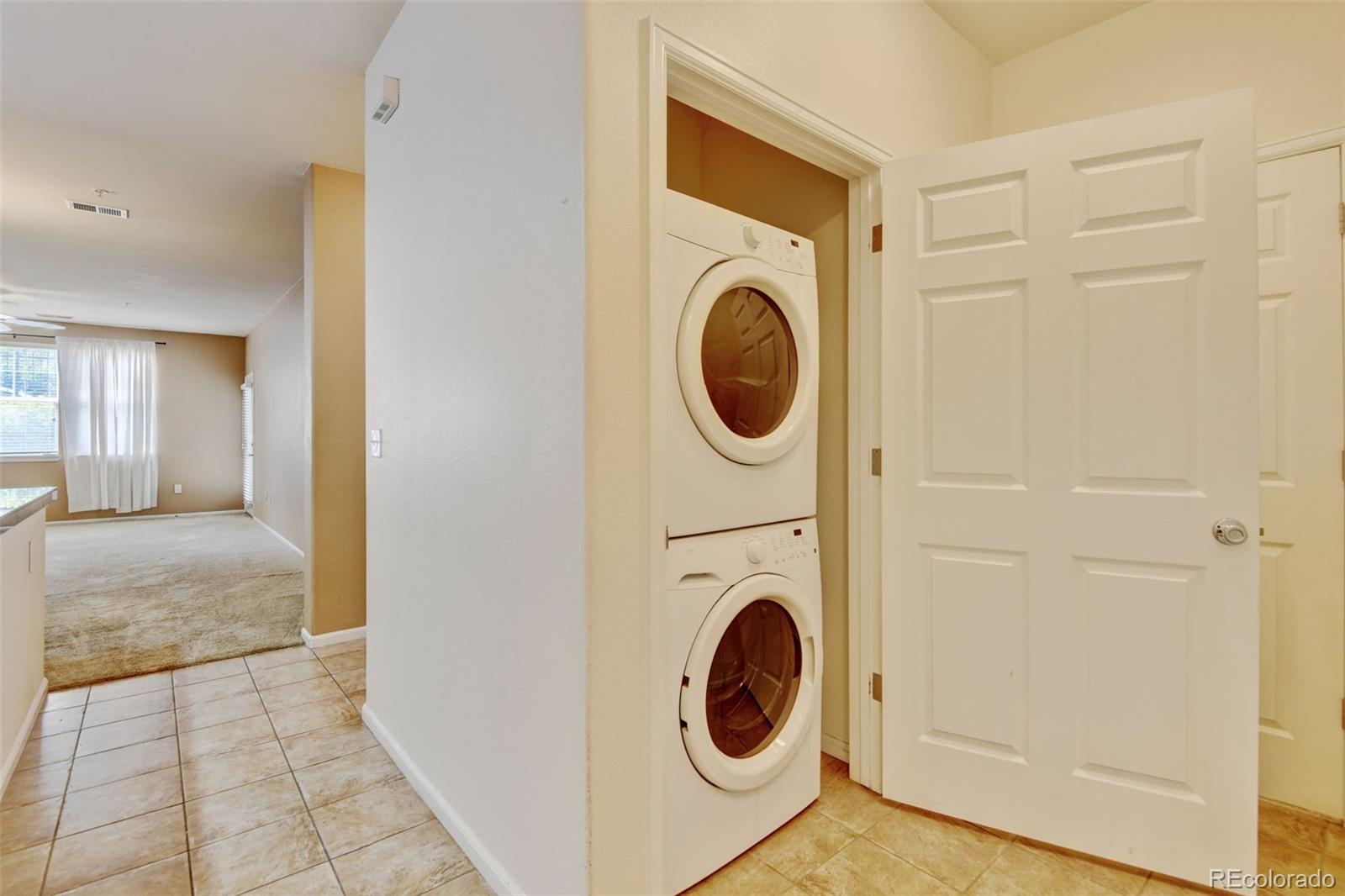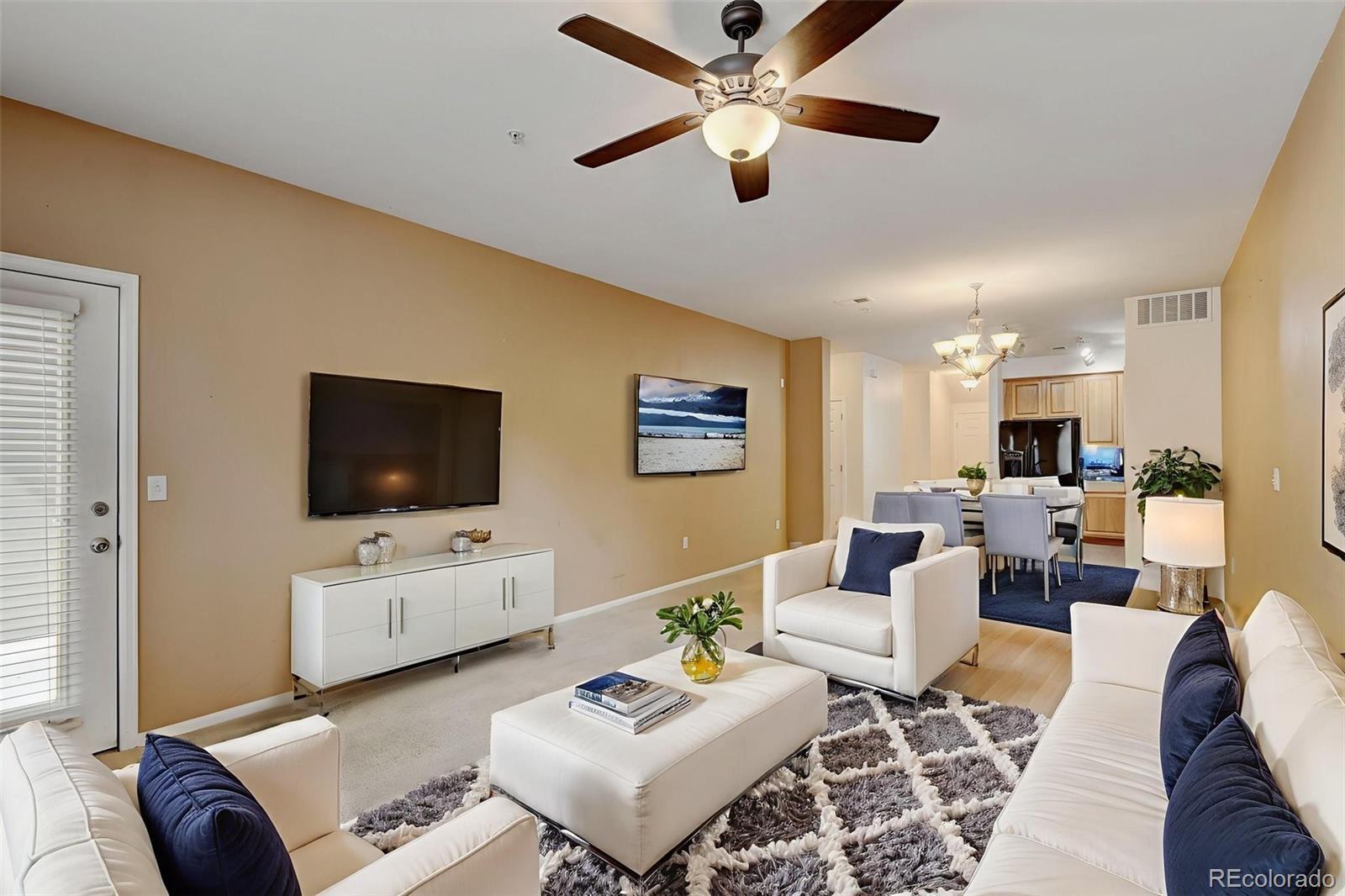 Don't miss this opportunity to own a condo in Legends at Lowry! This spacious 1-bedroom, 1-bathroom condo features a superb location near the shopping and entertainment district at Lowry Town Center. The condo offers an open-concept floor plan with high ceilings, brand new carpeting, large kitchen with an island providing ample counter space. Additional highlights include spacious closets, in-unit laundry and a southeast facing patio with a storage locker. This property also includes an attached oversized 1-car garage. Quick and easy access to parks and trails.