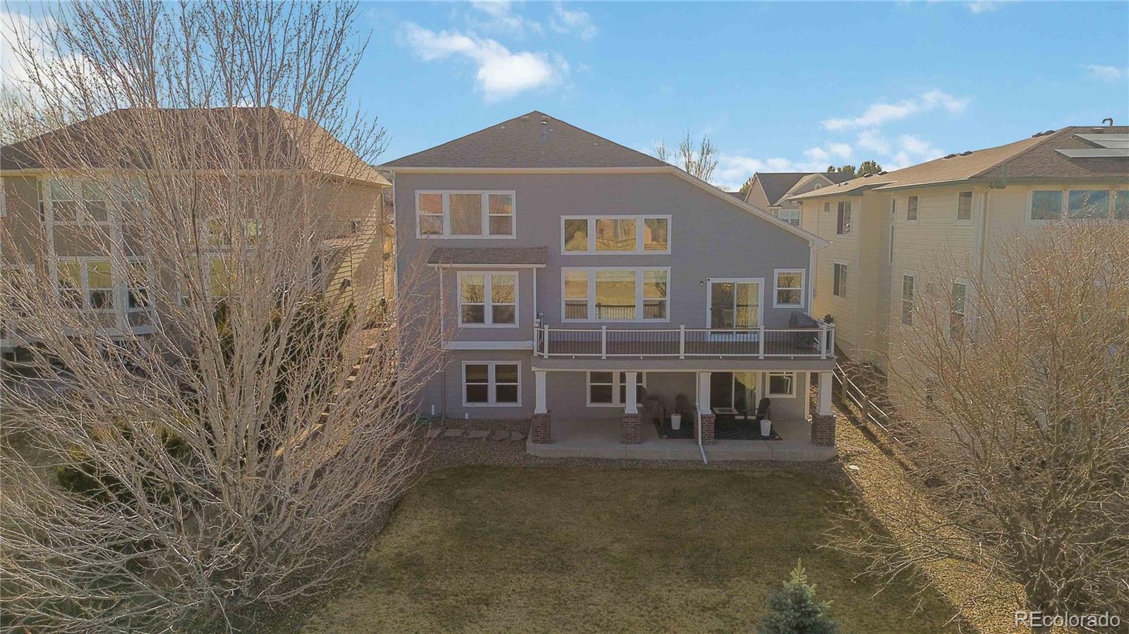 Welcome Home! This house is a beautifully appointed two-story home offering 5 bedrooms, 4.5 baths, and approximately 4,100 finished square feet on a quiet cul-de-sac backing to open space. This light-filled home features vaulted ceilings and expansive windows that bring in abundant natural light throughout. The thoughtfully designed layout includes a main-floor primary suite for convenient living, complete with a spacious ensuite bath and generous closet space. The kitchen is well-equipped with a gas stove, ample cabinetry, beautiful granite counters and great flow for both everyday living and entertaining. Step outside to enjoy the brand-new deck overlooking the large, level backyard and mountain views. On the main floor you also find an office with built in bookshelves and French doors plus a large dining area. Upstairs, you’ll find additional bedrooms plus a versatile loft — perfect for kids playing or creating a relaxing retreat. The finished walkout basement provides even more living space, with an additional bedroom and bathroom, the large open space is ideal for a recreation room, dining area or home gym. Outside you can enjoy the covered patio, and fire pit perfect for gatherings and enjoying the beautiful Colorado landscapes. With its prime cul-de-sac location, functional floor plan, and generous indoor and outdoor living areas, this home offers the perfect blend of comfort, space, and privacy.