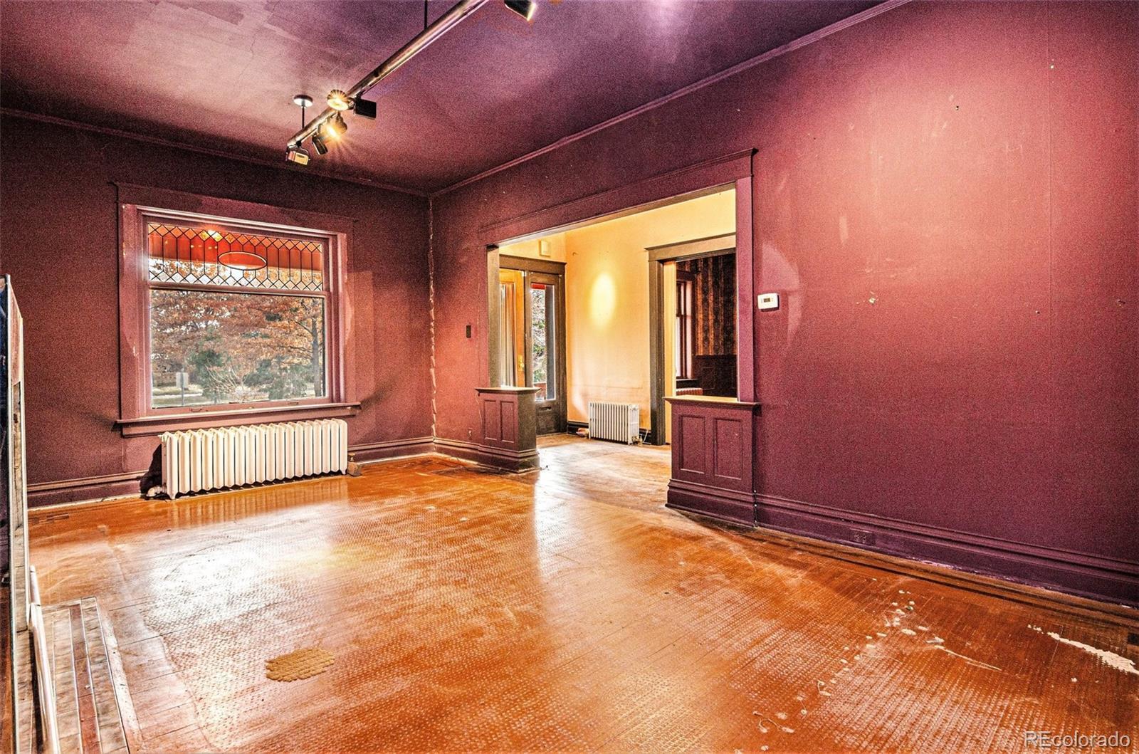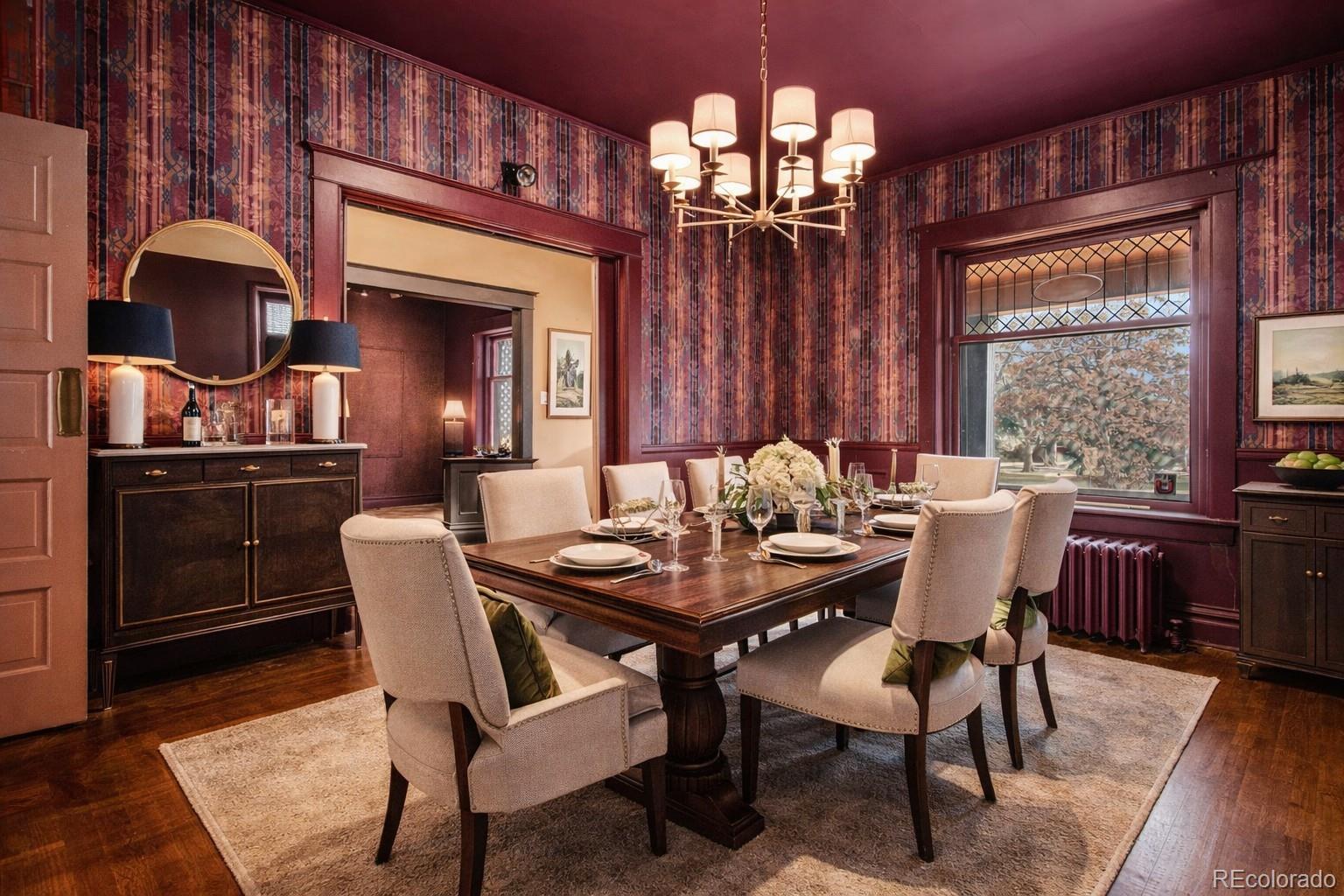 Built in 1913, this classic Denver Square showcases the timeless architecture buyers love, with many original fixtures and windows still intact. Original wood floors run throughout, and a grand staircase greets you the moment you step through the front door. Large, well-proportioned rooms define the home, including a separate living room, formal dining room, kitchen, and a charming breakfast nook tucked just off the kitchen. Upstairs offers four generously sized bedrooms, all true to the home’s historic scale. Outside, a classic front porch practically begs for a swing and slow evenings, while the fully landscaped front and back yards are complemented by over 400 square feet of deck space in the rear, perfect for entertaining or quiet retreats. A detached two-car garage adds convenience; there is even an additional outdoor parking space. Set along the desirable 17th Avenue Parkway, adjacent to South Park Hill, this is a rare opportunity in an in-demand neighborhood. Walk to the Denver Museum of Nature & Science, Denver Zoo, and City Park Golf Course, with Cherry Creek and downtown Denver just minutes away. Offered as-is, this fixer is ready for its next chapter and a thoughtful restoration.