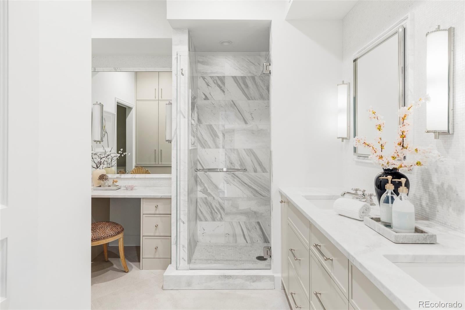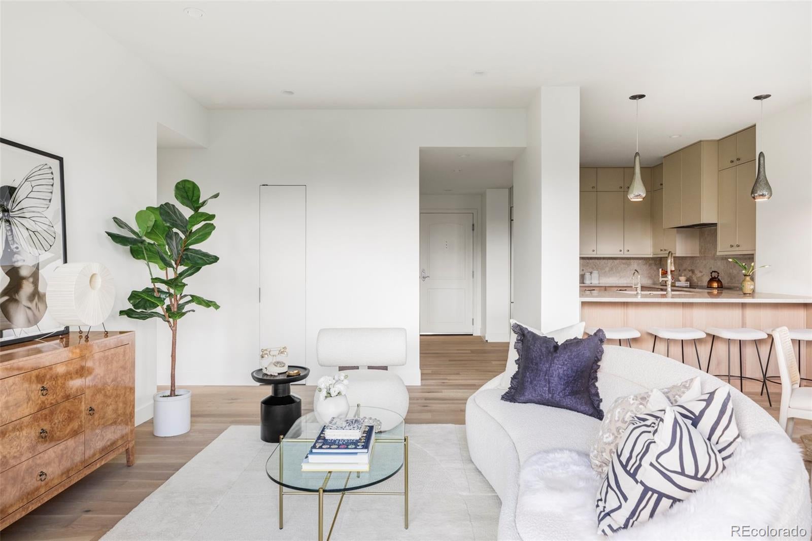 A rare gem reimagined with unparalleled sophistication, this fully rebuilt residence stands as a true crown jewel of Cherry Creek. Renovated by top quality GC, McGuire Construction, renowned for work on homes belonging to stars like Jimmy Buffet, every element of this home has been transformed with meticulous intention, and truly no expense spared. Luxe materials, designer finishes, and raised ceilings define the sleek kitchen, where custom Tharp cabinetry, Taj Mahal quartzite countertops and top-tier Wolf, Sub-Zero and Cove appliances create a refined culinary experience. Timeless wide plank white oak floors and solid-core doors elevate the aesthetic, while all-new electrical, HVAC, tankless water heater and smart Nest thermostat ensure enduring comfort. The primary suite boasts a new custom closet build-out and ambient bed-side lighting. A new spa-like bath with dual sinks, dolomite countertops, frameless steam shower and custom vanity, aims to spark joy in those quiet preparatory moments, morning or night. While the tranquil north-facing balcony, surrounded by sky-rocket junipers and mature foliage, gives the sense of privacy and seclusion, in reality, you are just minutes from the finest dining, shopping and drink that Denver has to offer! This retreat delivers luxury living at its finest.