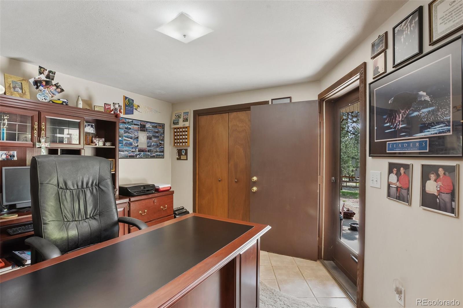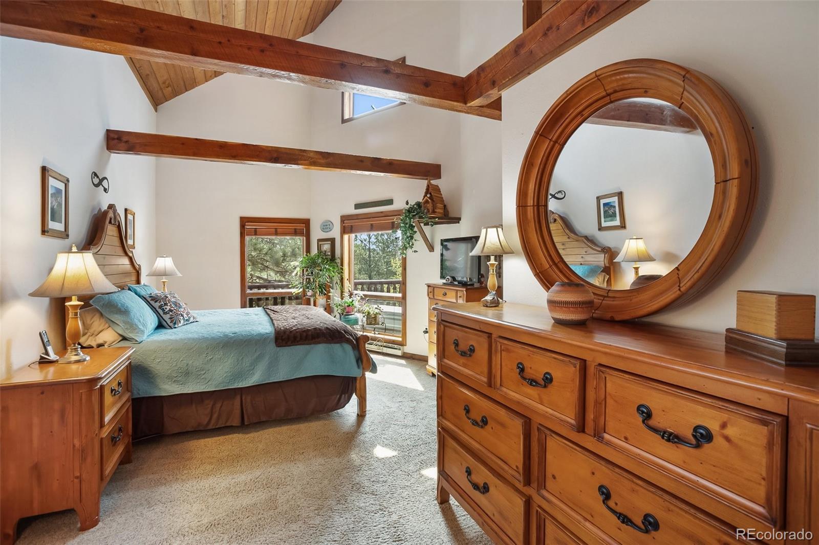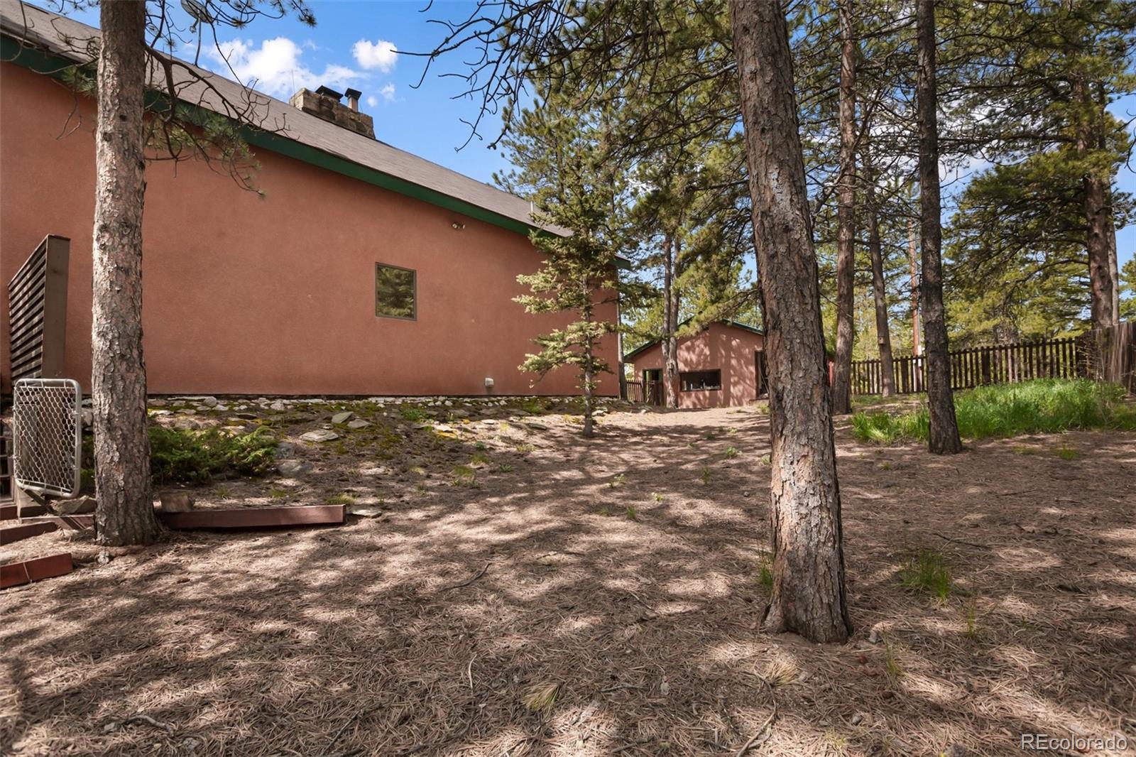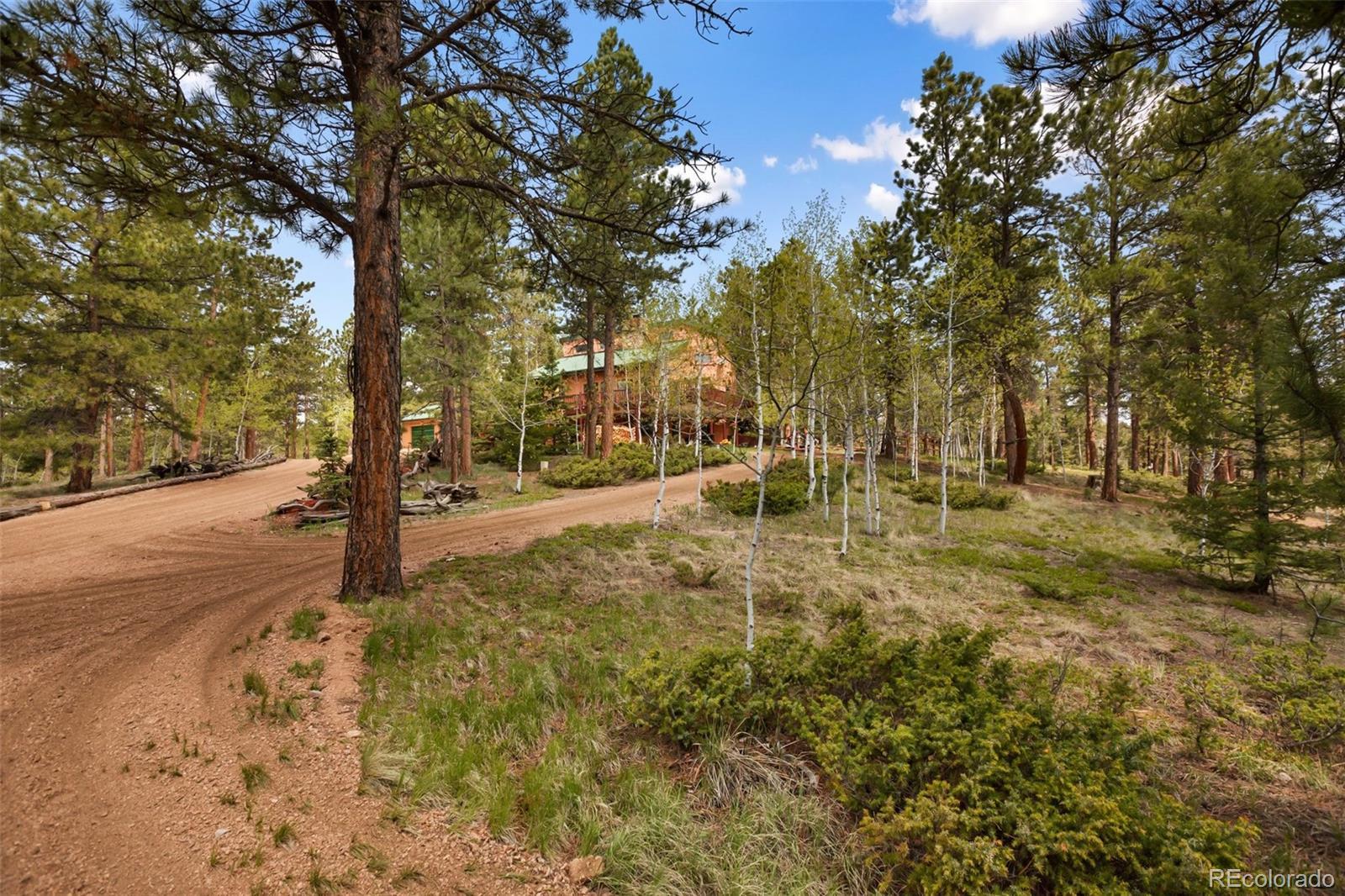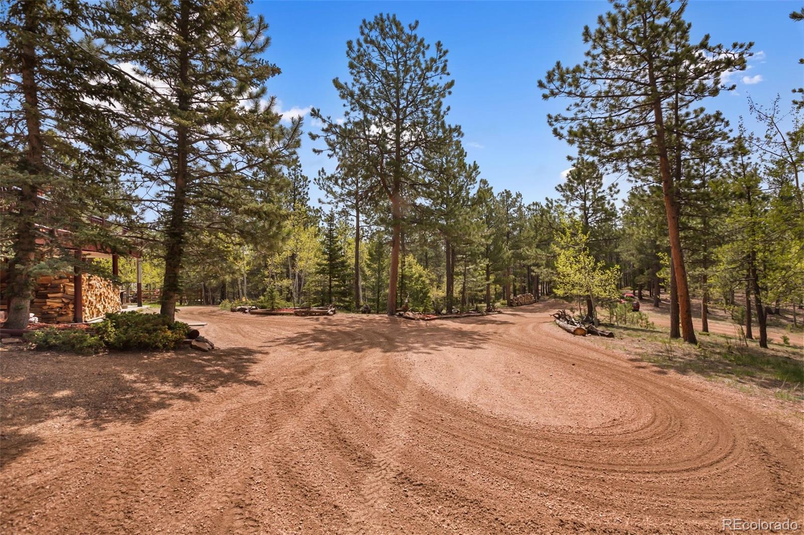 Stunning home nestled on a serene 5.49-acre lot with private, picturesque setting. Home offers 4 spacious bedrooms, 2 baths, and a sleek galley kitchen with quartz countertops, newer appliances (refrigerator, gas range/oven, dishwasher, disposal, microwave), rich oak cabinets, wood flooring, and charming tongue-and-groove ceilings on the main level. Spacious living room with a moss rock fireplace and wood insert, plus large windows for ample light and passive solar. Main-level master suite with full bath and his-and-hers closets. Upper level includes an office or fourth bedroom. The lower level offers a 23x14 family room with a wood stove, storage, two additional bedrooms, a 3/4 bath, and walkout access to the front yard and side patio. Laundry room includes washer, dryer, extra refrigerator, and freezer. Detached two-car oversized garage with workshop and attic storage. Includes log splitter, Polaris ATV, power washer, and firewood. Well and septic system. Large fenced backyard with flowerbeds, Ponderosa pines, and aspens. Low-maintenance stucco siding and metal roof. Discover your Colorado paradise! Fully Furnished! RV Parking!!!!